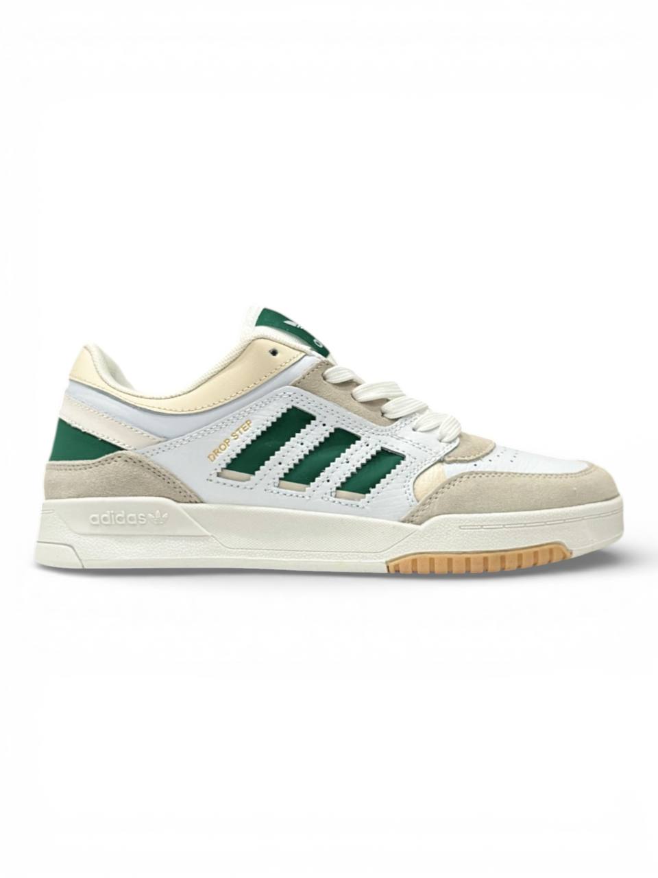 Adidas Drop Step White Beige Green — кросівки з сучасним міським дизайном і масивною підошвою. Поєднання білого, бежевого та зеленого кольорів легко комбінується з повсякденним одягом.