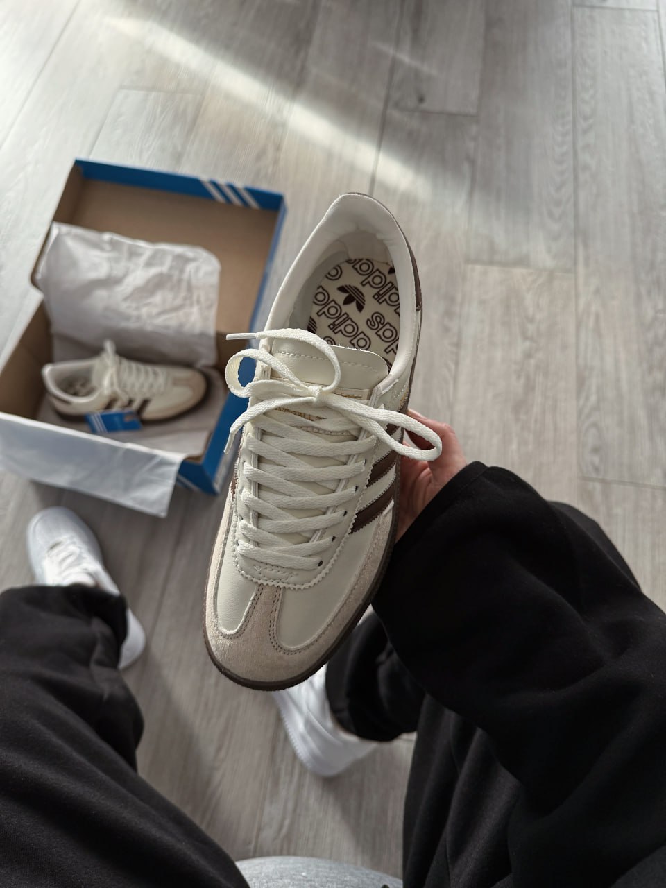 Adidas Handball Spezial Brown/Cream White — класичні низькі кросівки в коричне-кремовій кольоровій гамі з преміальним нубуком і спортивним ретро-стилем.