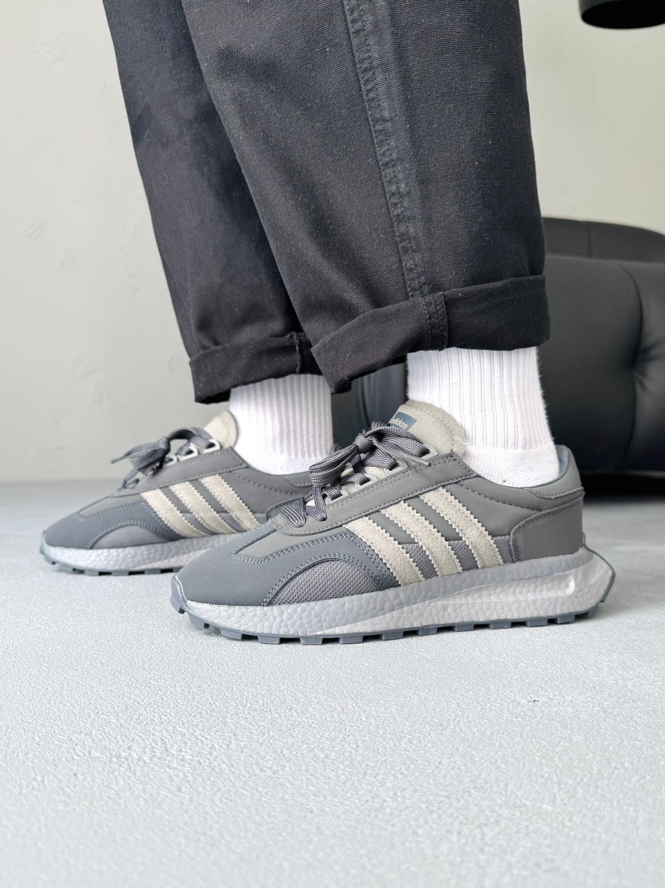 Adidas Retropy E5 Grey Black — це стильні кросівки з ретро-дизайном і сучасними технологіями, які забезпечують комфорт завдяки м’якій проміжній підошві Boost.