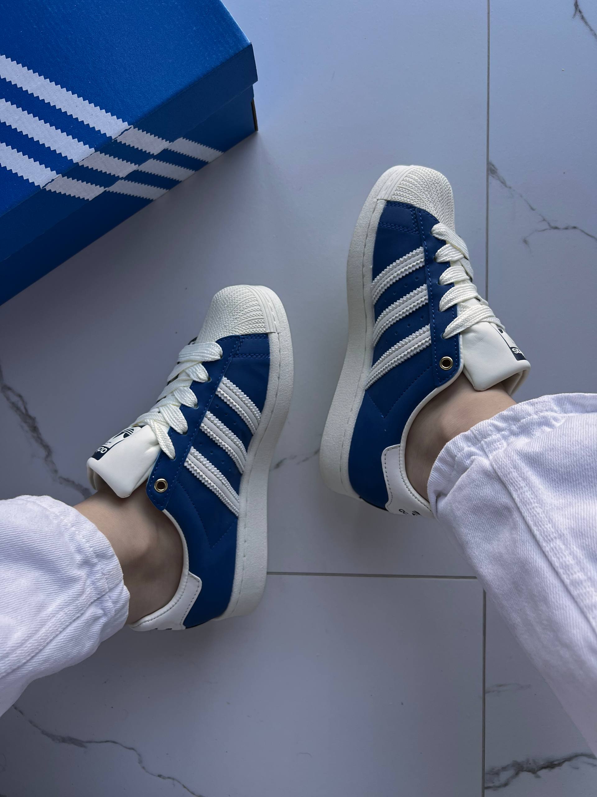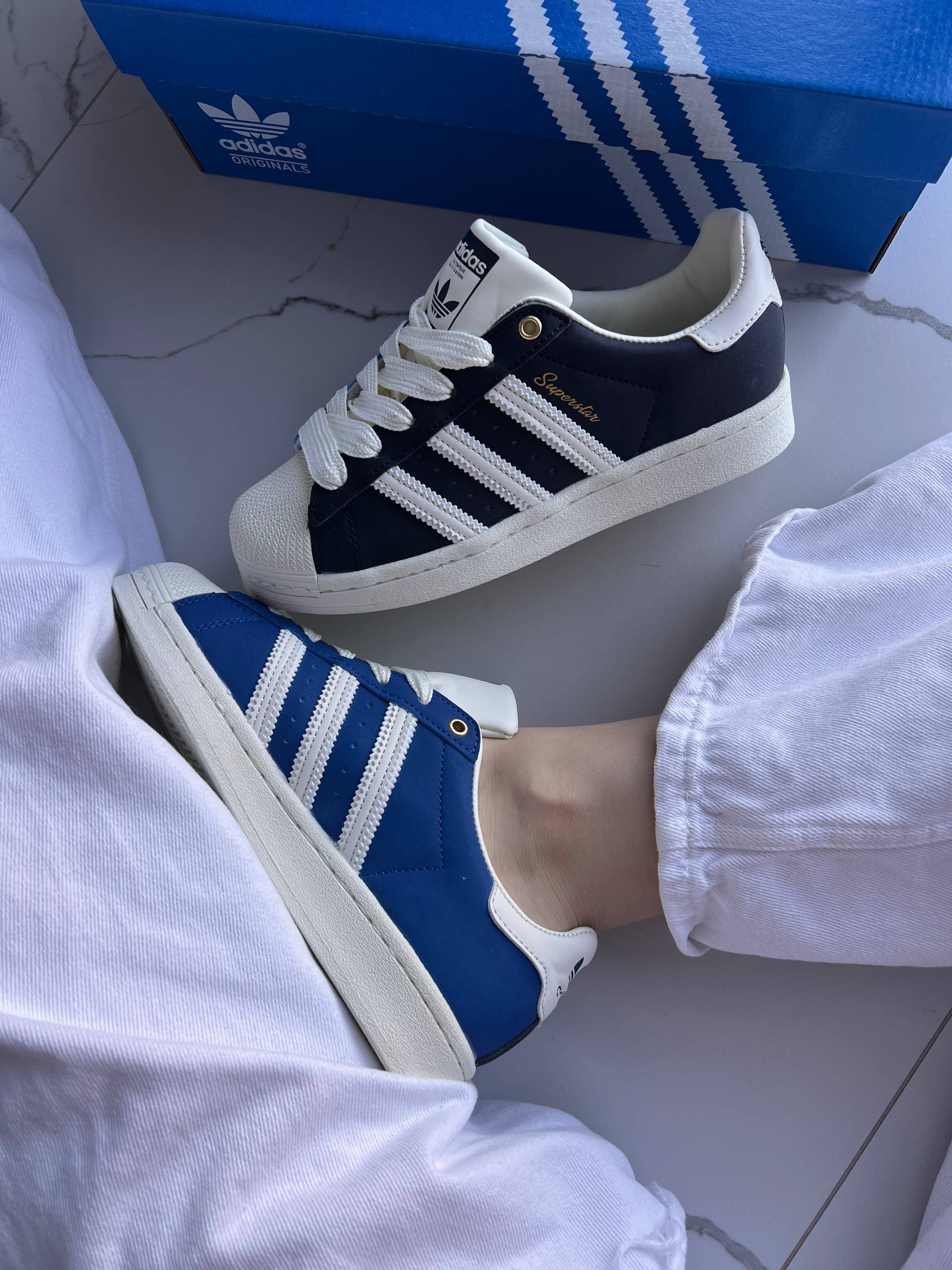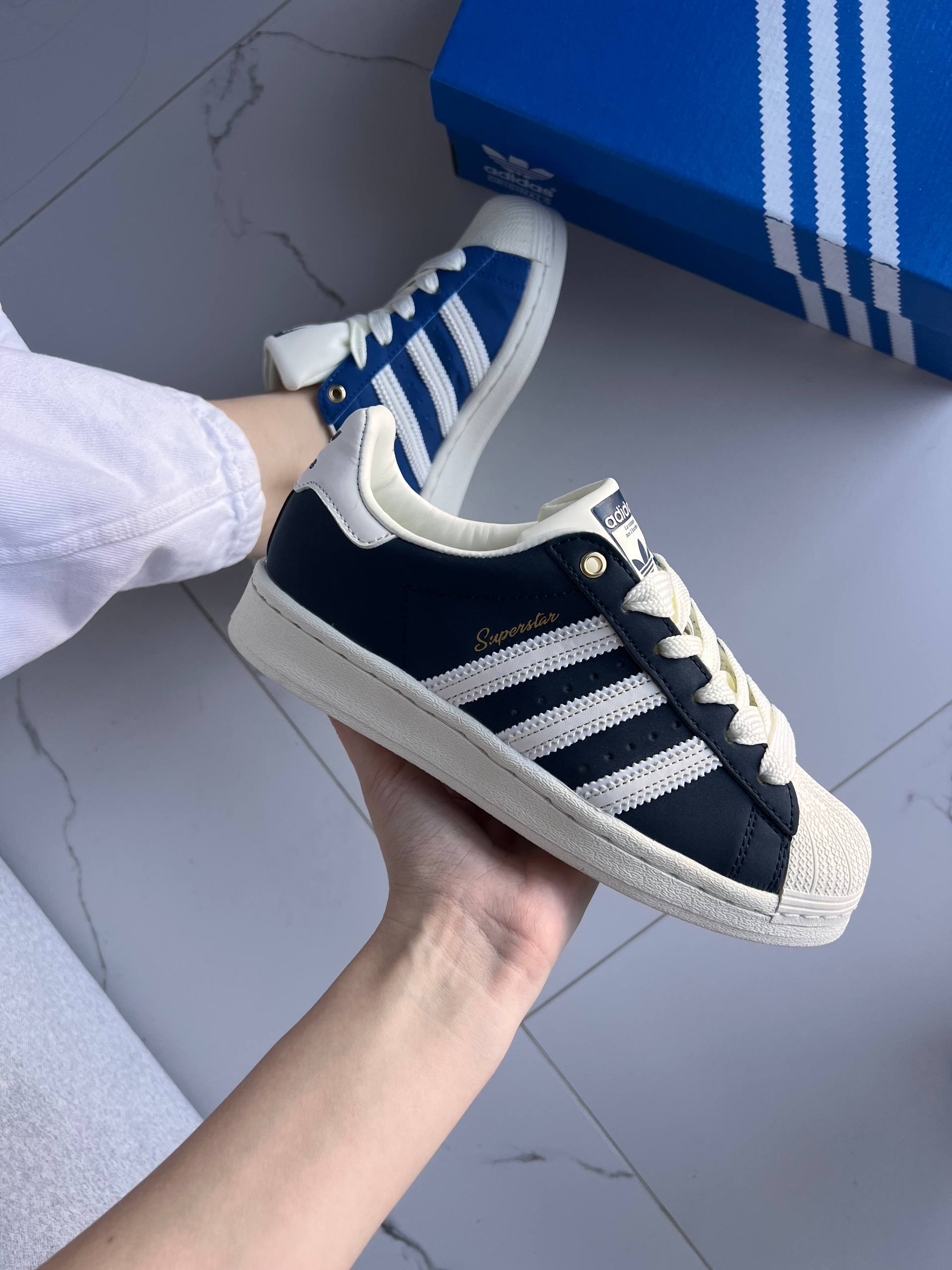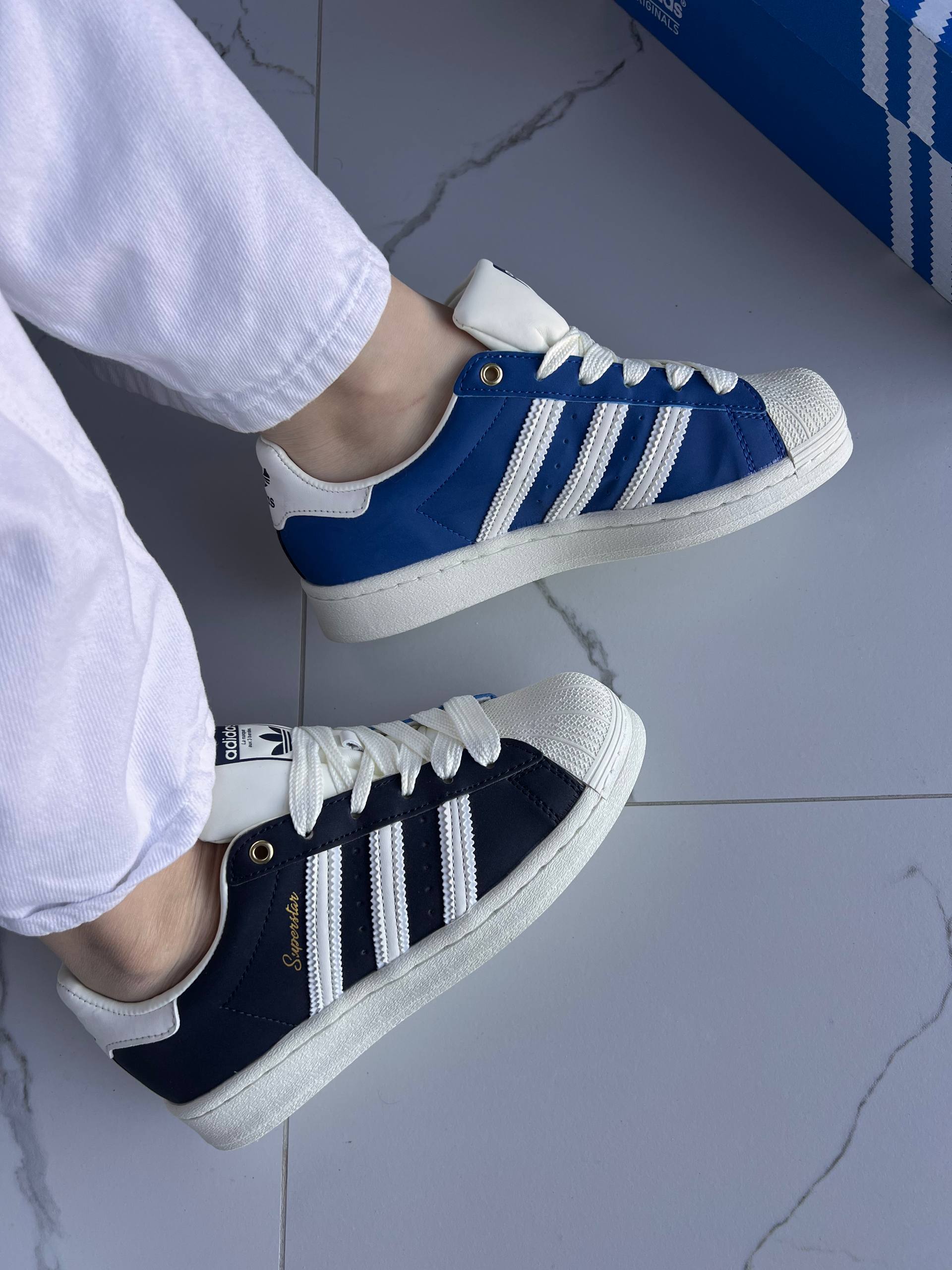 Adidas Superstar 50/50 Black/Navy Blue   оновлена версія культових кросівок із силуетом Superstar. Модель поєднує чорний та темно-синій кольори у форматі “50/50”, зберігаючи класичний гумовий носок-ракушку, фірмові три смуги та зручну підошву. Стильний вибір для тих, хто цінує легендарний дизайн у сучасному виконанні.