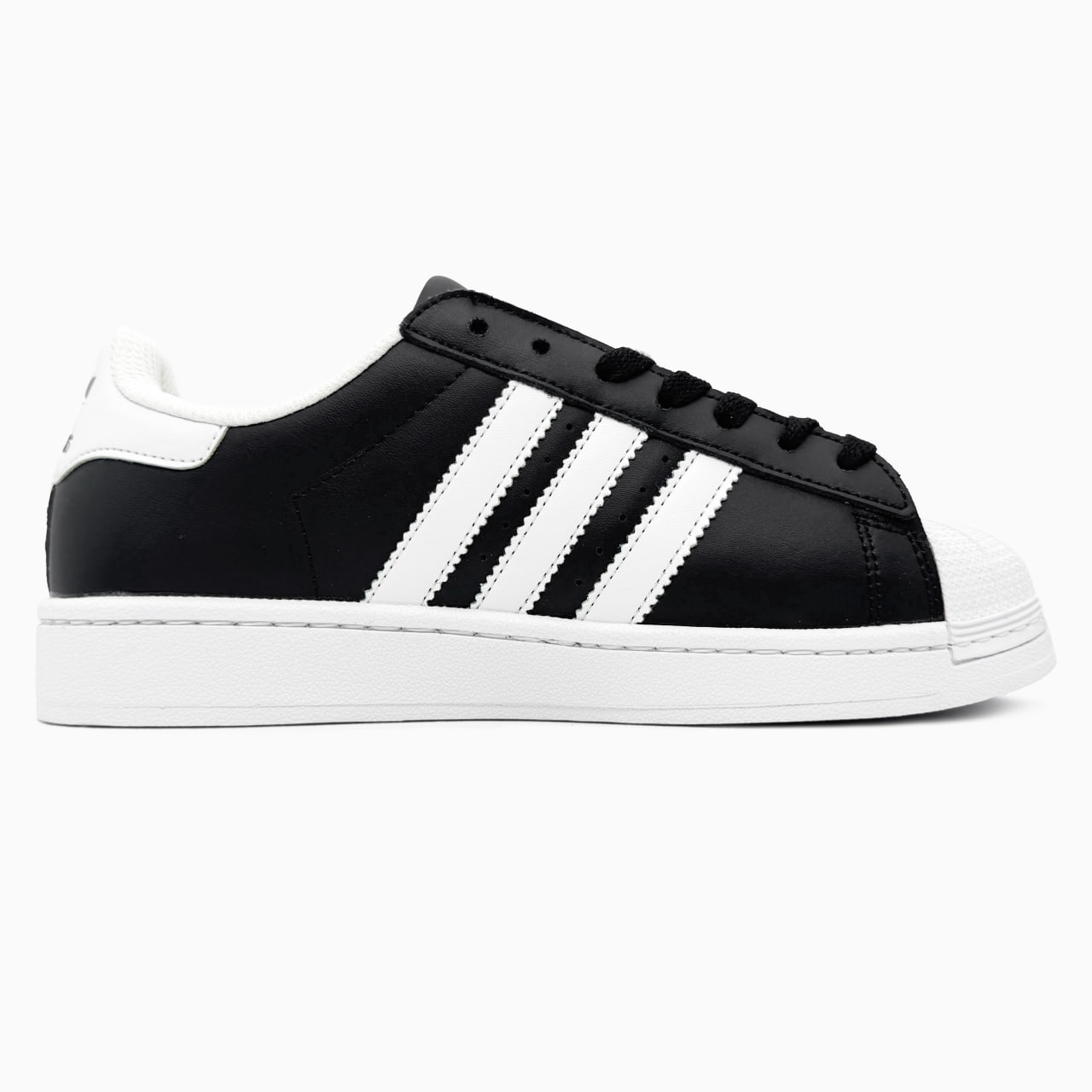Adidas Superstar White/Black — легендарні кросівки з білого гладкого верху та чорними фірмовими смужками. Верх із натуральної шкіри, гумовий носок-«ракушка» та зручна підошва — класика вуличного стилю, що не втрачає актуальності.