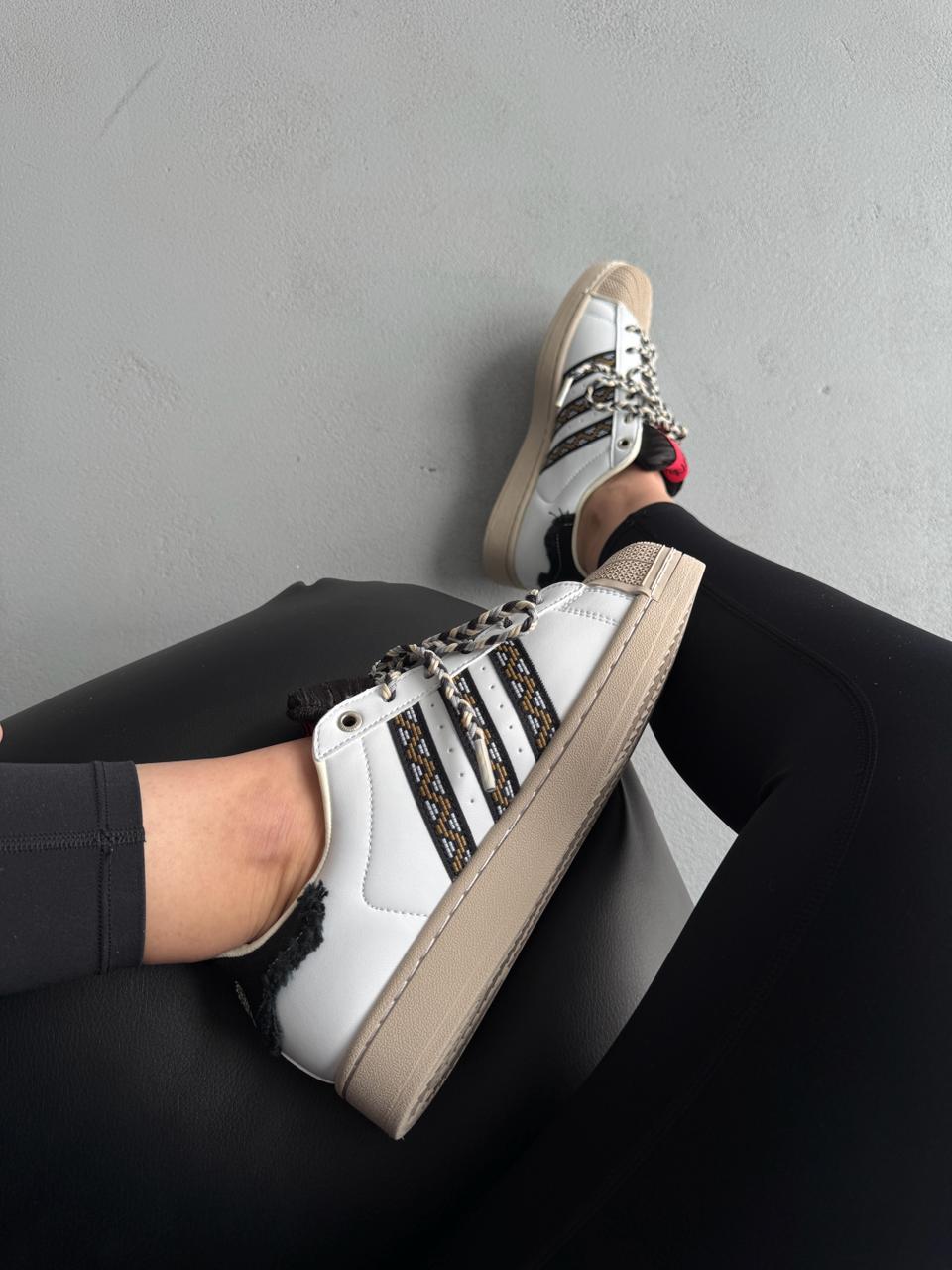 Adidas Superstar Fringe — класична модель у сучасному виконанні з бахромою, що додає образу оригінальності та модного характеру.