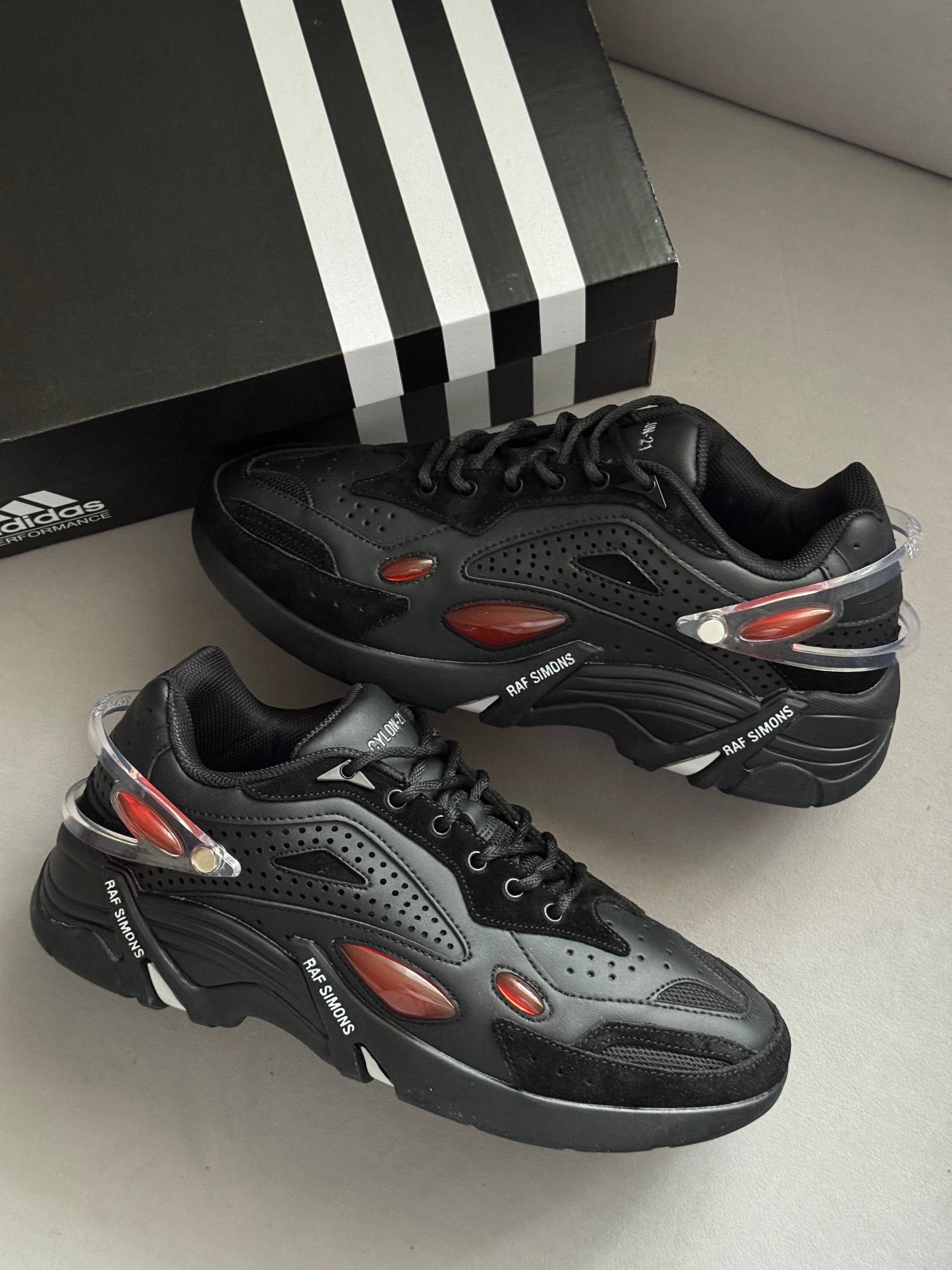 Adidas x Raf Simons Cylon-21 Black Red — футуристичні кросівки зі шкіри та текстилю з масивною підошвою.