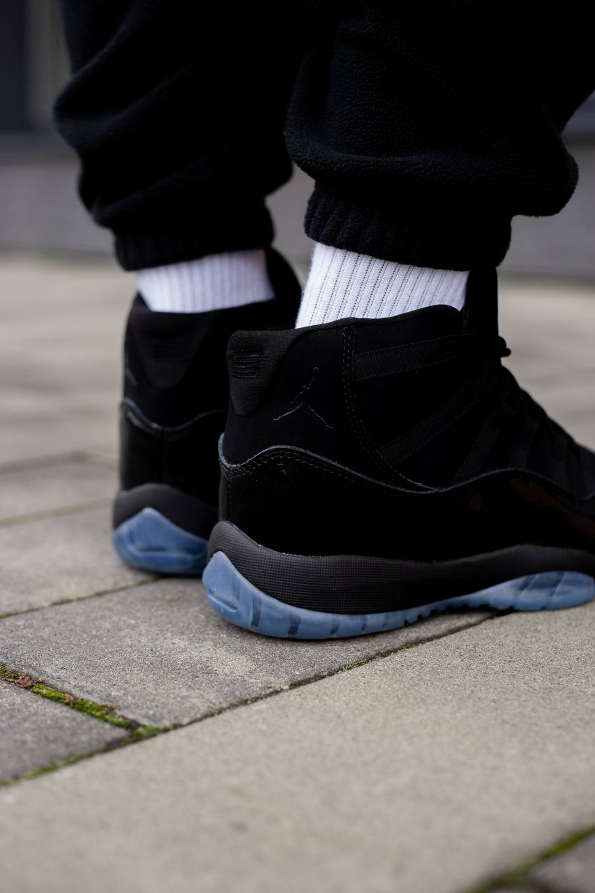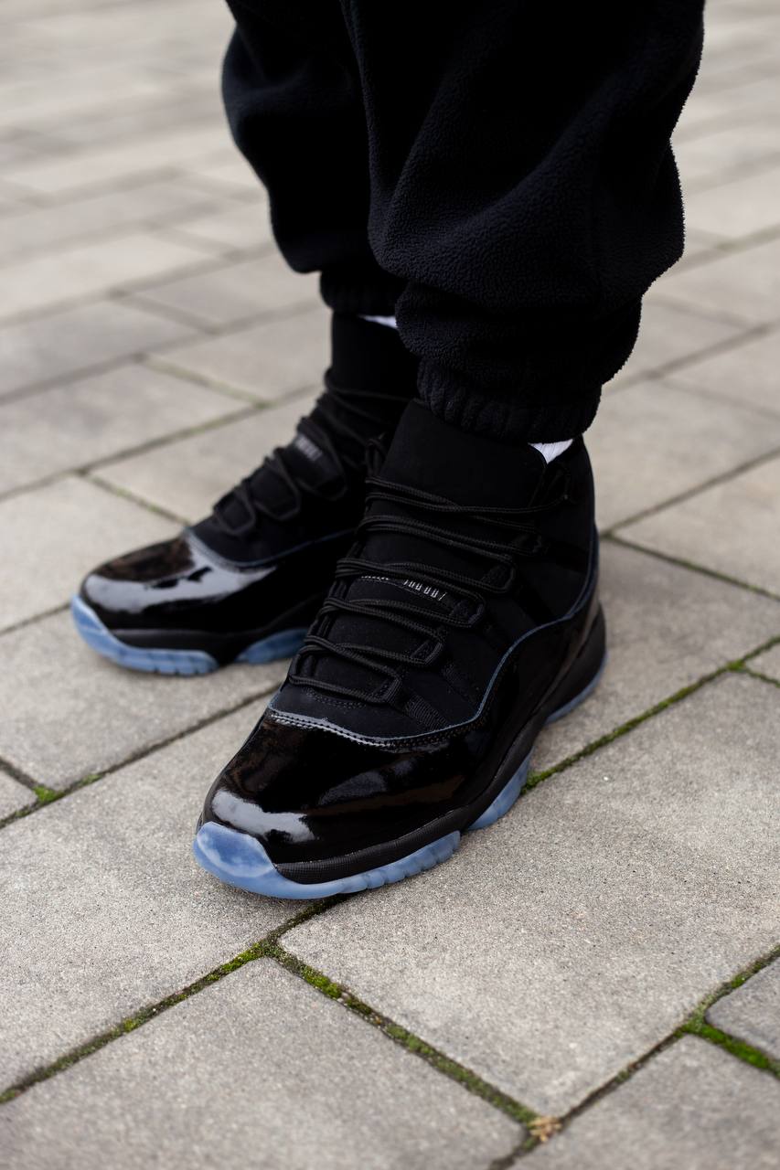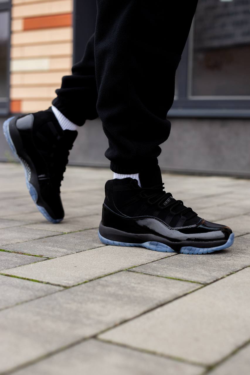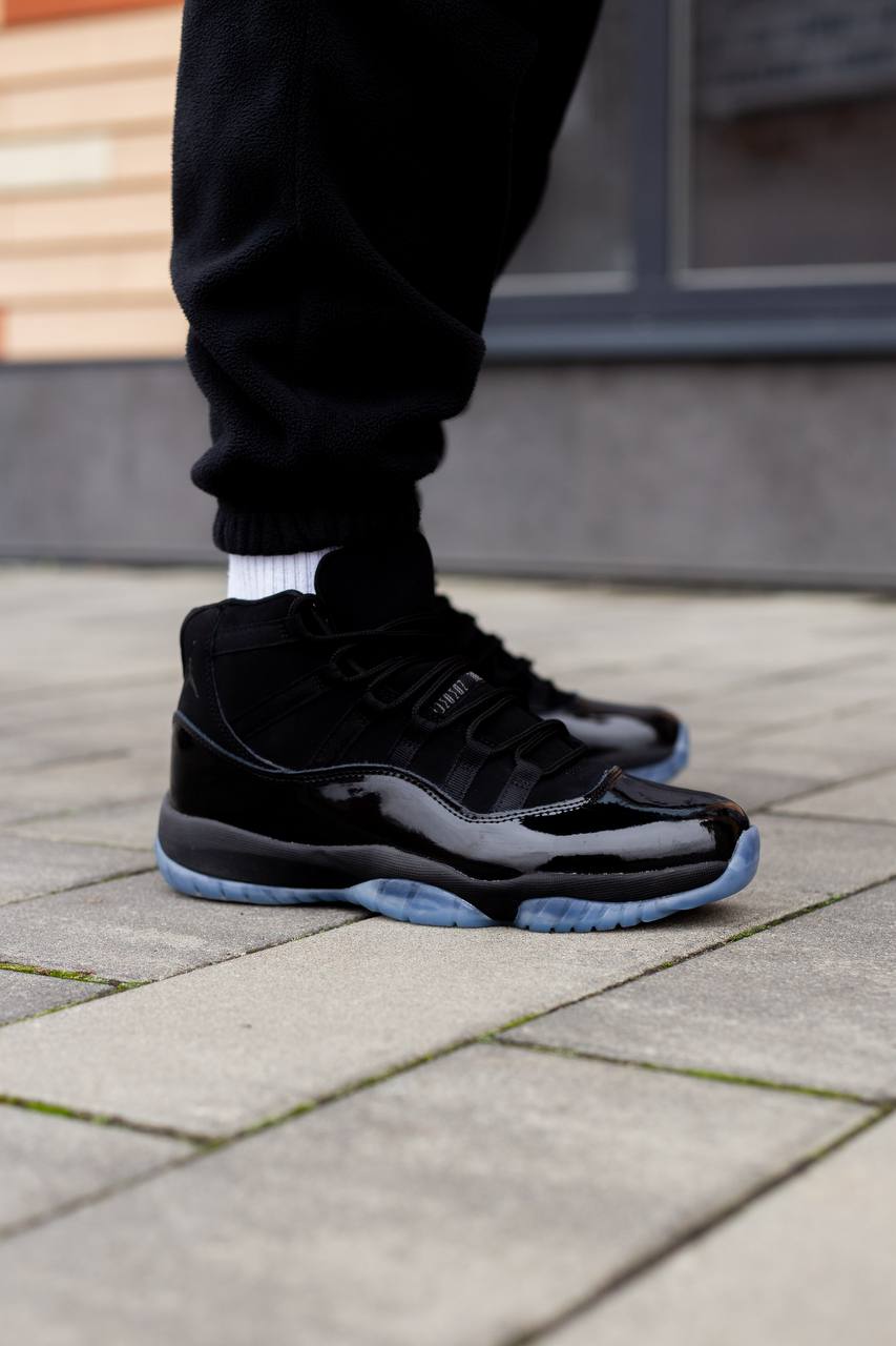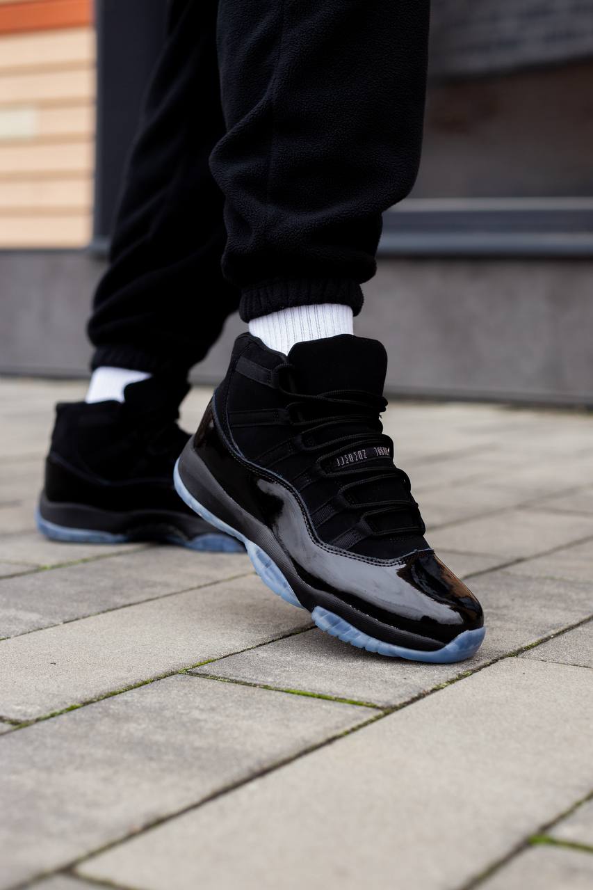Air Jordan 11 Retro Cap and Gown елегантна версія класичної моделі у повністю чорному кольорі. Верх поєднує гладку шкіру та лакові вставки, а прозора підошва з амортизацією Air забезпечує комфорт і стильний вигляд.