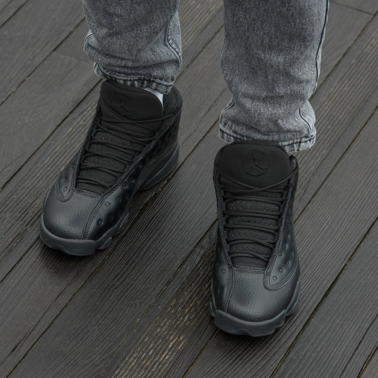 Air Jordan Retro 13 — стильні кросівки в темній монохромній кольоровій гамі з характерною панельною конструкцією та м’якою амортизацією. Забезпечують комфорт, хорошу підтримку та ефектний вигляд у щоденному носінні.