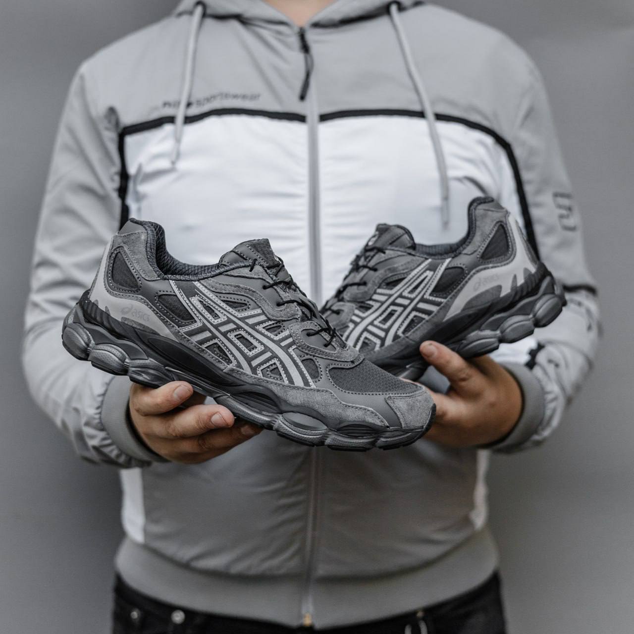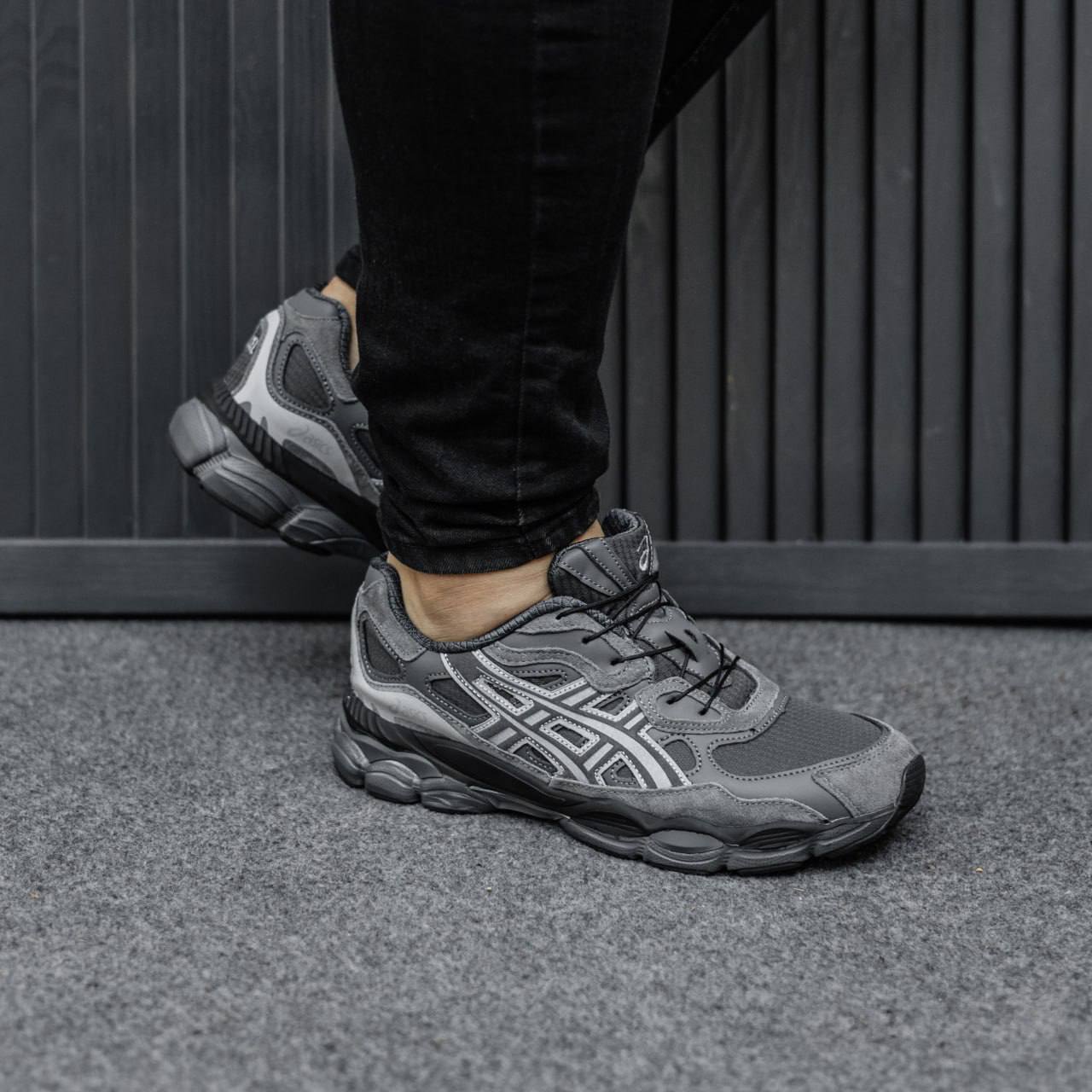 Asics Gel-NYC Grey — монохромні сірі кросівки зі змішаних матеріалів із ретро-біговим характером і комфортною амортизацією GEL.