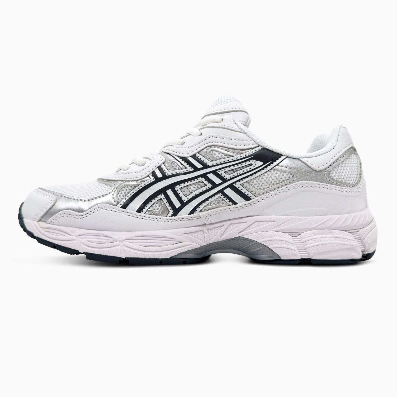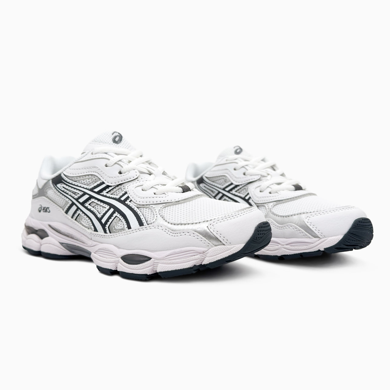 Asics Gel-Nyc White/Silver — стильні кросівки у поєднанні білого та сріблястого кольорів з динамічним силуетом і комфортною підошвою, що гармонійно доповнюють сучасний образ.