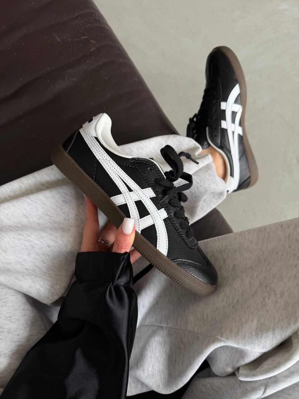 Asics Onitsuka Tiger Black Leather — кросівки в класичному стилі. Лаконічний дизайн і зручна посадка роблять модель практичним вибором для міських образів.
