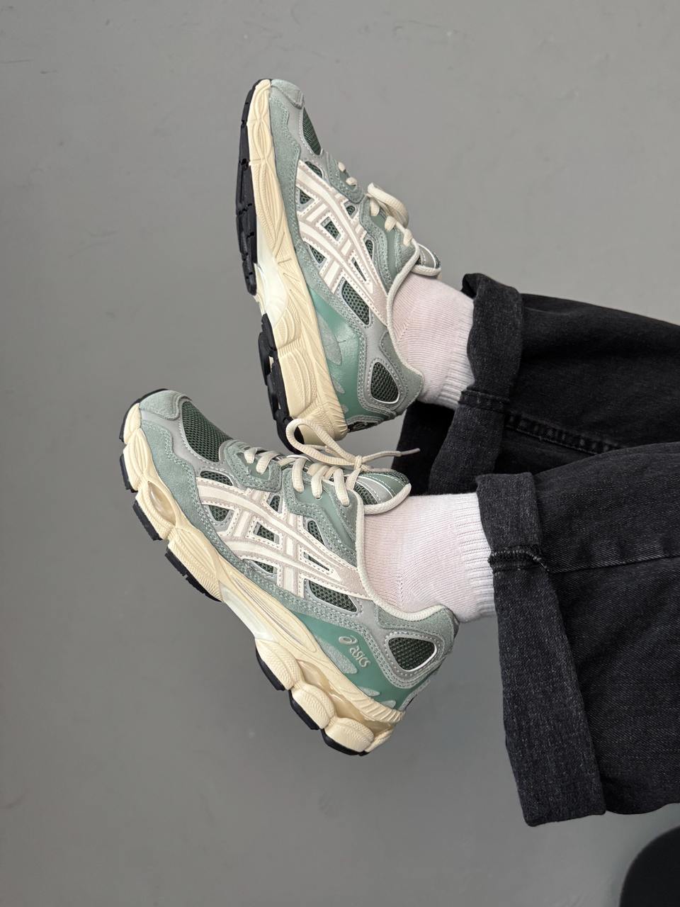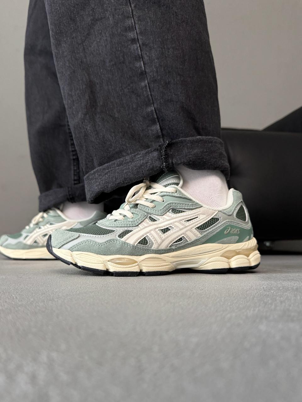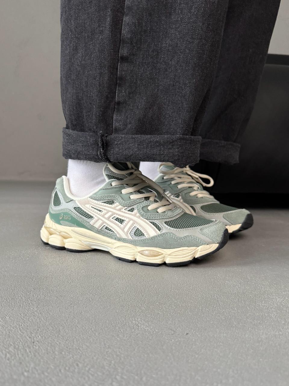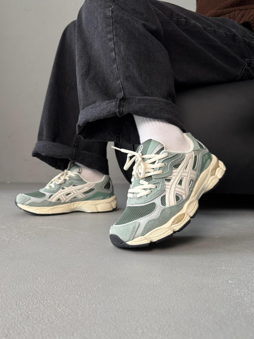 Asics Gel-NYC Green – стильні кросівки з поєднанням зелених та нейтральних тонів, що поєднують ретро-дизайн і сучасний комфорт.