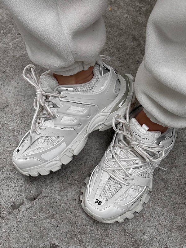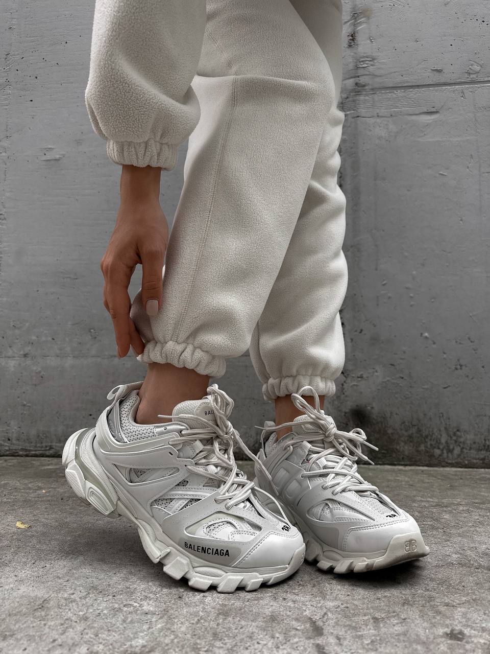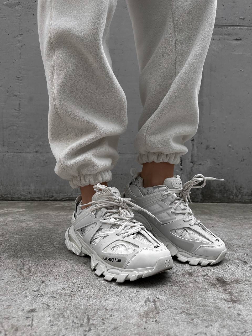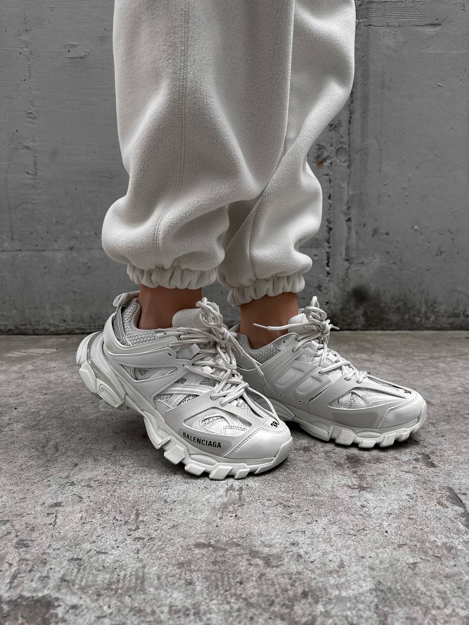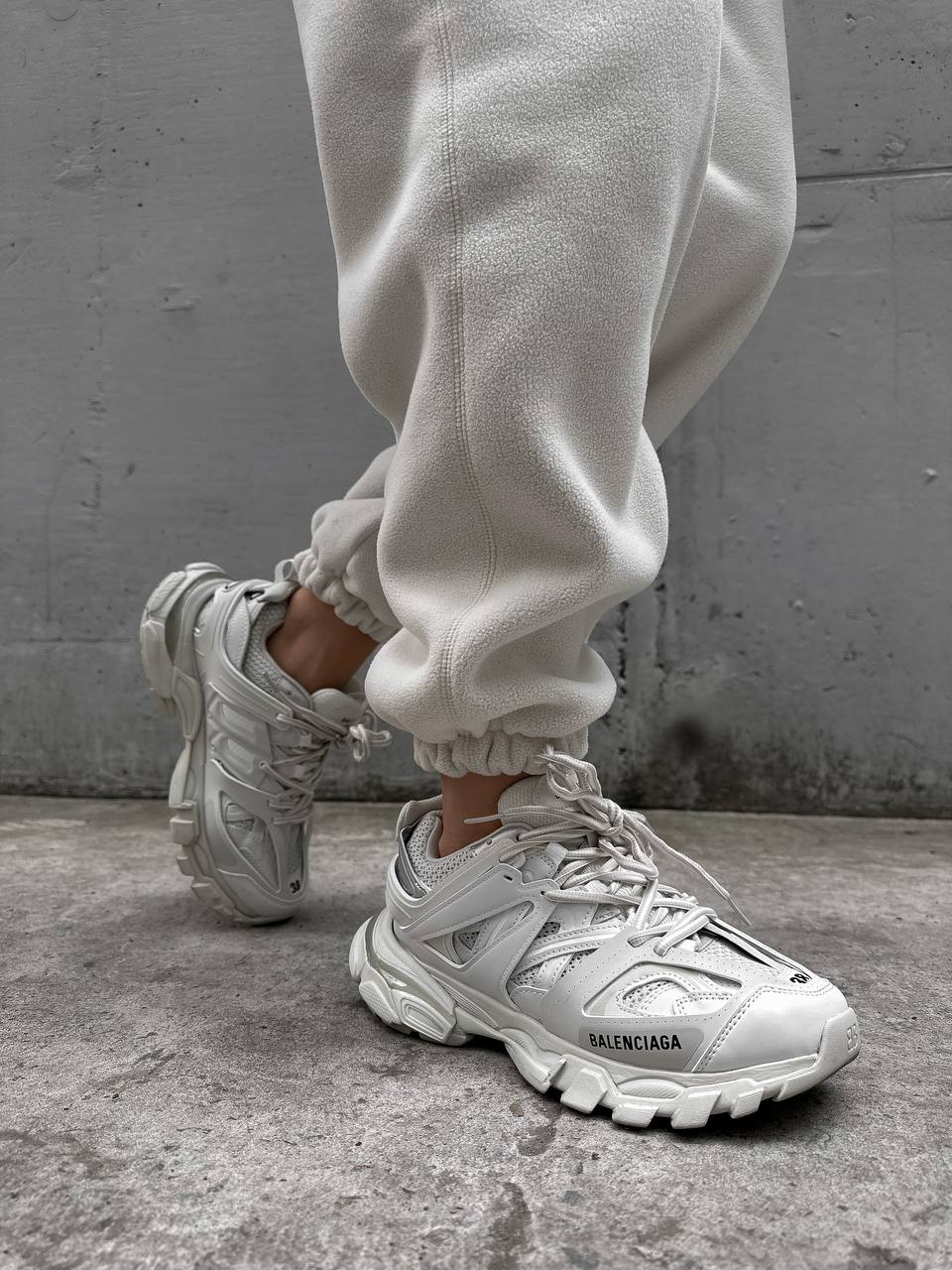 Balenciaga Track White — масивні кросівки в білому виконанні з багатошаровим технічним дизайном, що поєднують спортивну естетику та преміальний стиль.