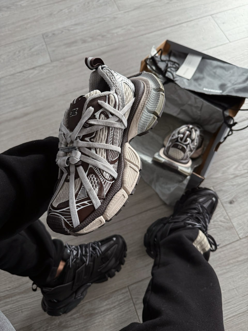 Balenciaga 3XL Extreme Lace Trainers Grey Brown — масивні кросівки з багатошаровим верхом і виразною шнурівкою. Об’ємна підошва забезпечує амортизацію та комфорт у щоденному носінні.