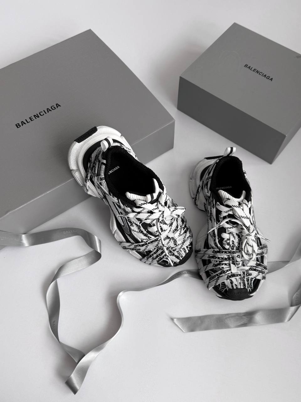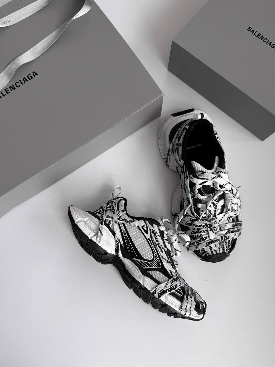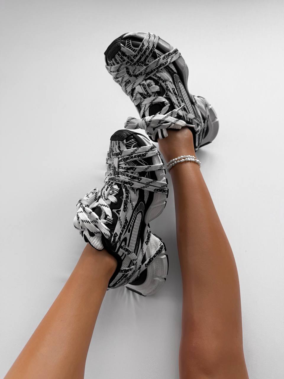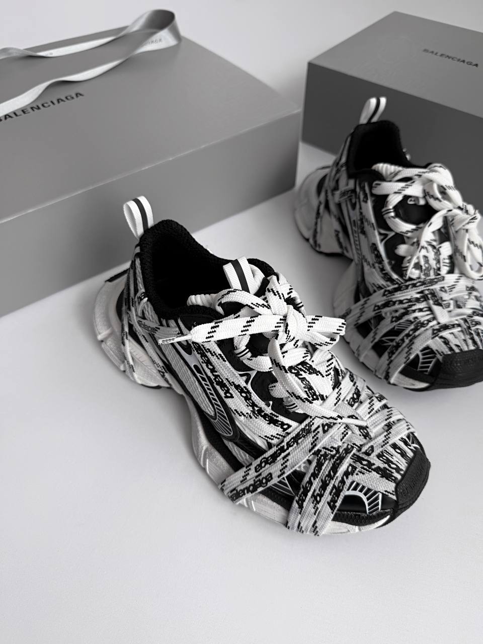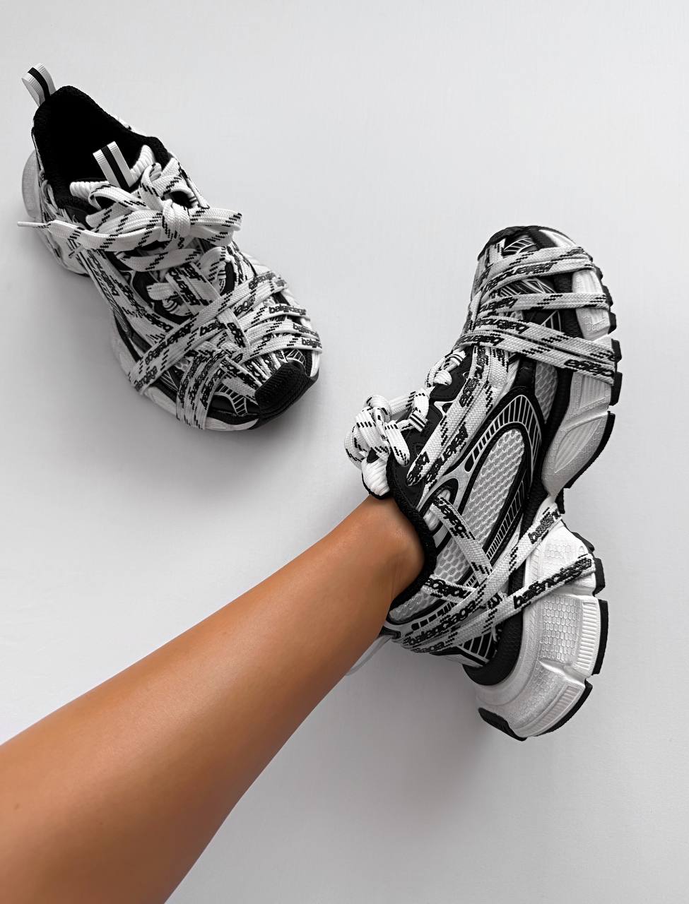 Balenciaga 3xl Extreme Laces Black/White Logo — стильні кросівки чорного та білого кольору з логотипом масивною підошвою та характерним дизайном для виразного образу.