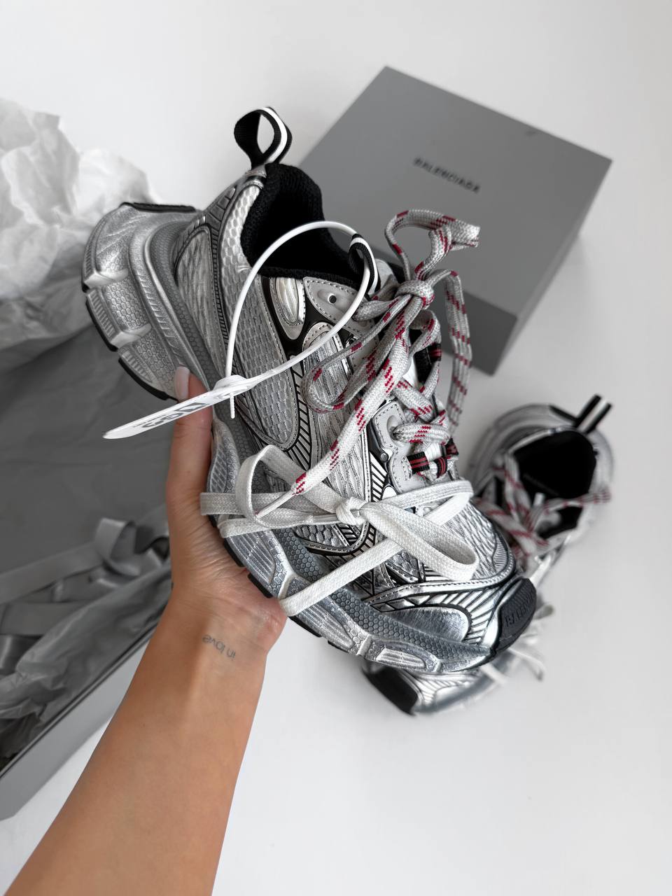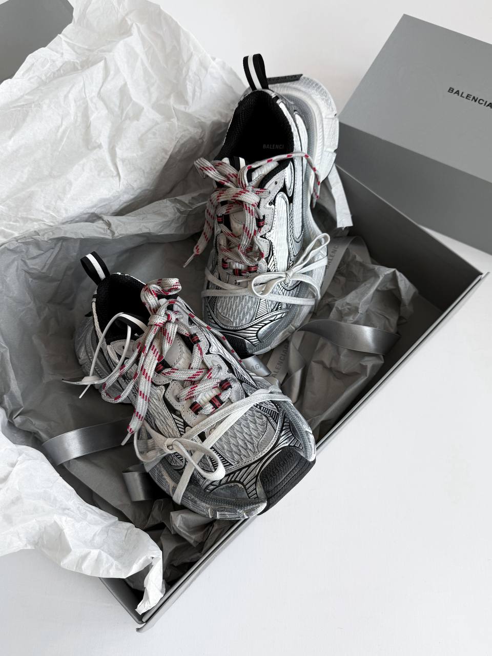 Balenciaga 3XL Grey/Silver – модель у поєднанні сірого та сріблястого відтінків. Об’ємний силует і виразний дизайн підкреслюють стріт-стайл настрій, а зручна підошва забезпечує комфорт у щоденному носінні.
