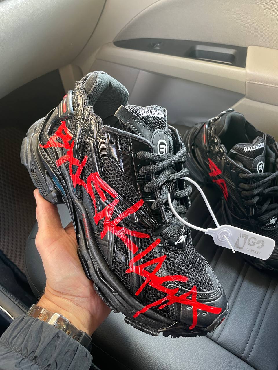 Balenciaga Runner Graffiti Black/Red  кросівки з ефектом зношеності та фірмовими графіті-деталями. Комфортна підошва з потужною амортизацією, поєднання текстилю й шкіряних вставок. Стильна й впізнавана пара для сміливого образу.