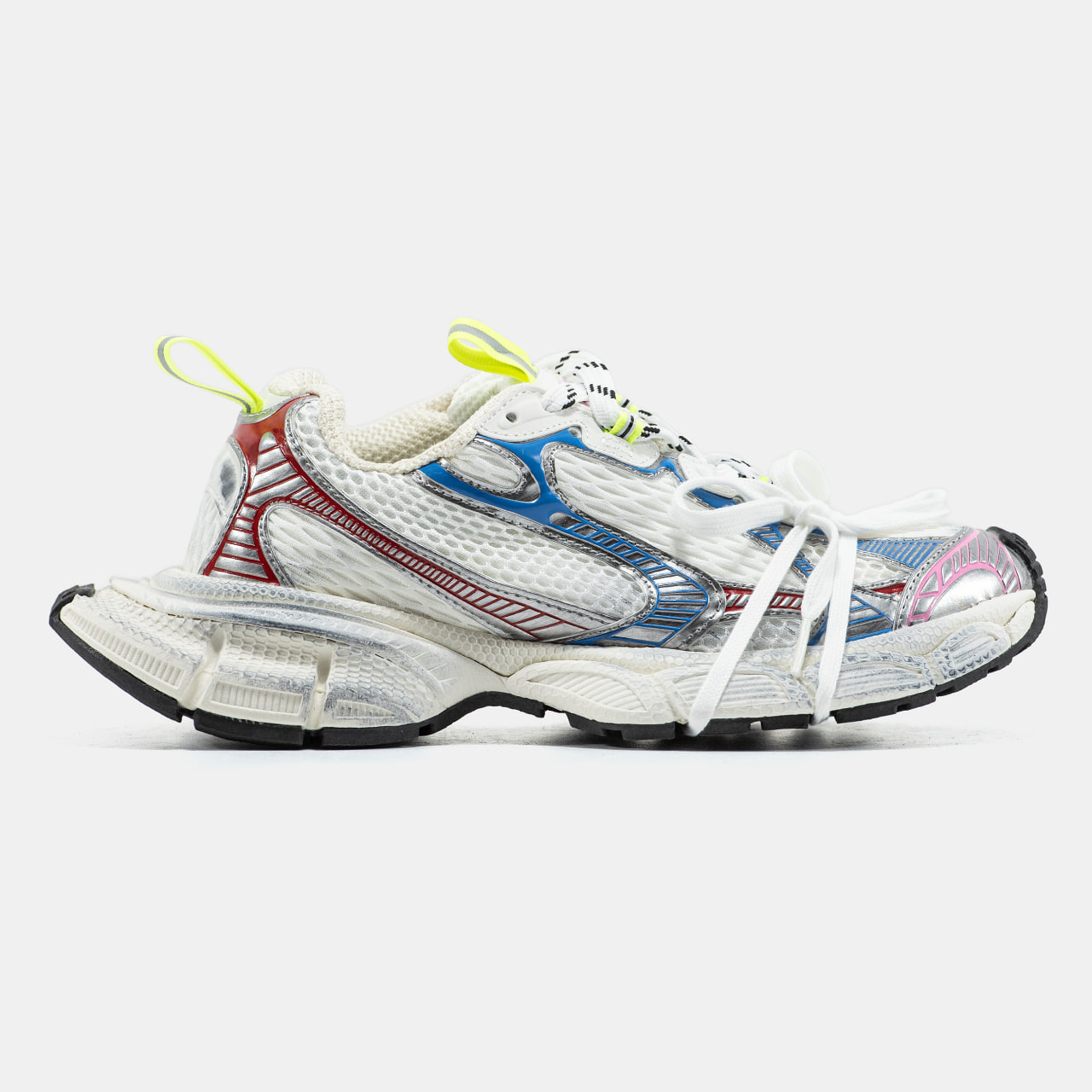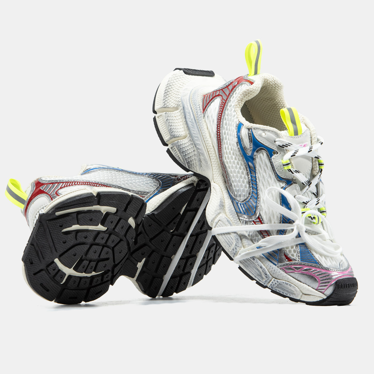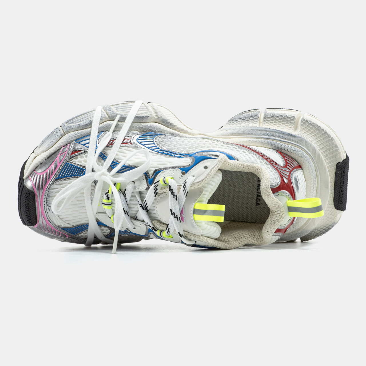 Balenciaga 3XL   кросівки від бренду Balenciaga з ультраоб’ємною підошвою, верхом із сітки та поліуретанових накладок, логотипом “3XL” на язичку і надписом бренду на носі та п’яті. Естетика — техно, із «брудним» або потертим ефектом.