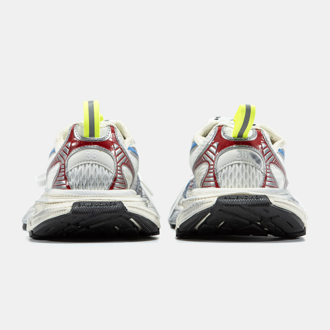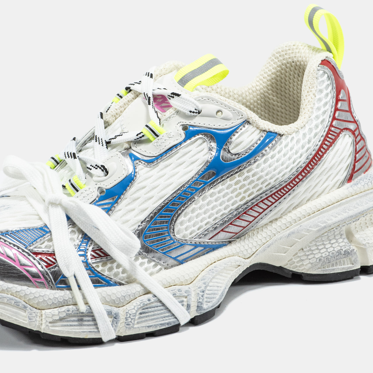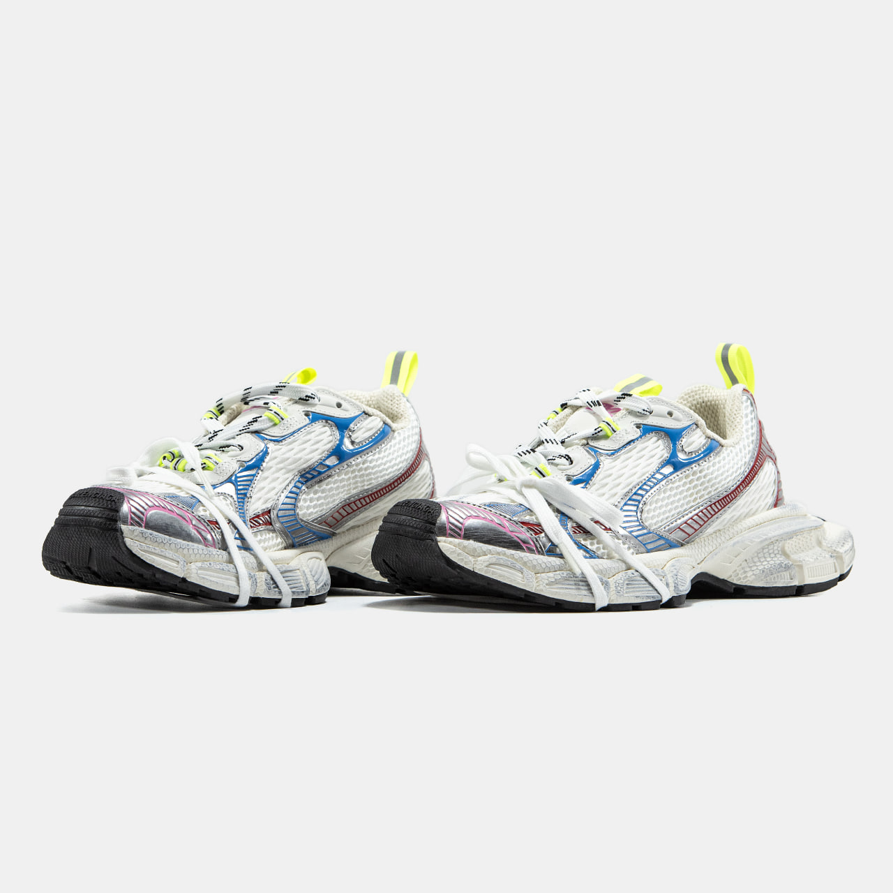 Balenciaga 3XL   кросівки від бренду Balenciaga з ультраоб’ємною підошвою, верхом із сітки та поліуретанових накладок, логотипом “3XL” на язичку і надписом бренду на носі та п’яті. Естетика — техно, із «брудним» або потертим ефектом.