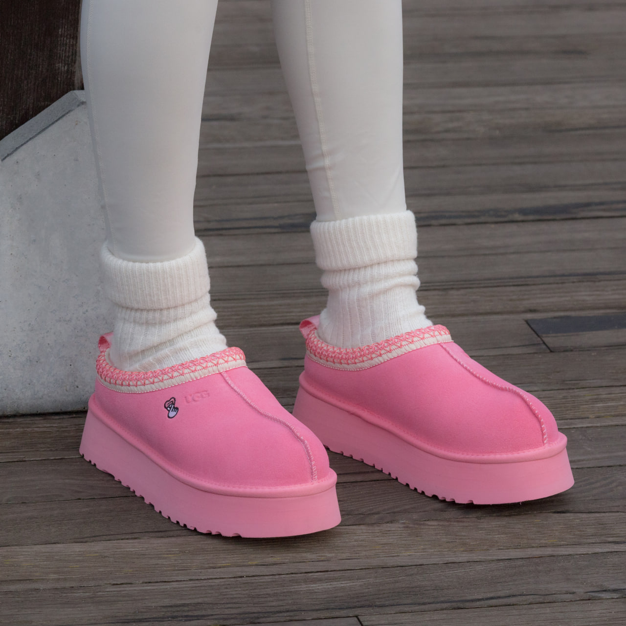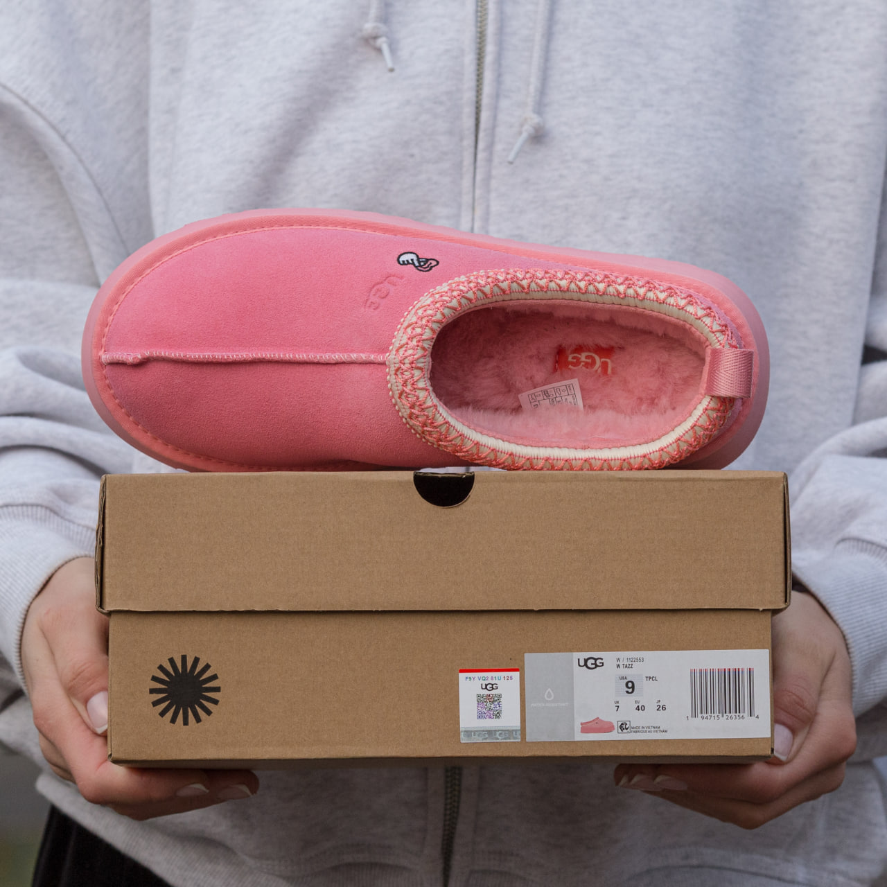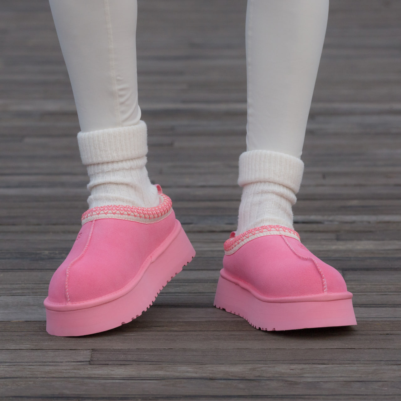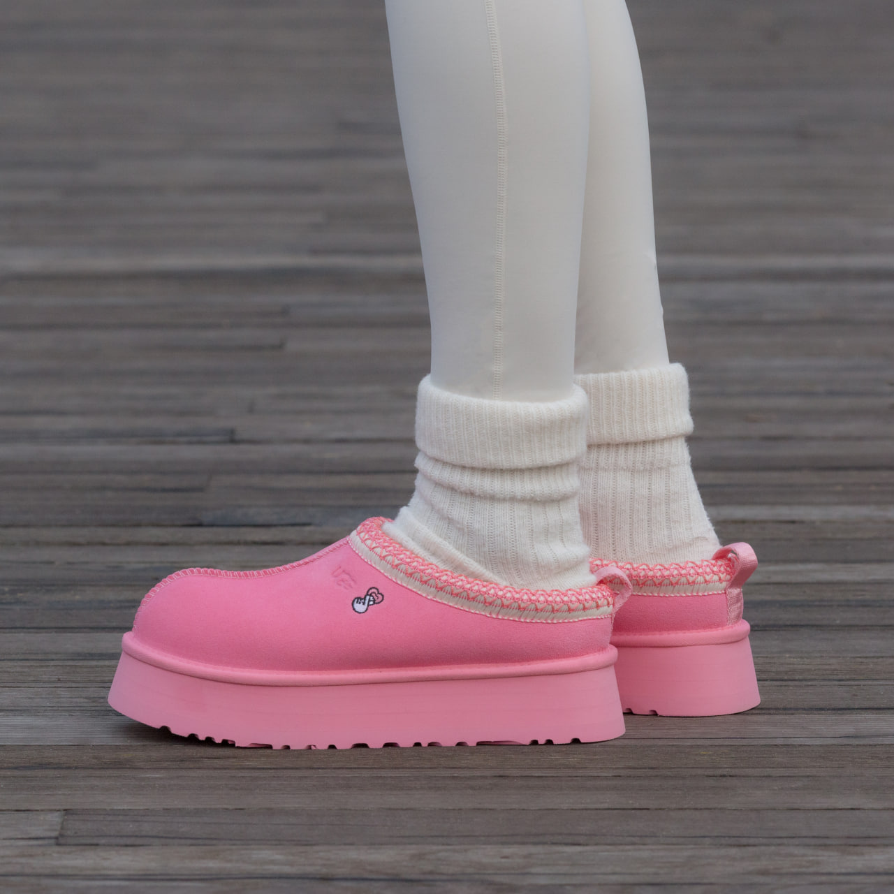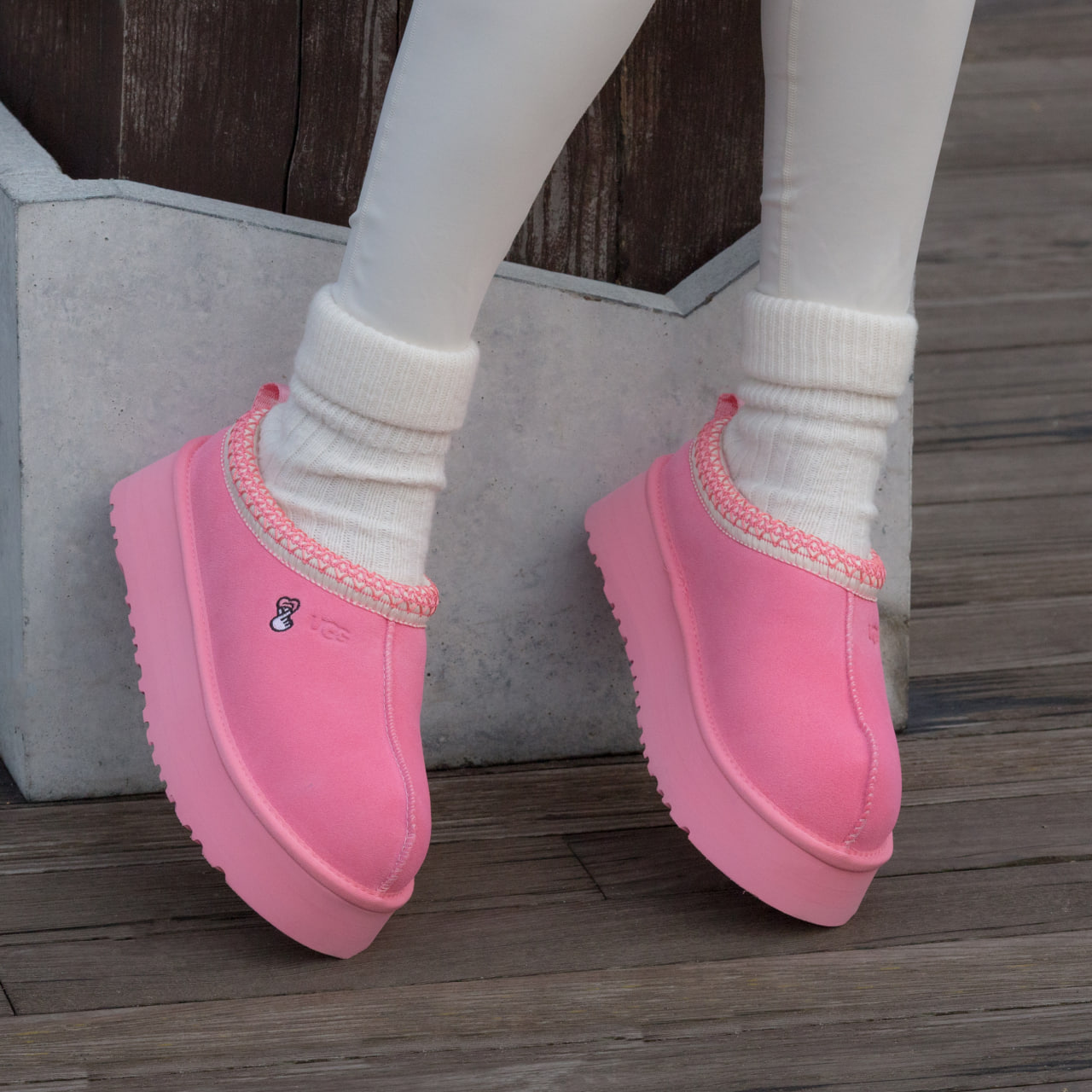 Ugg Tasman Platform Love Pink – яскрава модель на зручній платформі в ніжно-рожевому кольорі. Тепла та максимально комфортна — підходить для стильних образів у холодну пору.