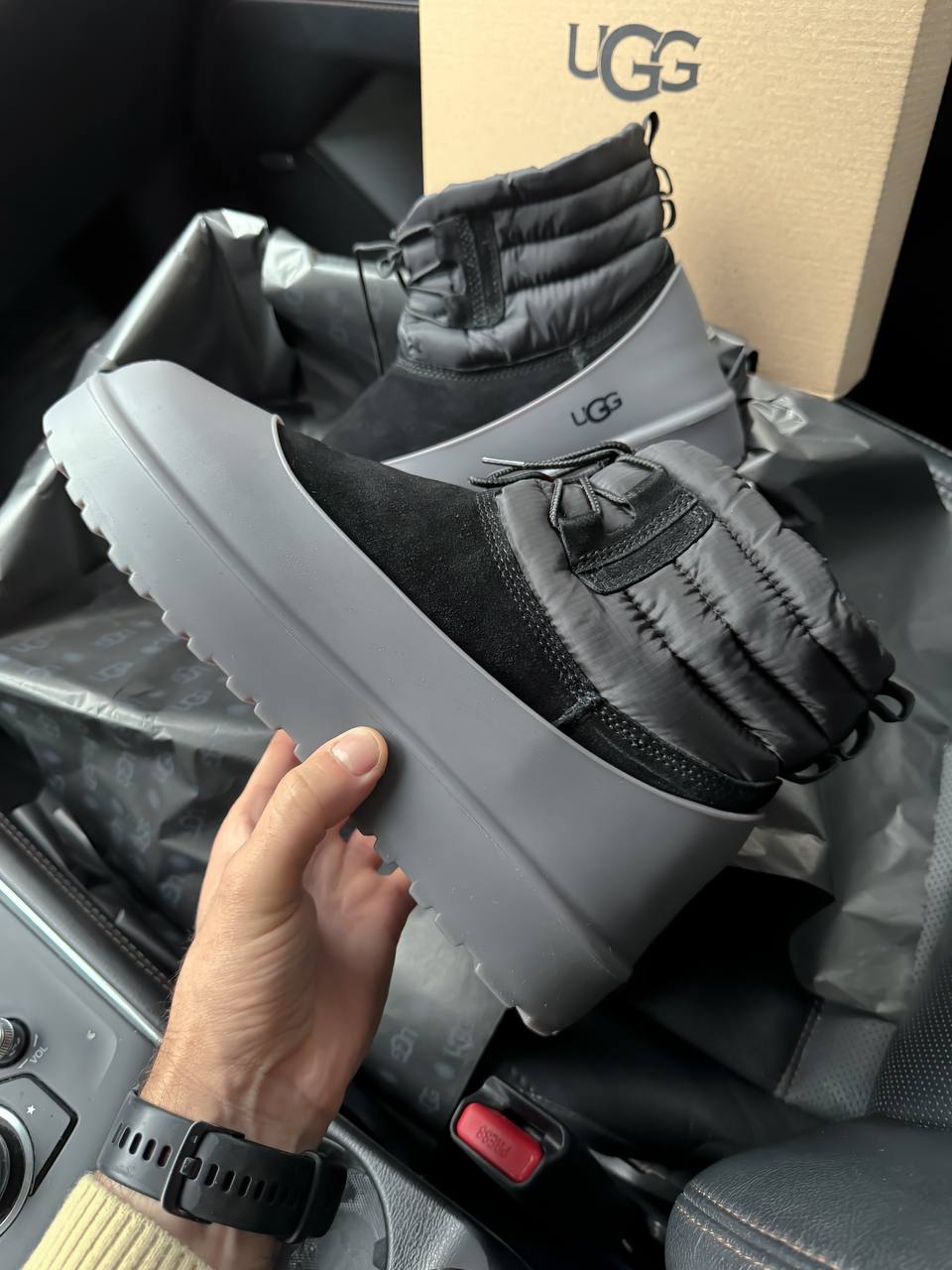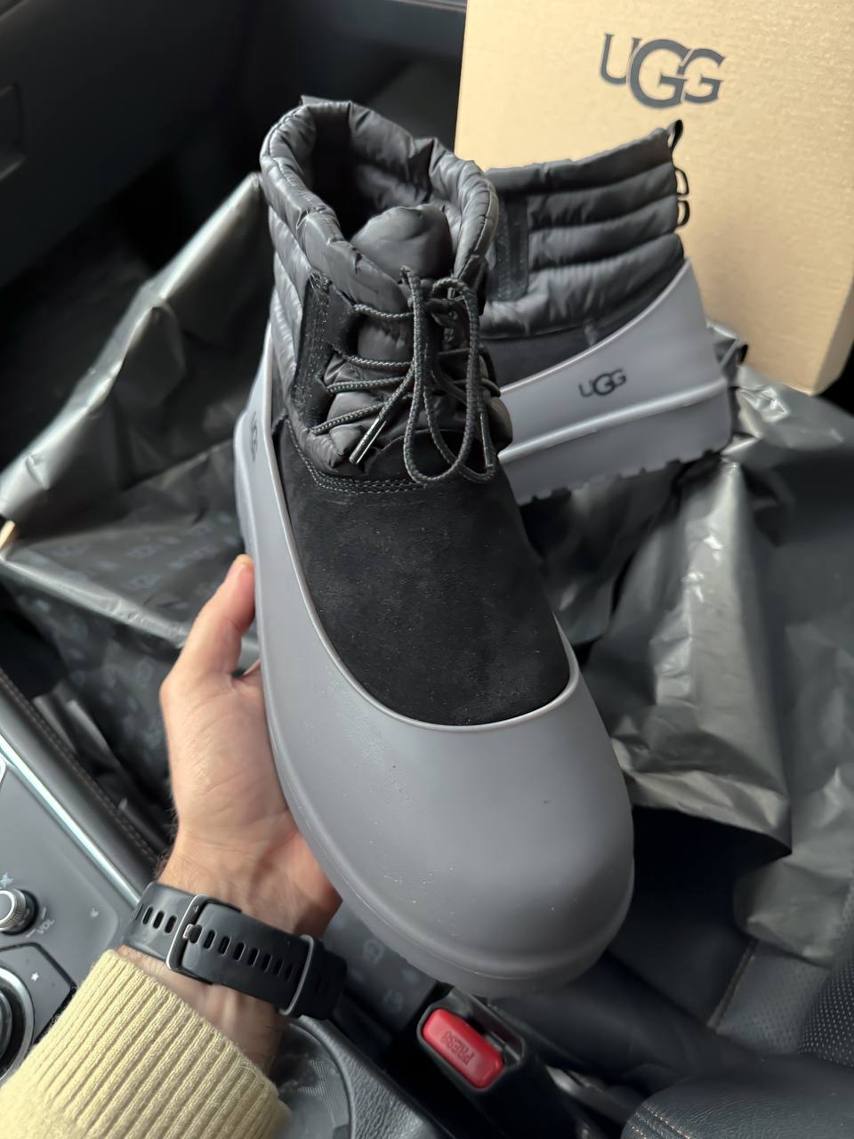 UGG Classic Mini Lace-Up Black — утеплені замшеві черевики з шнурівкою для холодної погоди.