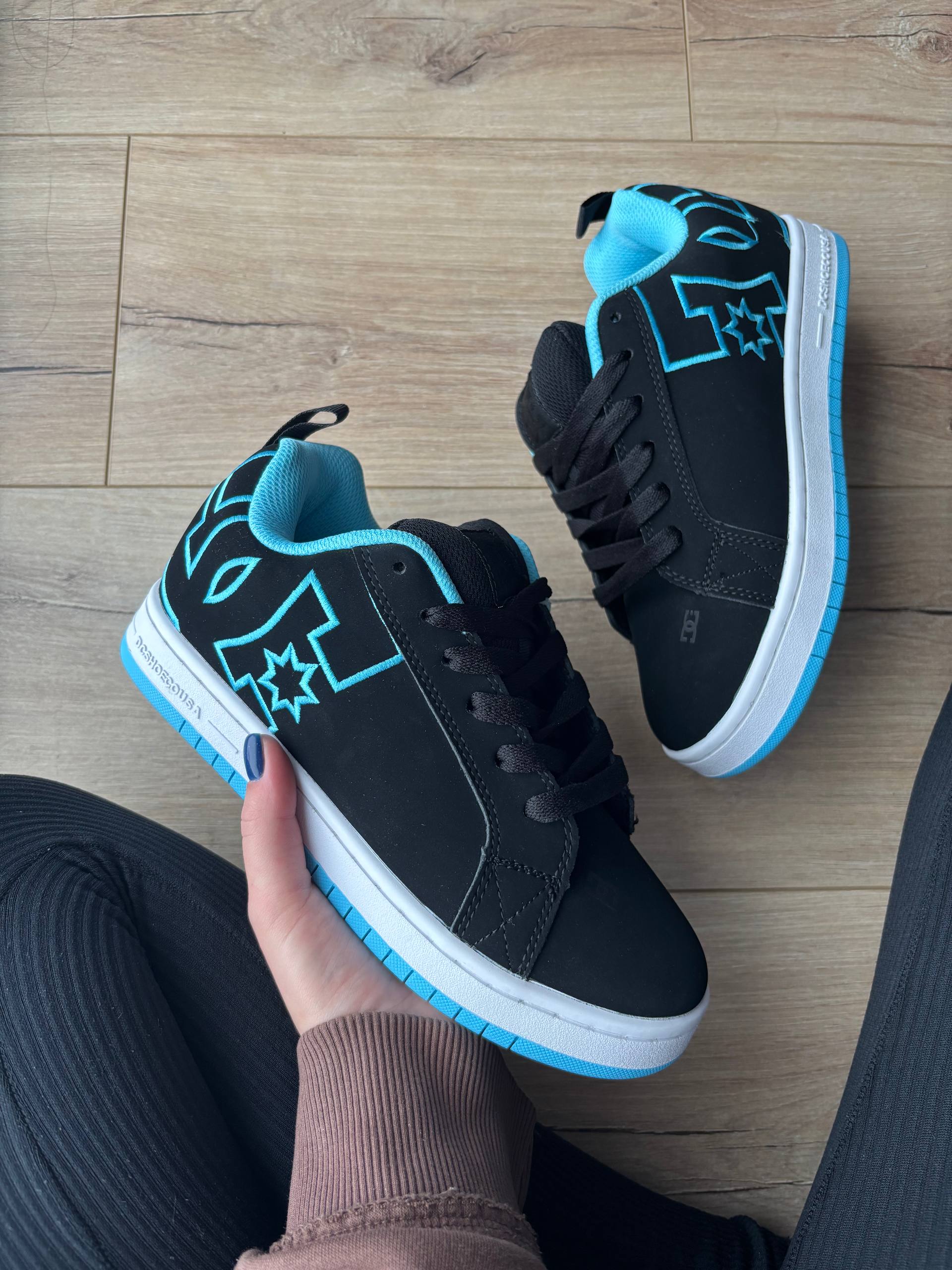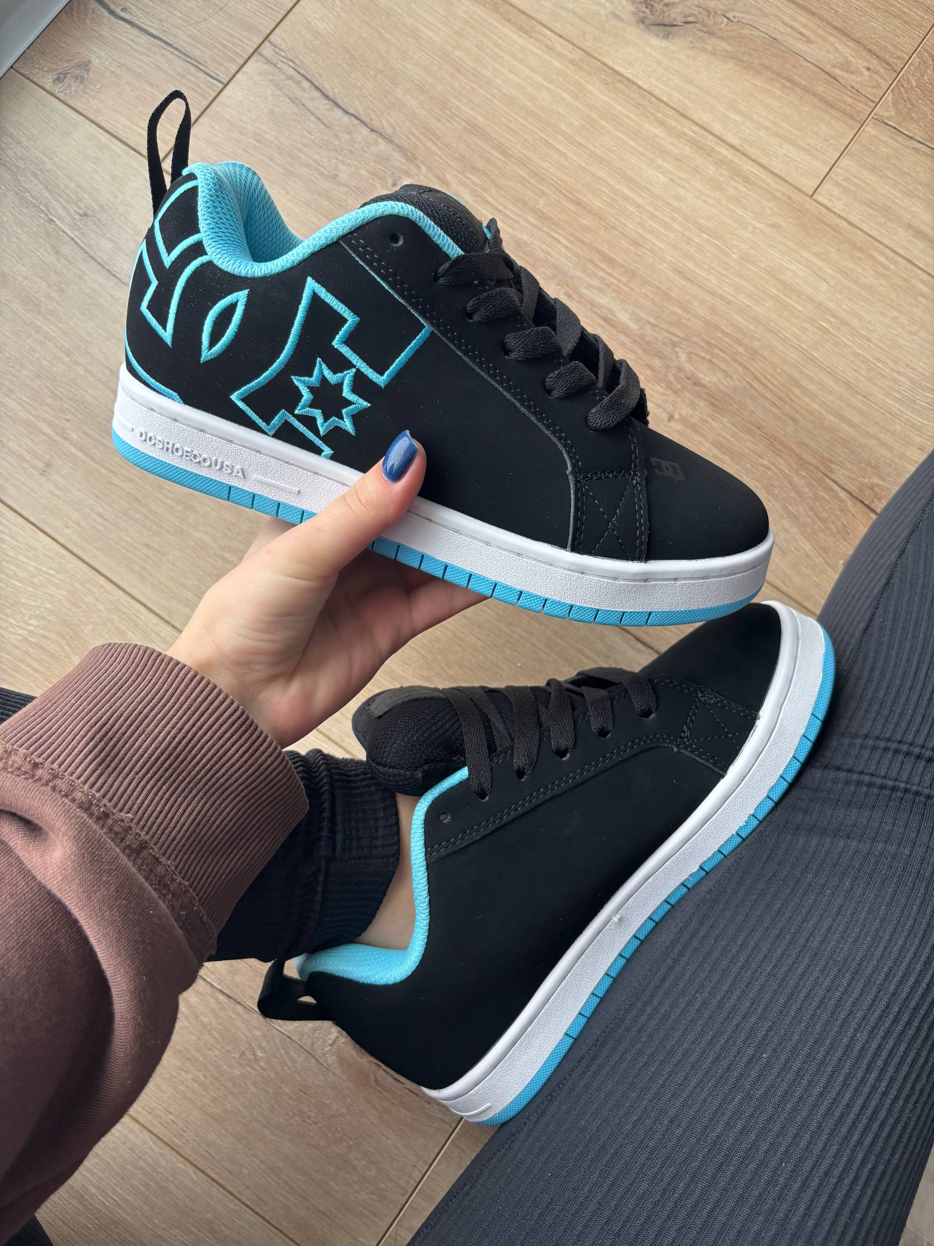 DC Court Graffik Black Blue — скейт-кеди з міцним верхом і зручною посадкою. Комфортна амортизація, гнучка підошва з хорошим зчепленням, контрастні сині акценти на чорному фоні. Підійдуть для активного міського стилю.