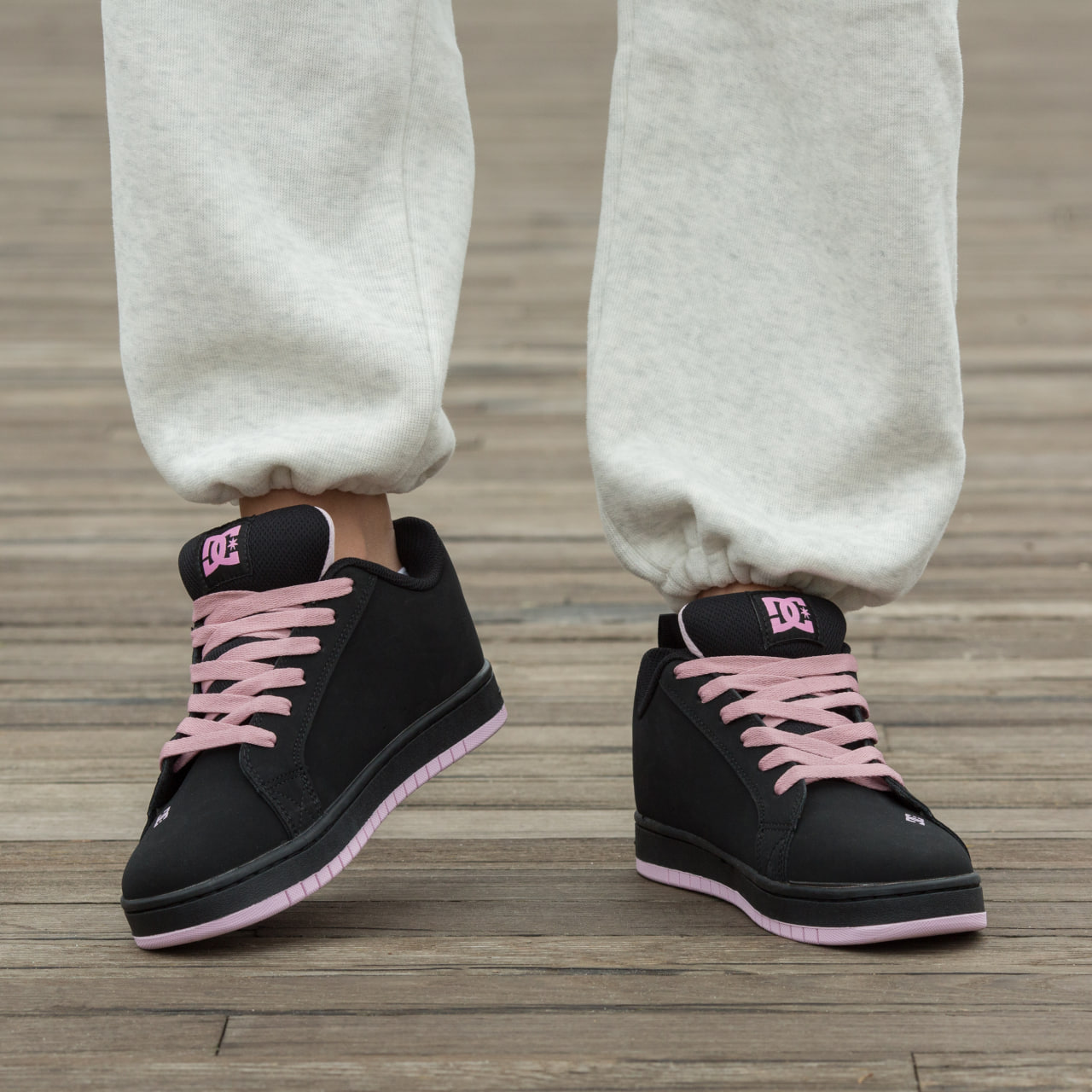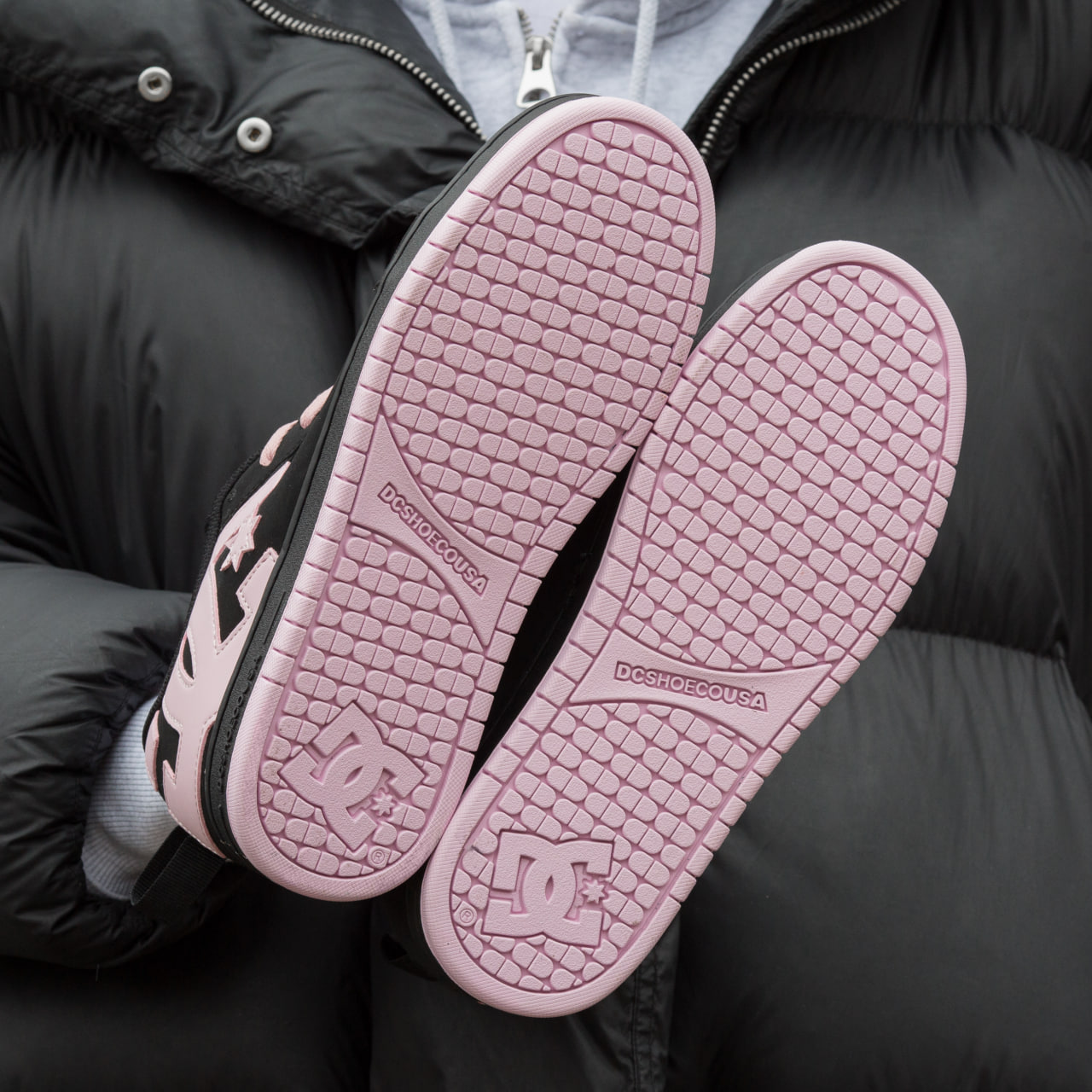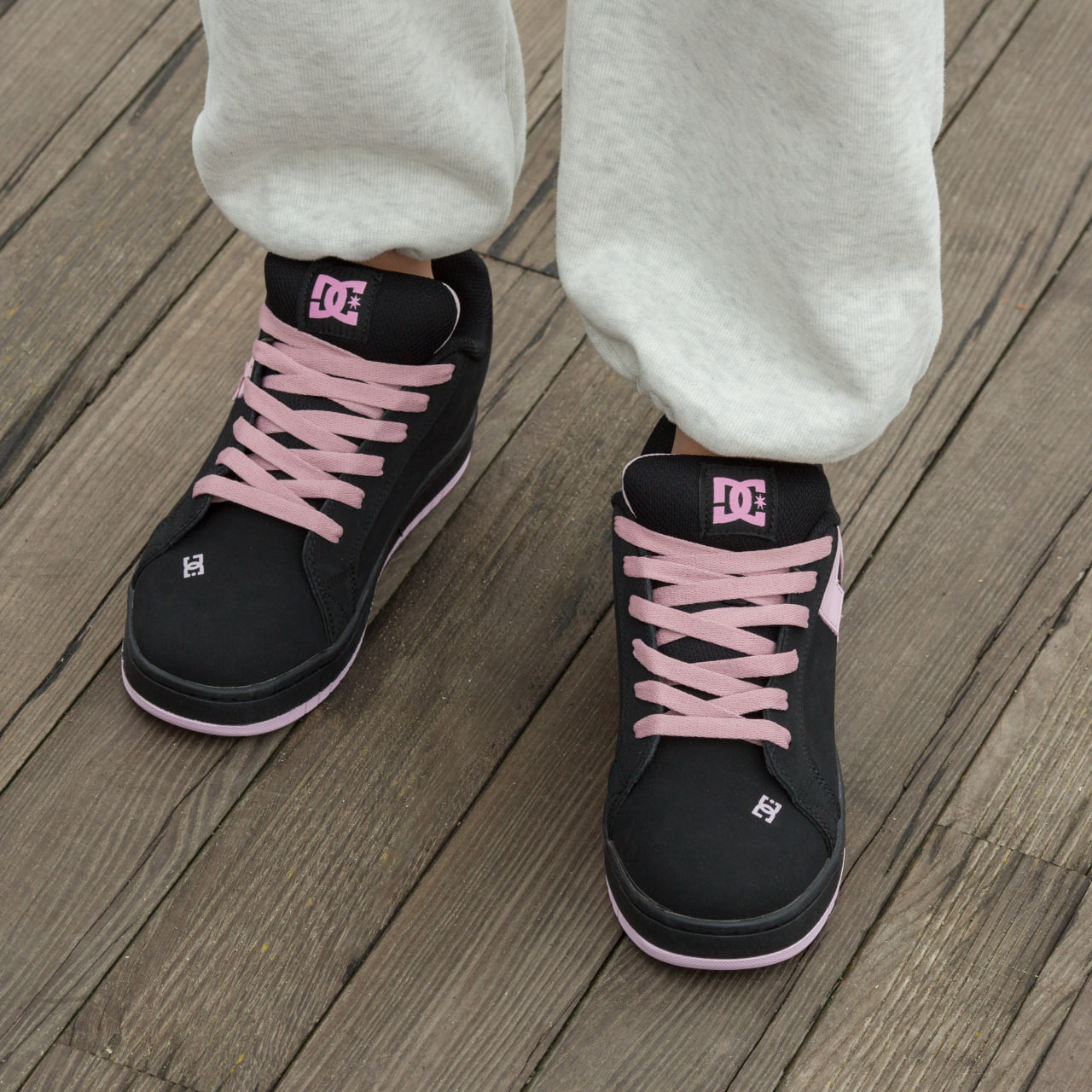 DC Court Graffik Black Pink — масивні скейтерські кросівки з чорним верхом, акцентованим рожевими деталями та великим логотипом бренду.