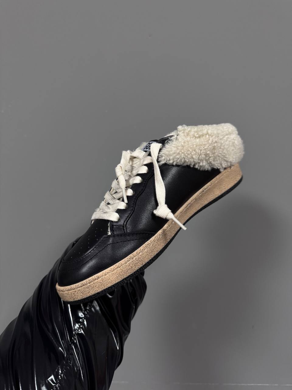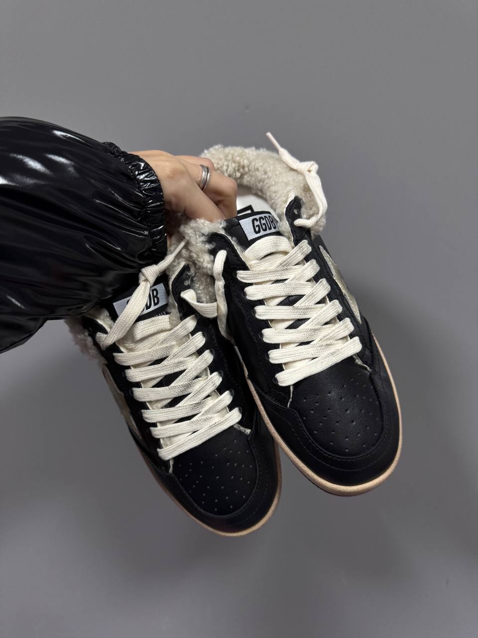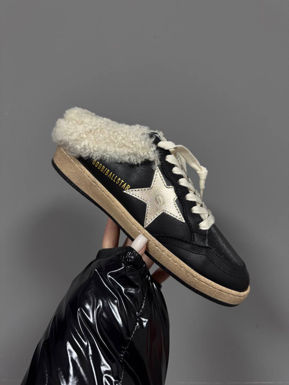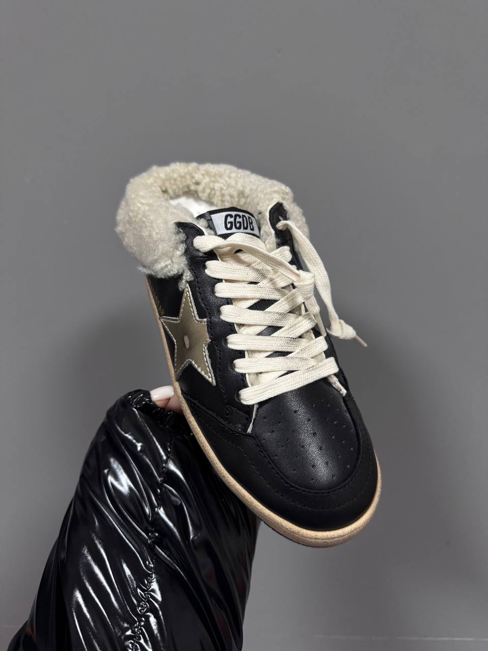 Golden Goose Ballstar Black Leather Fur— кеди з замші з хутряною обробкою, фірмовим зістареним ефектом та зручною підошвою. Стильна та тепліша модель для щоденного міського носіння.