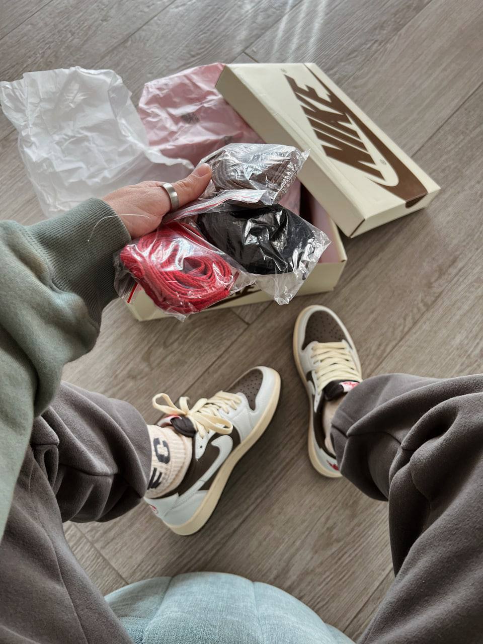 Jordan 1 Retro Low OG SP Travis Scott Reverse Mocha — це знакова колаборація з Тревісом Скоттом, яка вирізняється перевернутим логотипом Swoosh і характерною палітрою молочно-білих та коричневих відтінків.