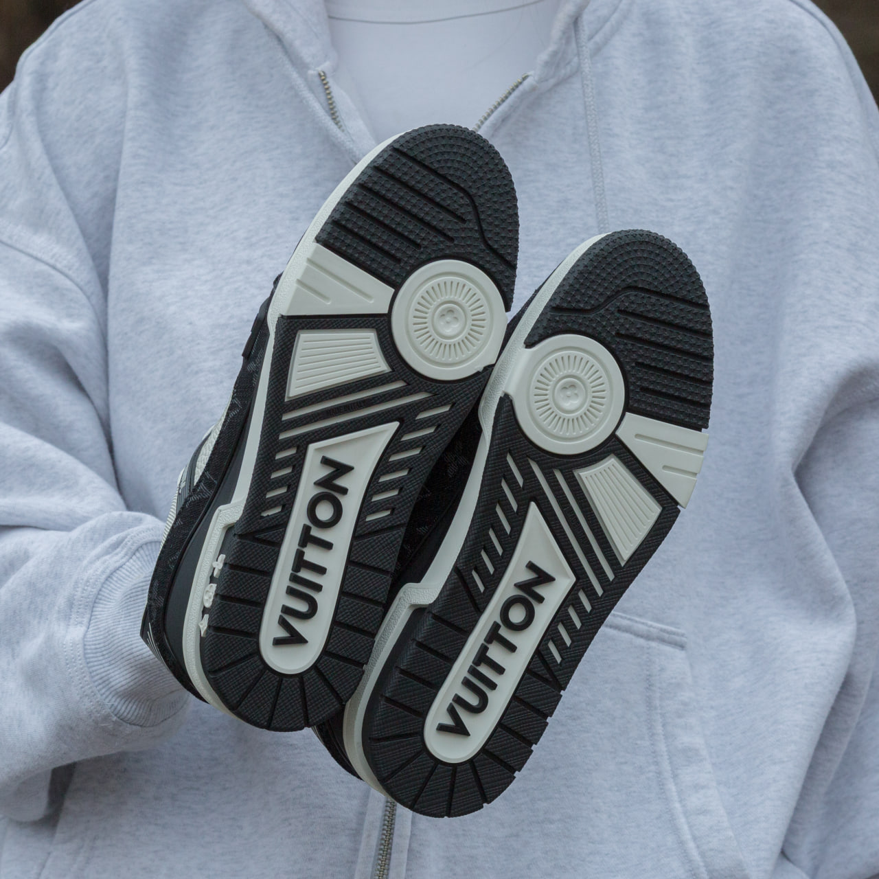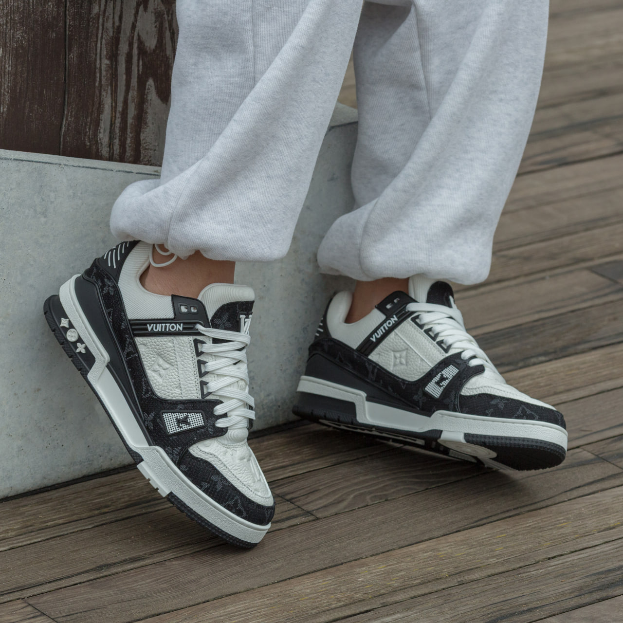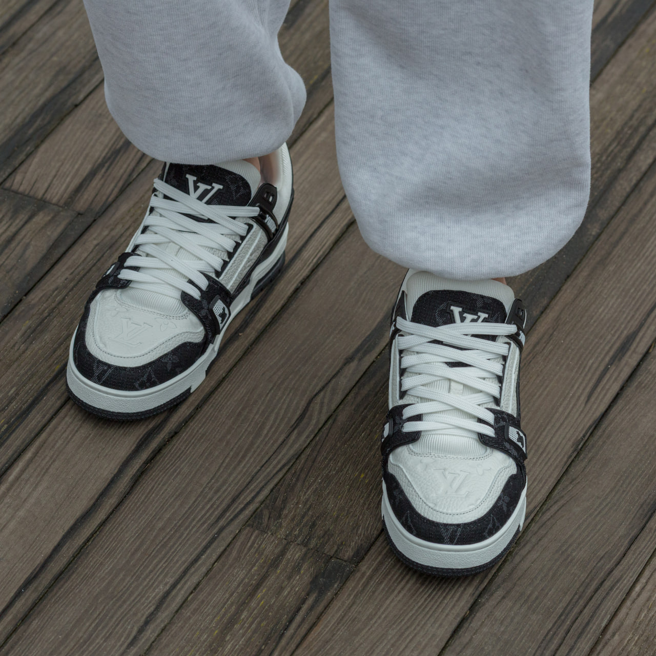 Louis Vuitton LV Trainer Sneakers White Black  стильні кросівки у білому з чорними акцентами для щоденного носіння.
