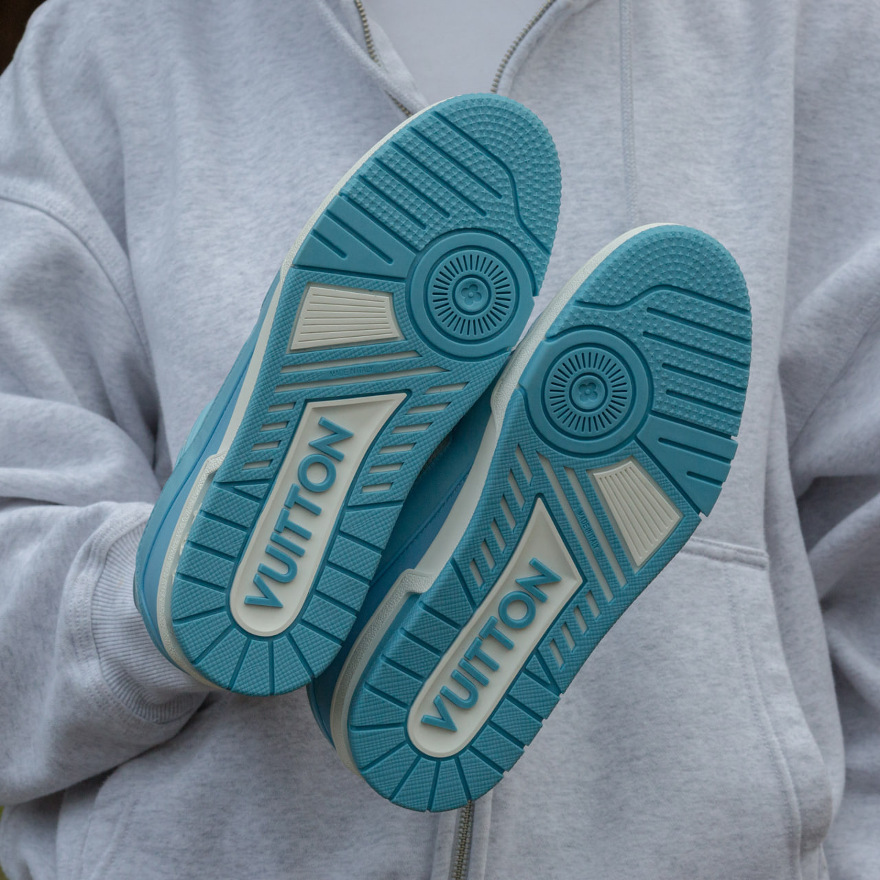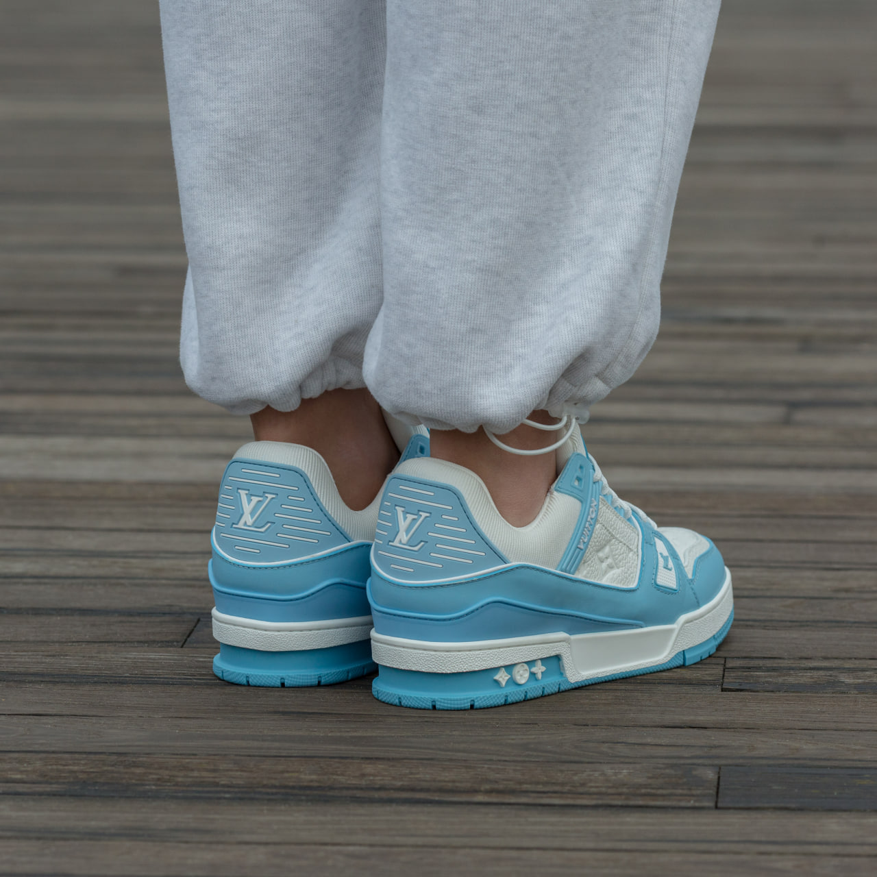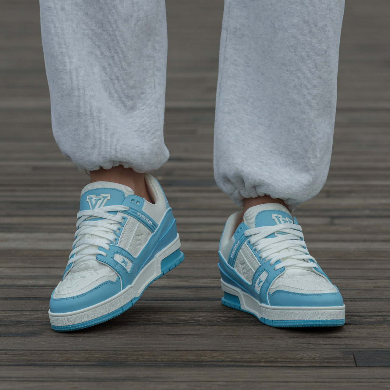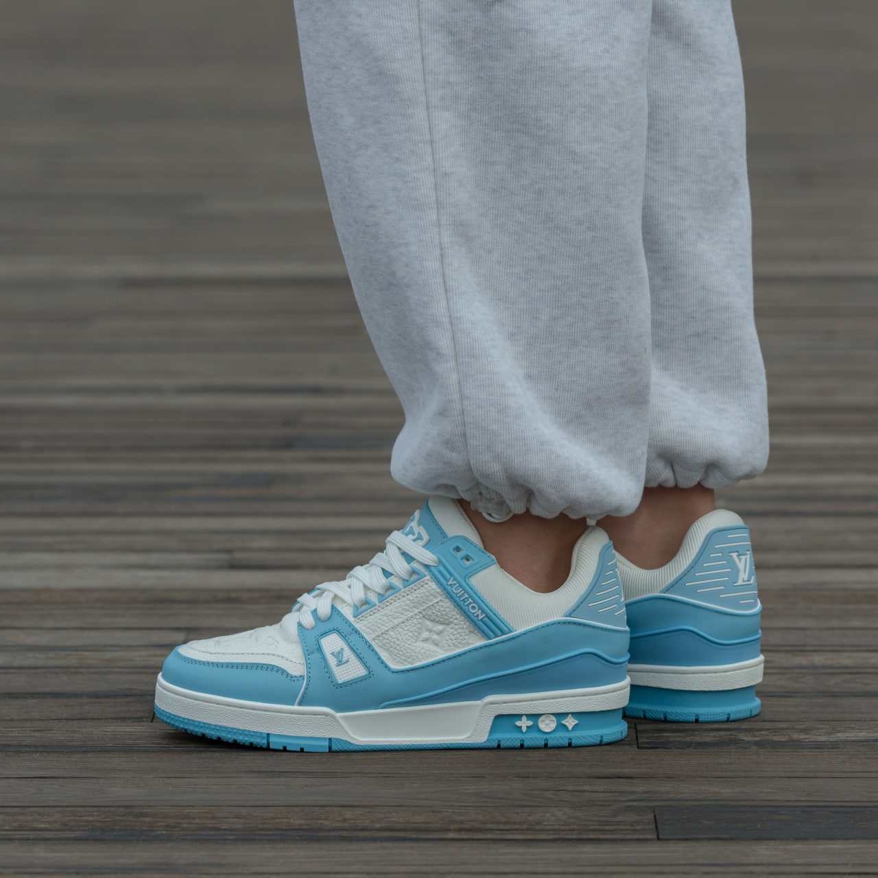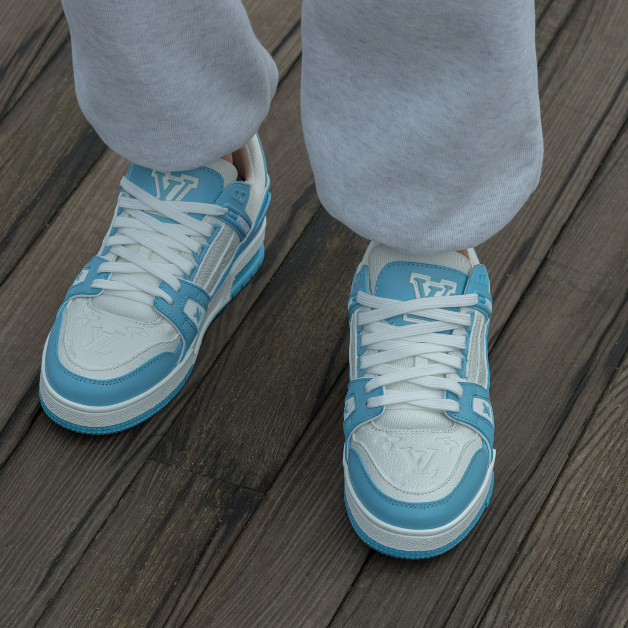 Louis Vuitton LV Trainer Sneakers White Blue — стильні кросівки у білому з блакитним акцентами для щоденного носіння.