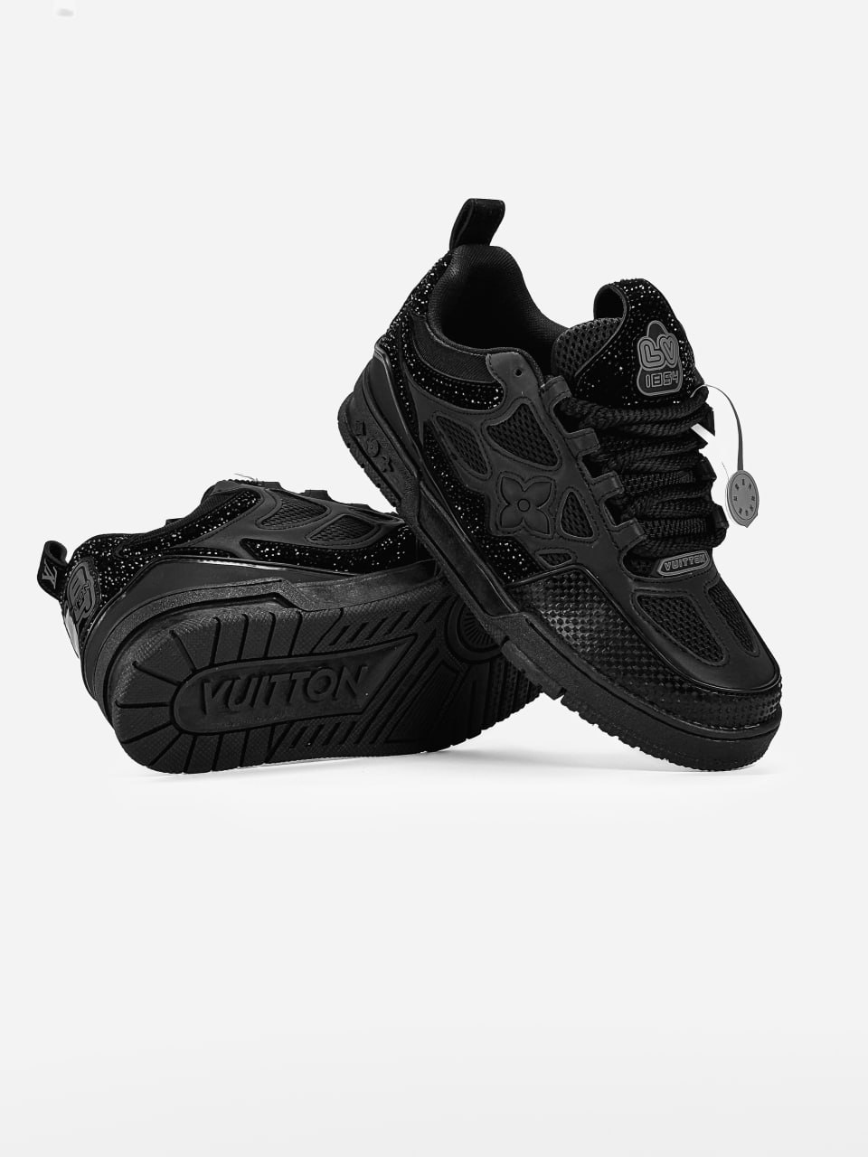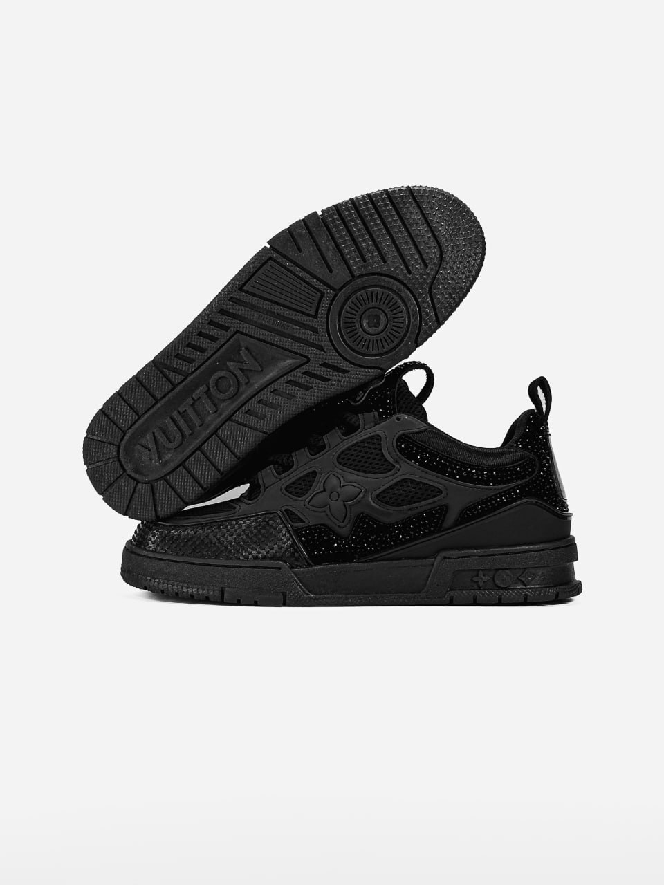Louis Vuitton Skate Black Crystal — чорні кросівки LV Skate зі Swarovski‑кристалами та скейтерським дизайном.