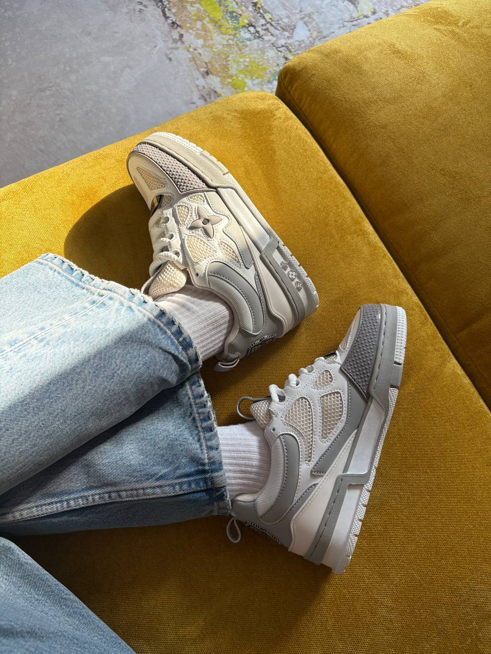 Louis Vuitton Skate Sneaker White Grey — преміальні кросівки у білому та сірому кольорах з масивним дизайном.
