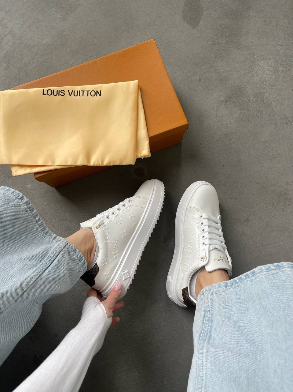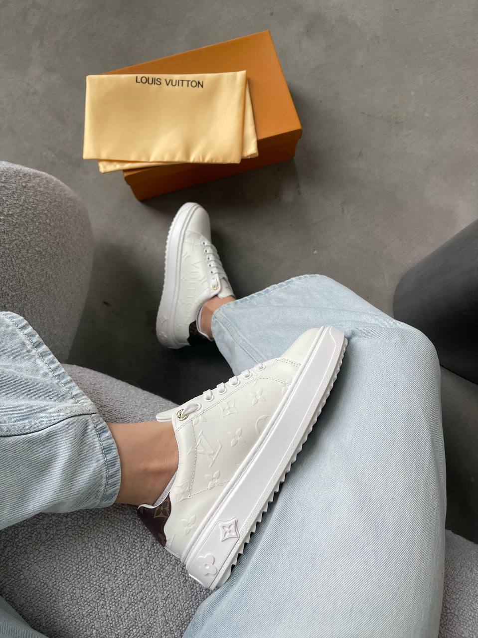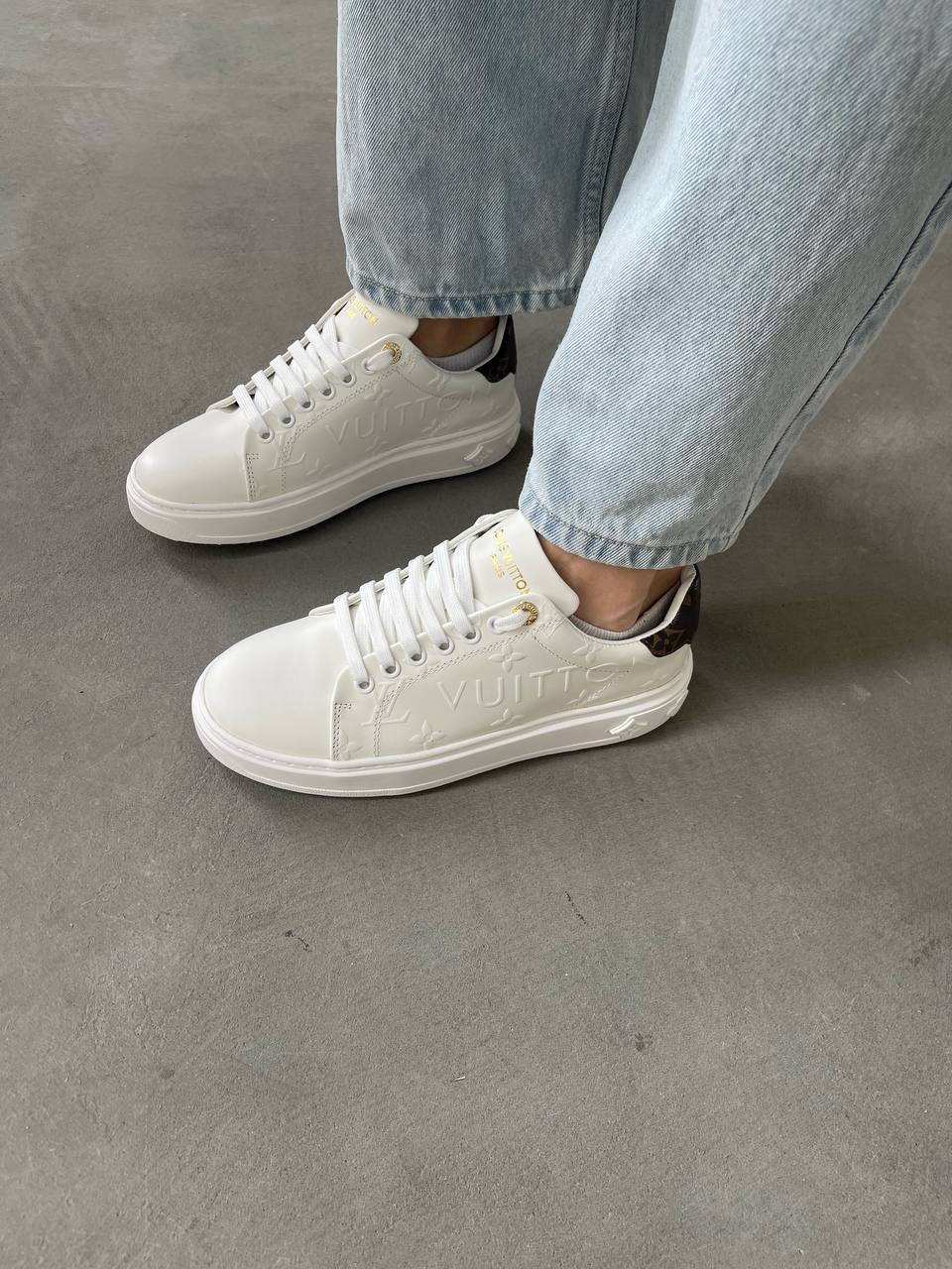 Louis Vuitton Time Out White Premium — кеди з мінімалістичним дизайном, шкіряним верхом, акуратним силуетом.Універсальний білий колір із фірмовими деталями вдало доповнює стильний міський образ.
