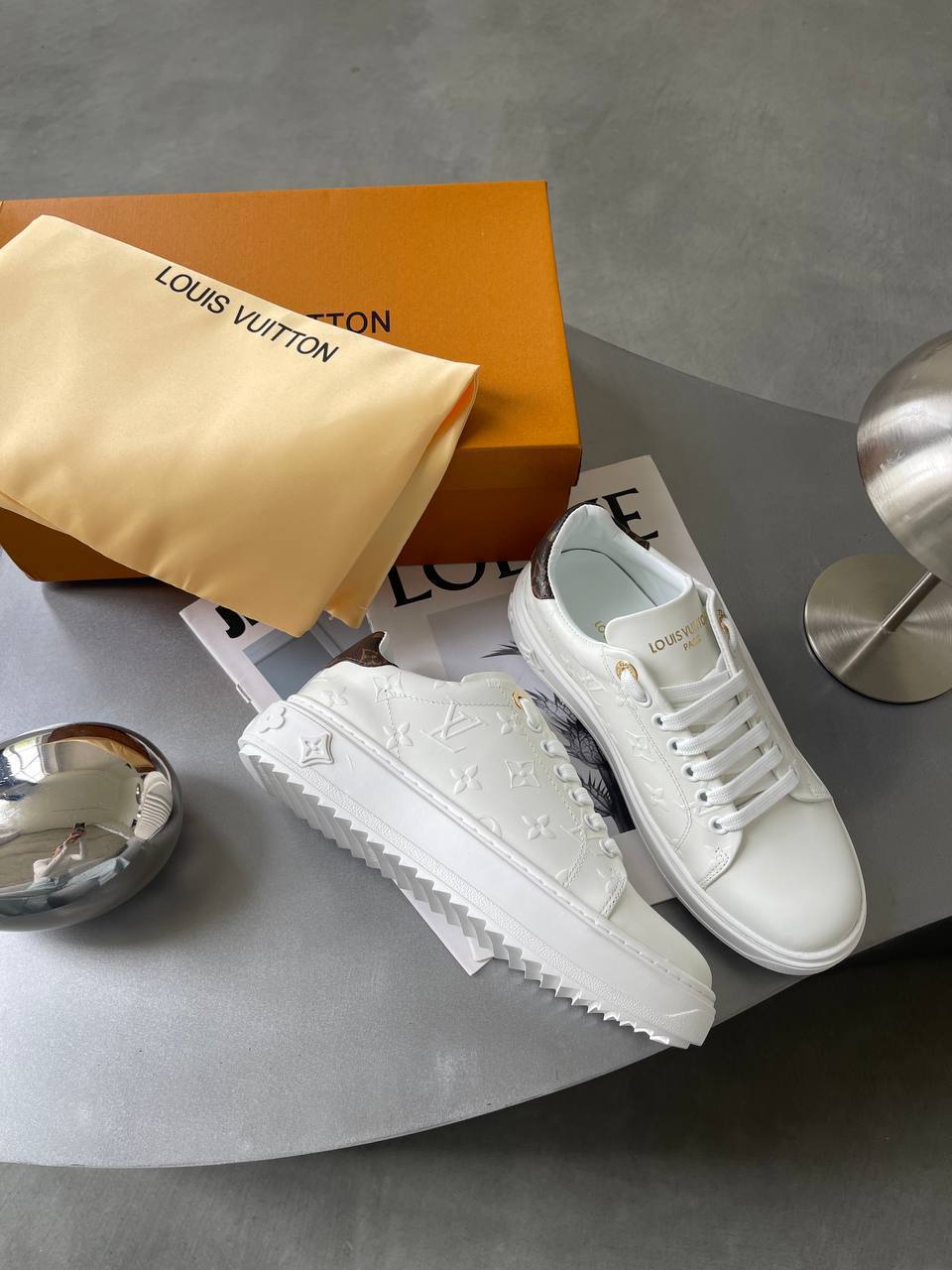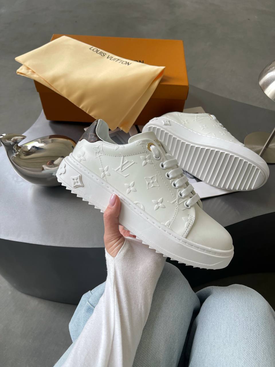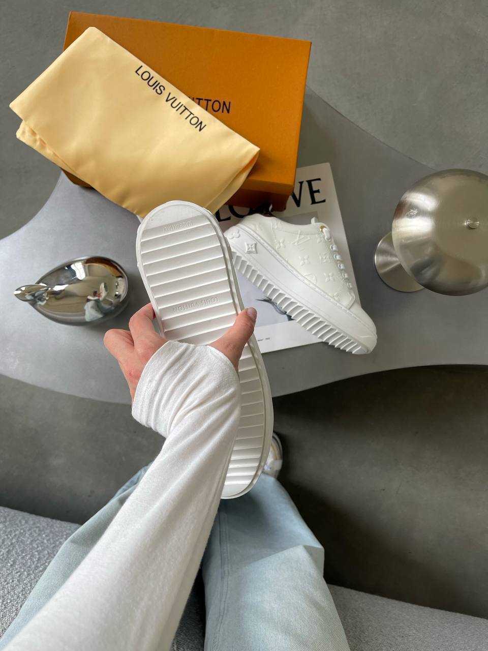 Louis Vuitton Time Out White Premium — кеди з мінімалістичним дизайном, шкіряним верхом, акуратним силуетом.Універсальний білий колір із фірмовими деталями вдало доповнює стильний міський образ.