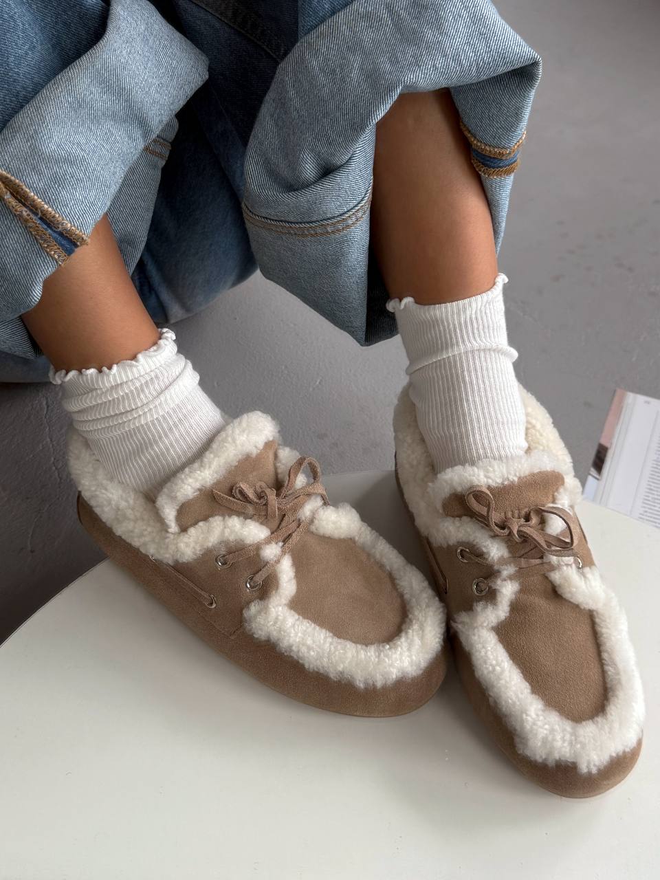 Miu Miu Loafers Winter Beige — замшеві лофери з хутряною підкладкою для зимового комфорту.
