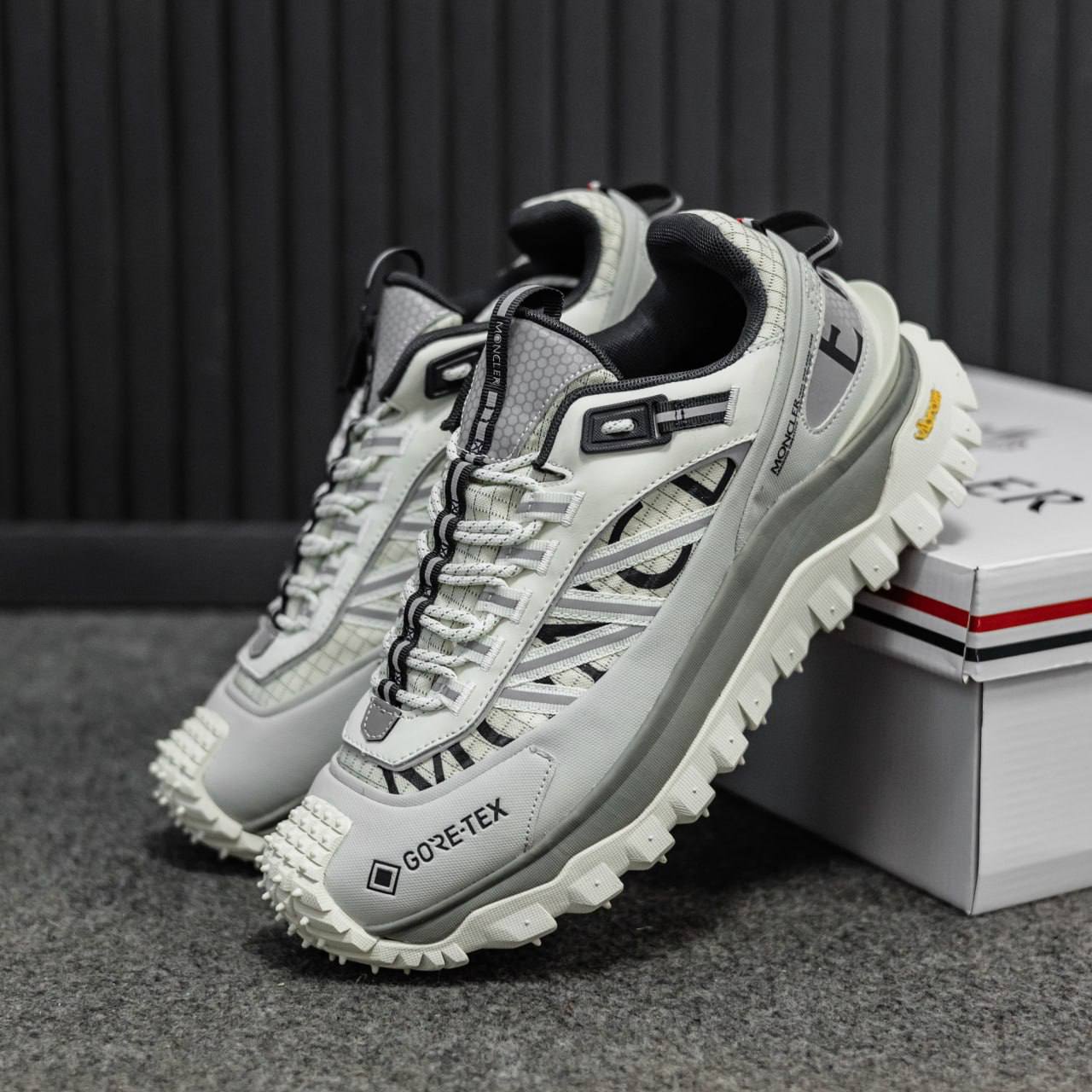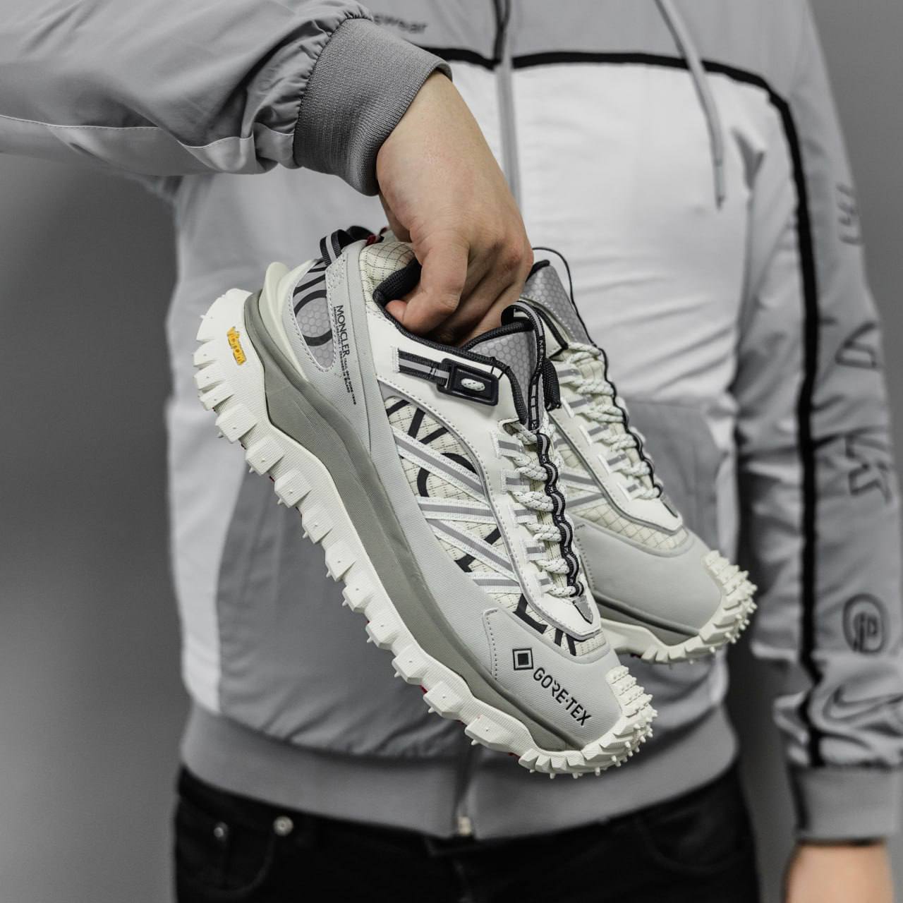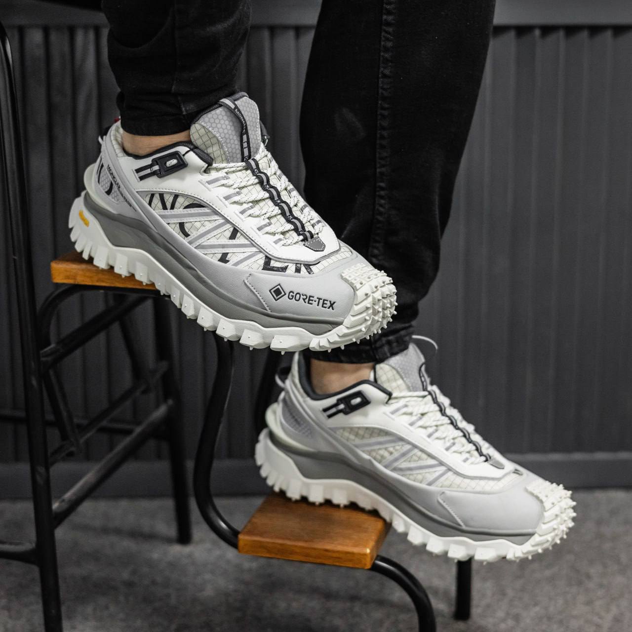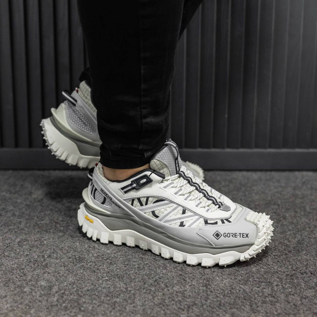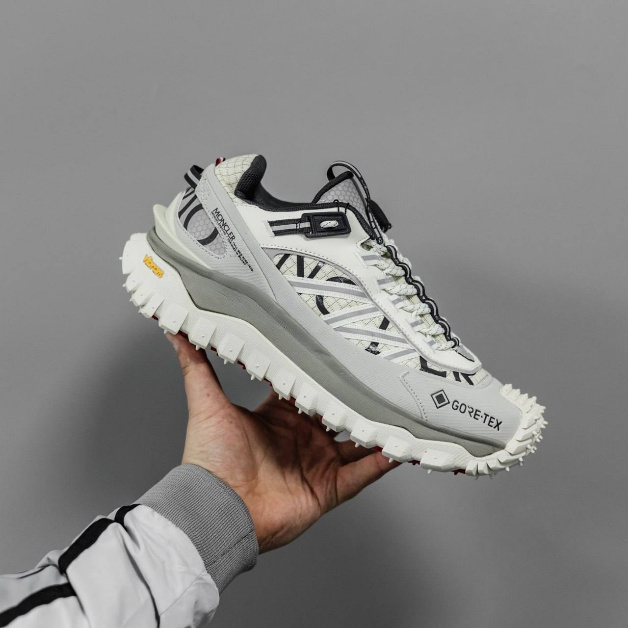 Moncler Trailgrip Gore-Tex — стильні кросівки з верхом із міцної тканини і шкіри, водонепроникною мембраною Gore-Tex, помірною висотою підошви та хорошим зчепленням — підходять для міста та прогулянок у будь-яку погоду.