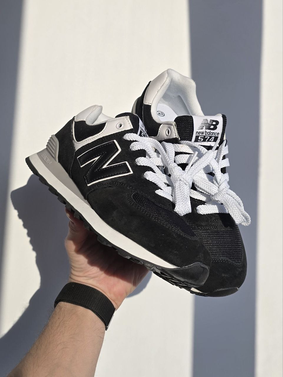 New Balance 574 Black / White — класичні чорно-білі кросівки з комфортною посадкою та універсальним стилем.