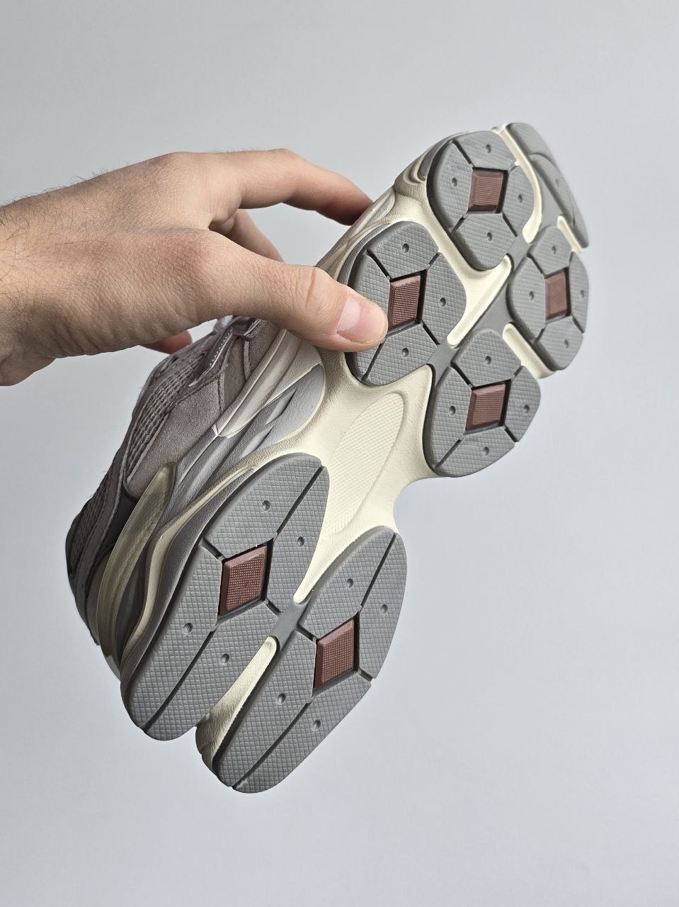 New Balance 9060 Beige— стильні кросівки з м’якою амортизацією та комфортною посадкою. Контрастний дизайн робить модель помітною та зручною для щоденного носіння.