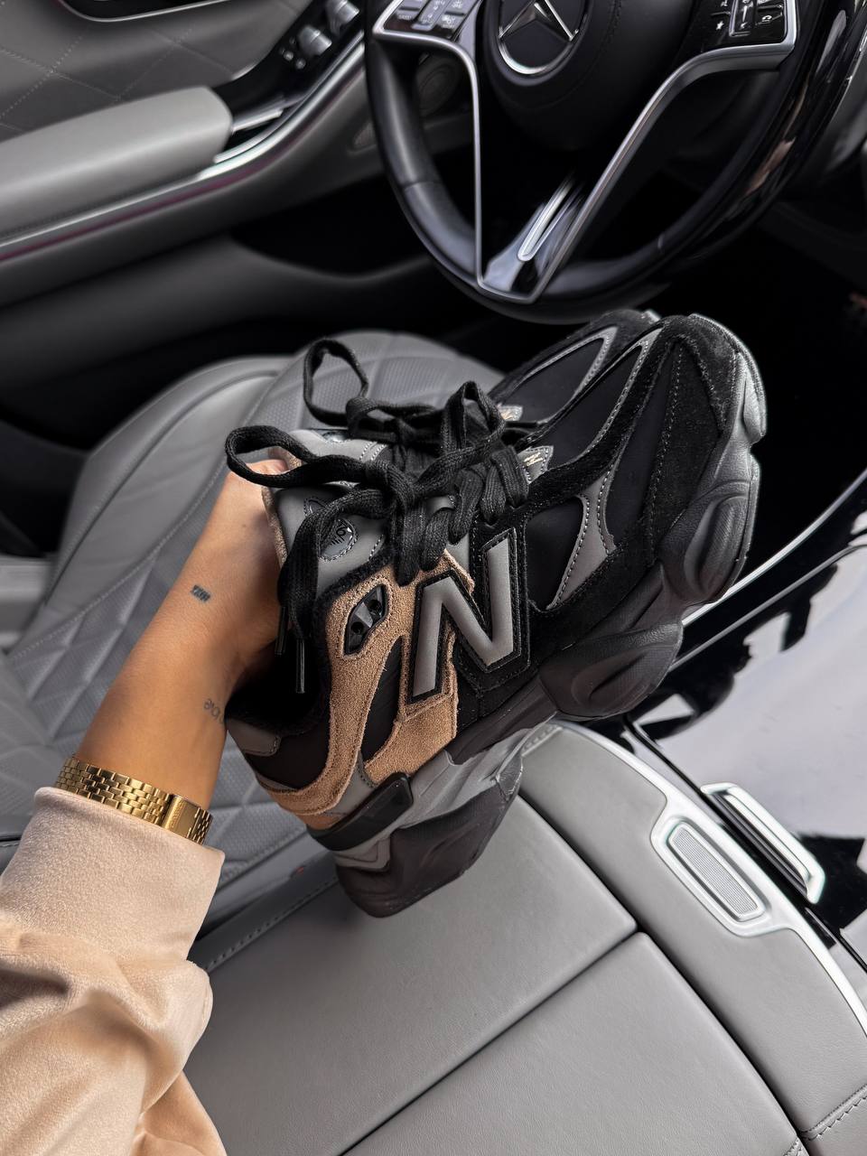 New Balance 9060 Black Brown — стильні кросівки з поєднанням чорних і коричневих відтінків, що поєднують ретро-дизайн і сучасний комфорт.