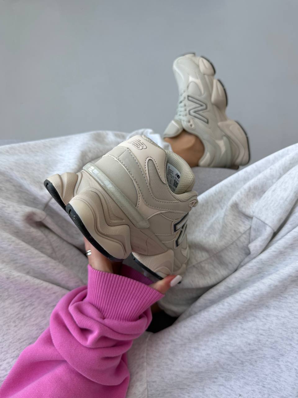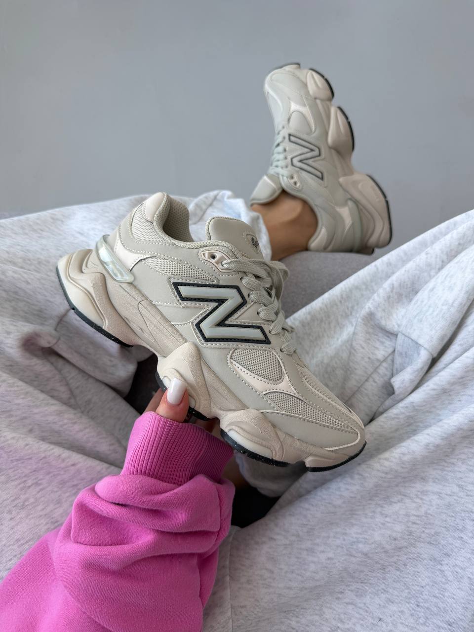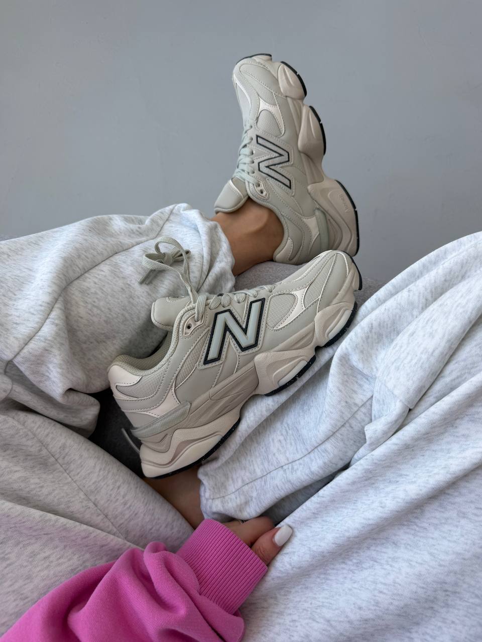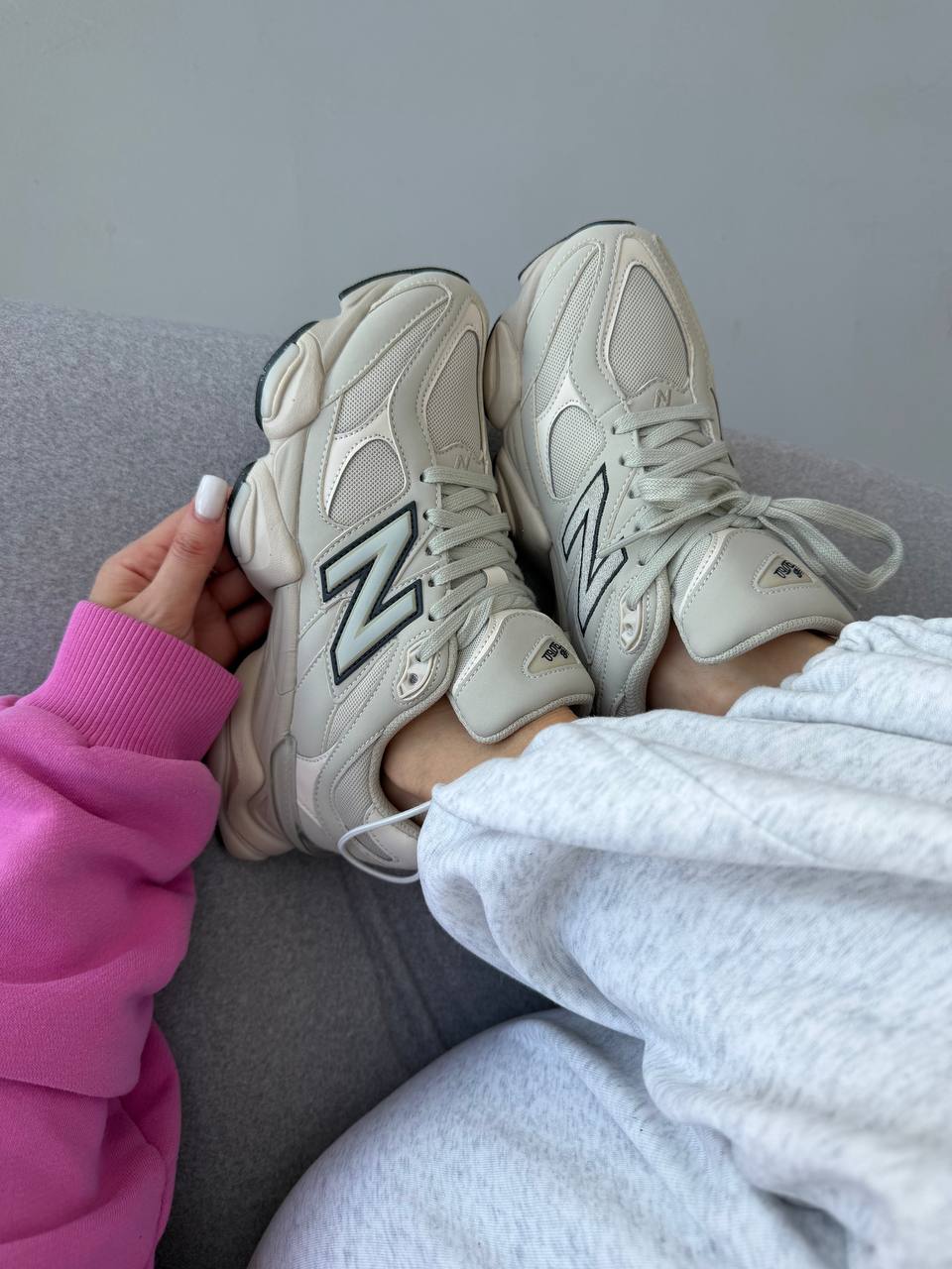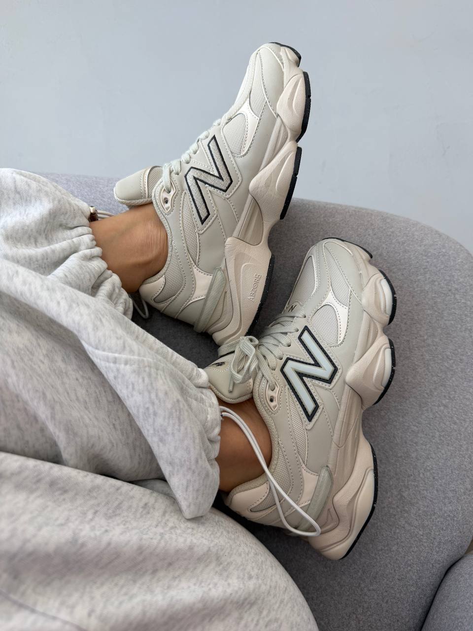 New Balance 9060 Light Cream Leather — стильні кремові кросівки з шкіряним верхом для комфортного щоденного носіння.
