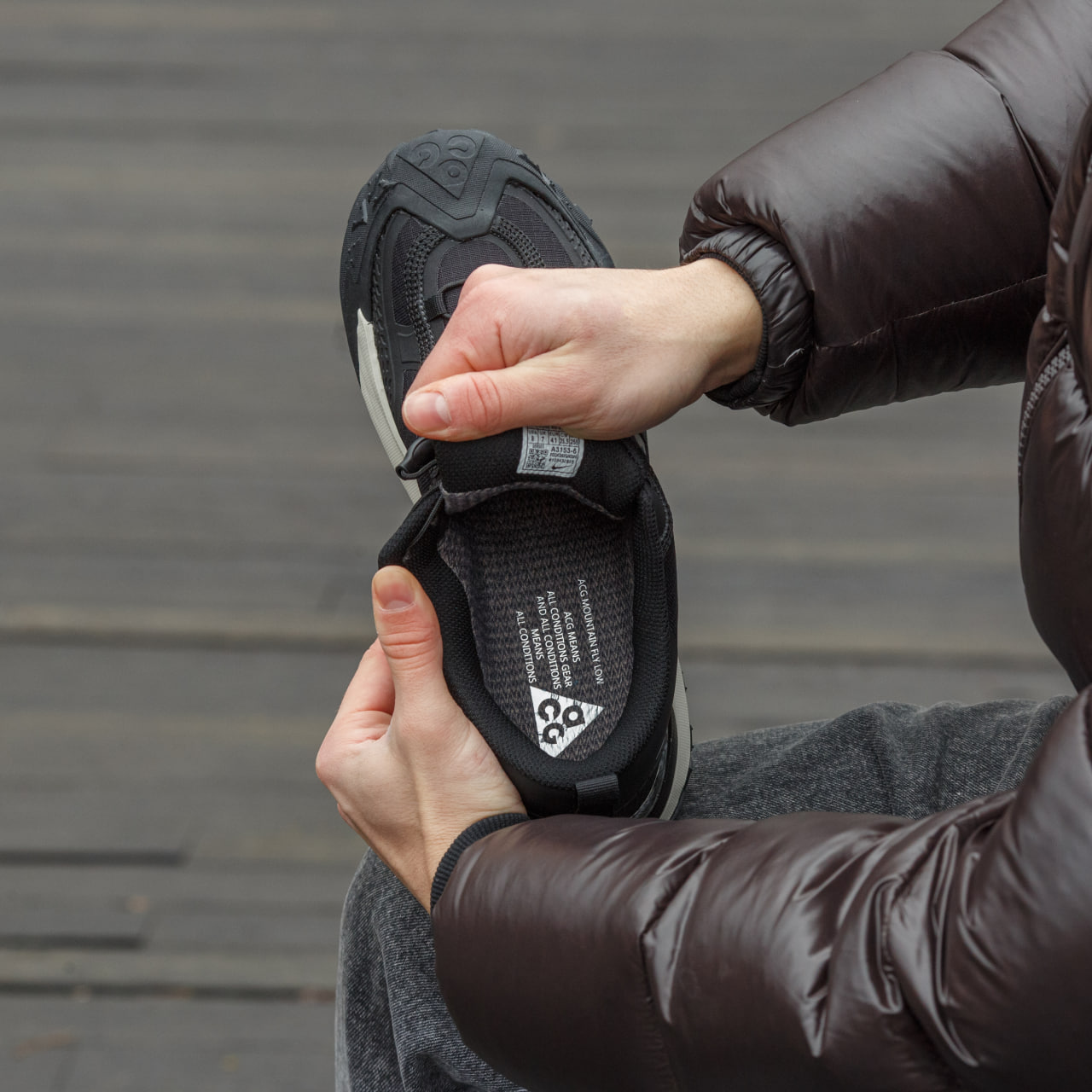 Nike Acg Moutain fly Gore Tex Black Beige — це водонепроникні кросівки з надійним протектором та комфортною амортизацією, створені для міського використання й активного відпочинку за будь-яких погодних умов.