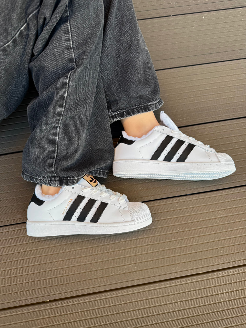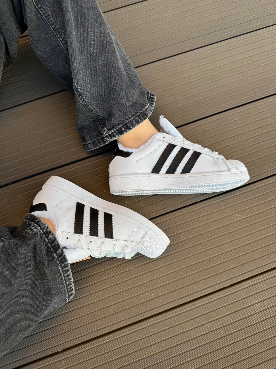 Adidas Superstar  Класика, що ніколи не виходить із моди. Білі шкіряні кросівки з м’якою амортизацією Air, міцною підошвою та культовим дизайном для щоденного стилю й комфорту.