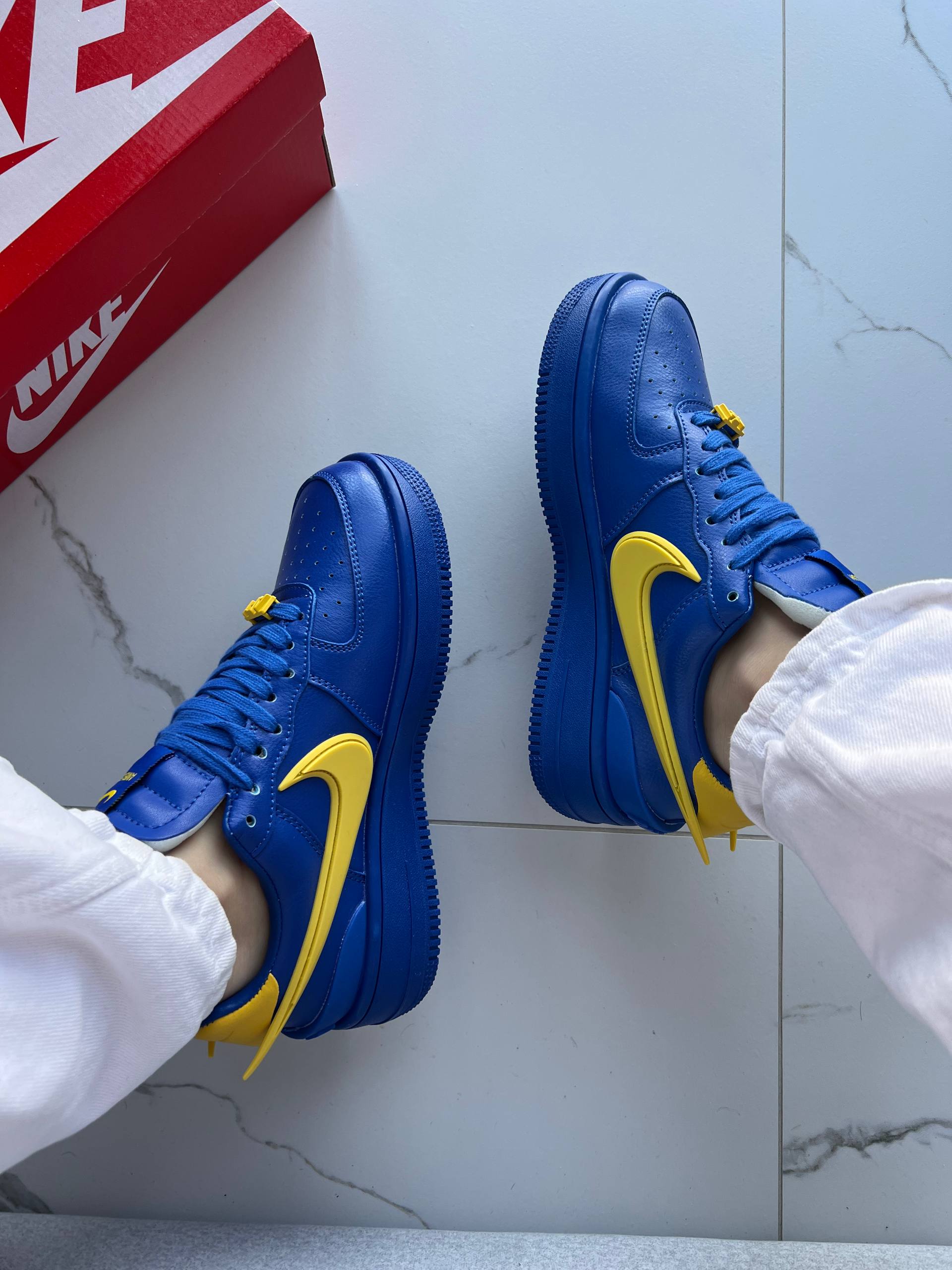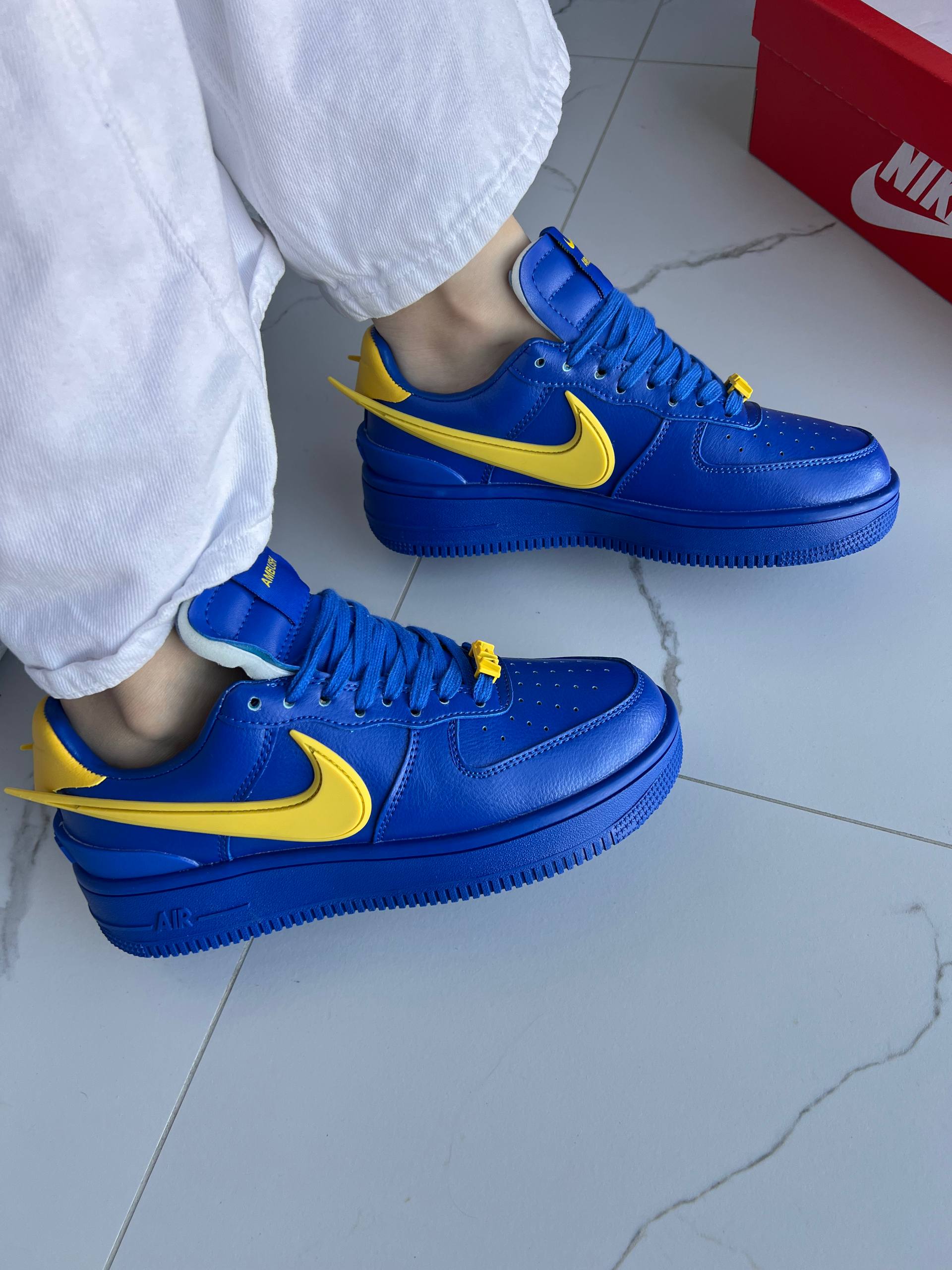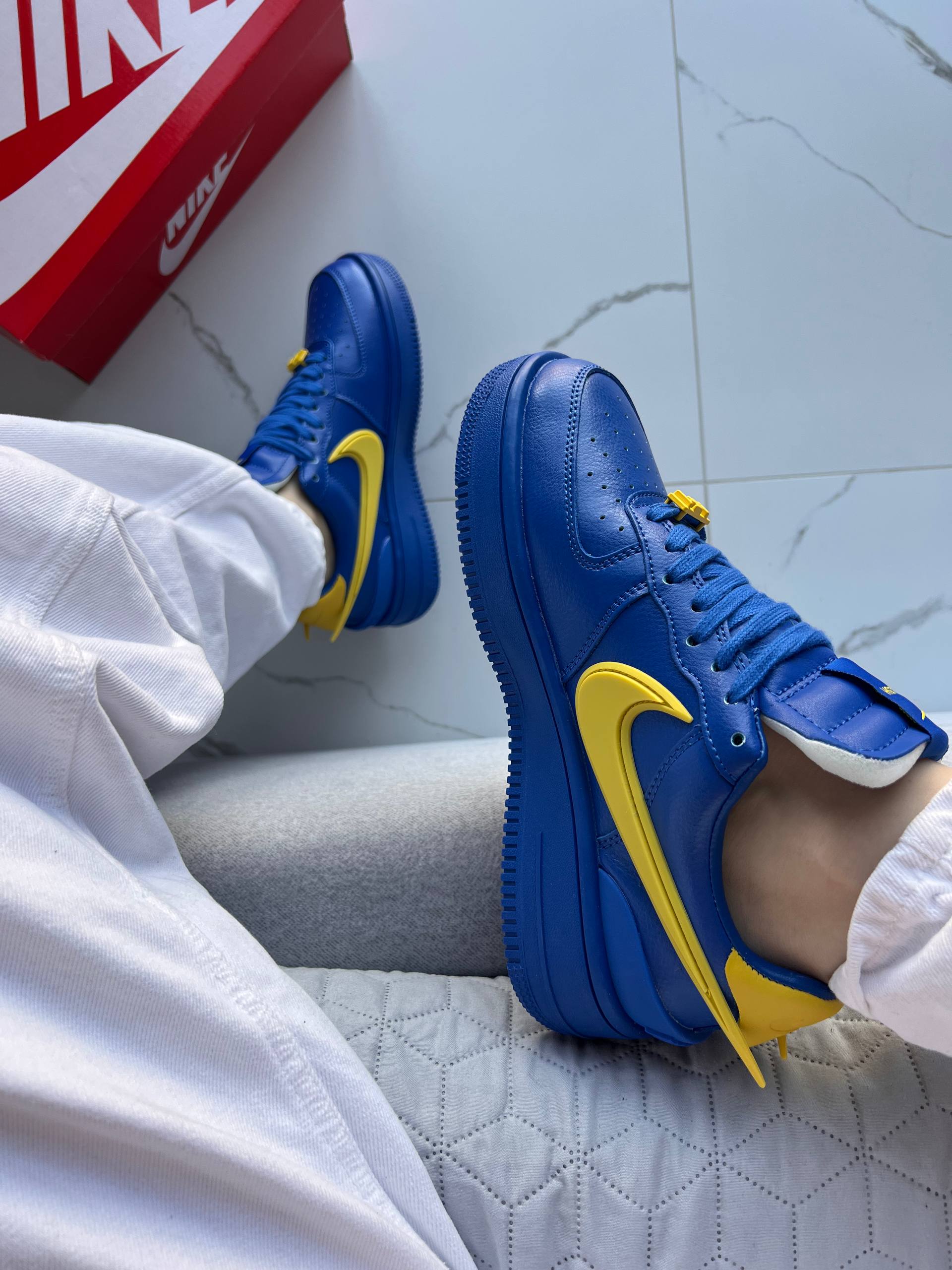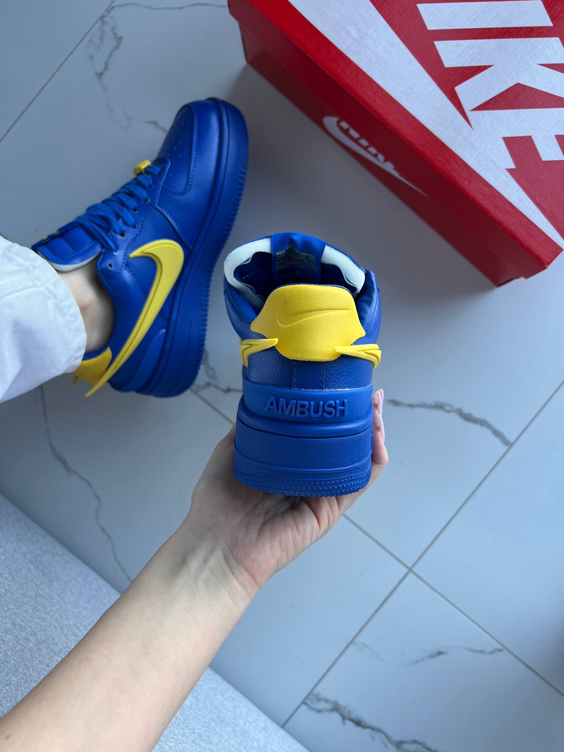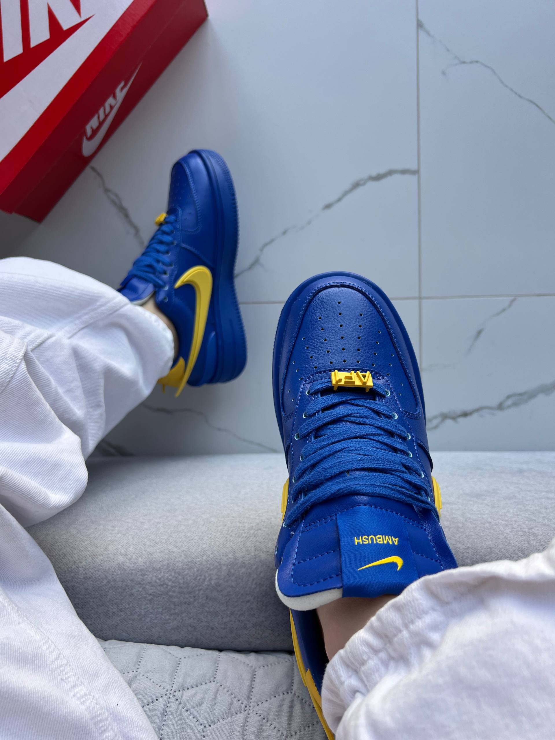Nike Air Force 1 Low - яскрава колаборація з брендом Ambush, що поєднує культовий силует з експериментальними деталями. Модель вирізняється насиченим синім кольором, подовженим логотипом Swoosh та оригінальними акцентами, які додають сміливого вуличного стилю. Залишається впізнаваний комфорт завдяки шкіряному верху та амортизації Air у підошві.