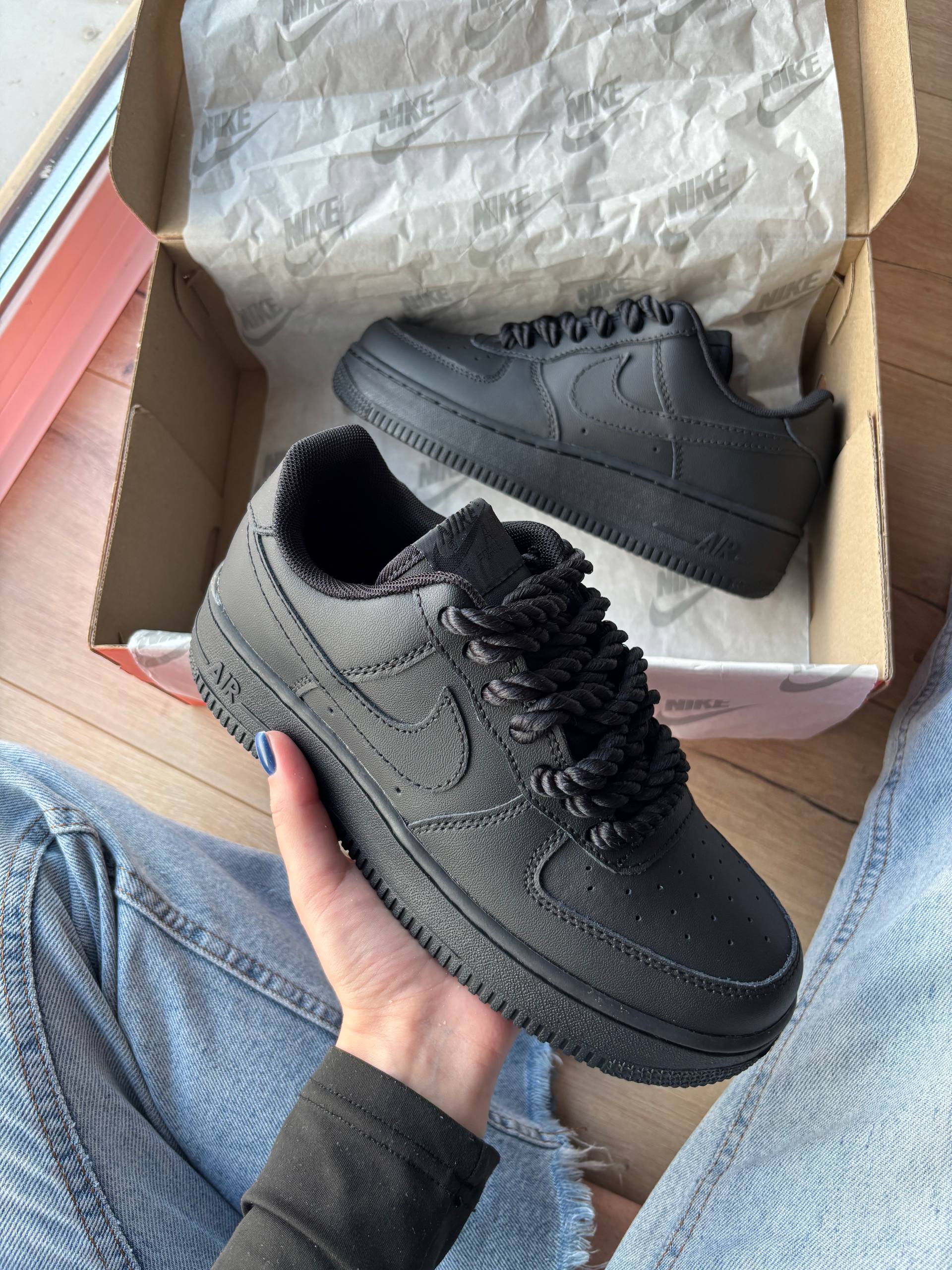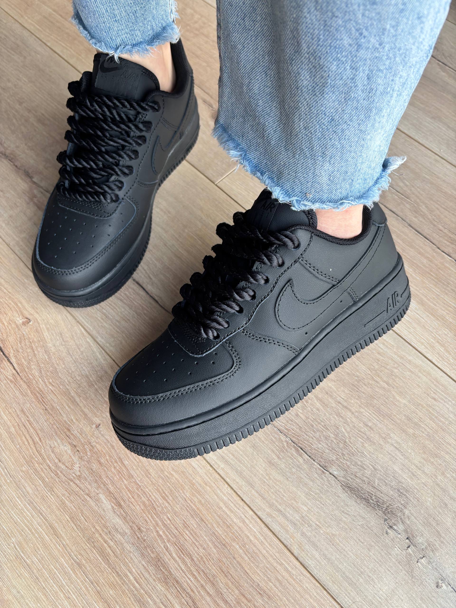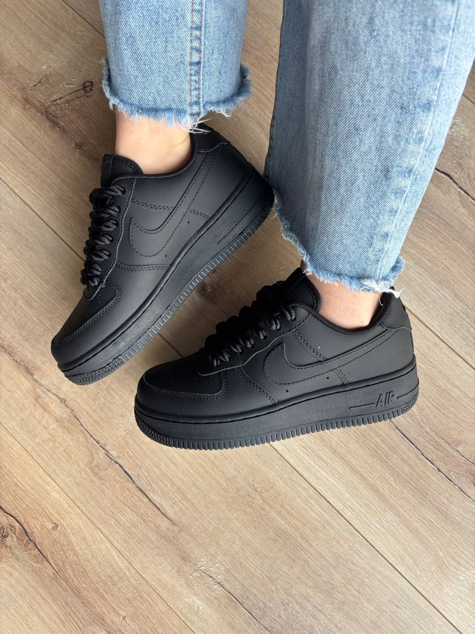 Nike Air Force 1 Low Black — це культові кросівки з чорної шкіри з мінімалістичним дизайном та комфортною амортизацією для щоденного носіння.