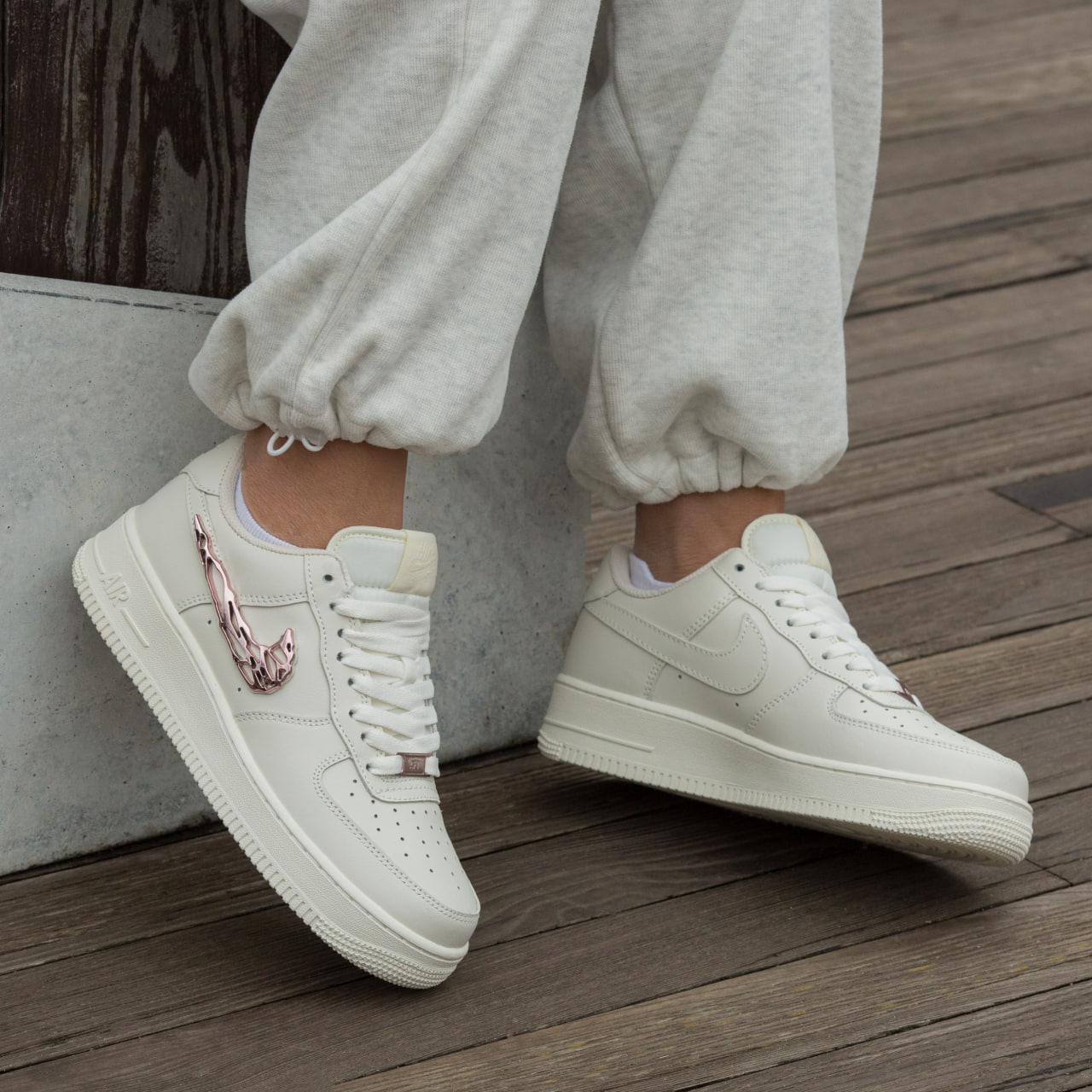 Nike Air Force 1 Low Molten Metal Pink White — це класичні кросівки з біло-рожевим верхом, доповнені металевими акцентами для яскравого стилю.