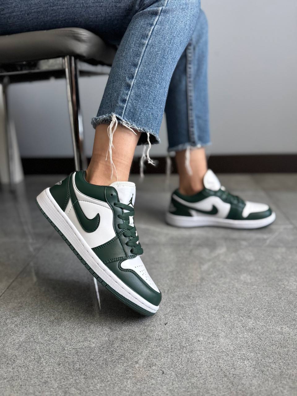 Nike Air Jordan 1 Low Green — класичні низькі кросівки в зелених відтінках із легендарним дизайном для стилю та комфорту.