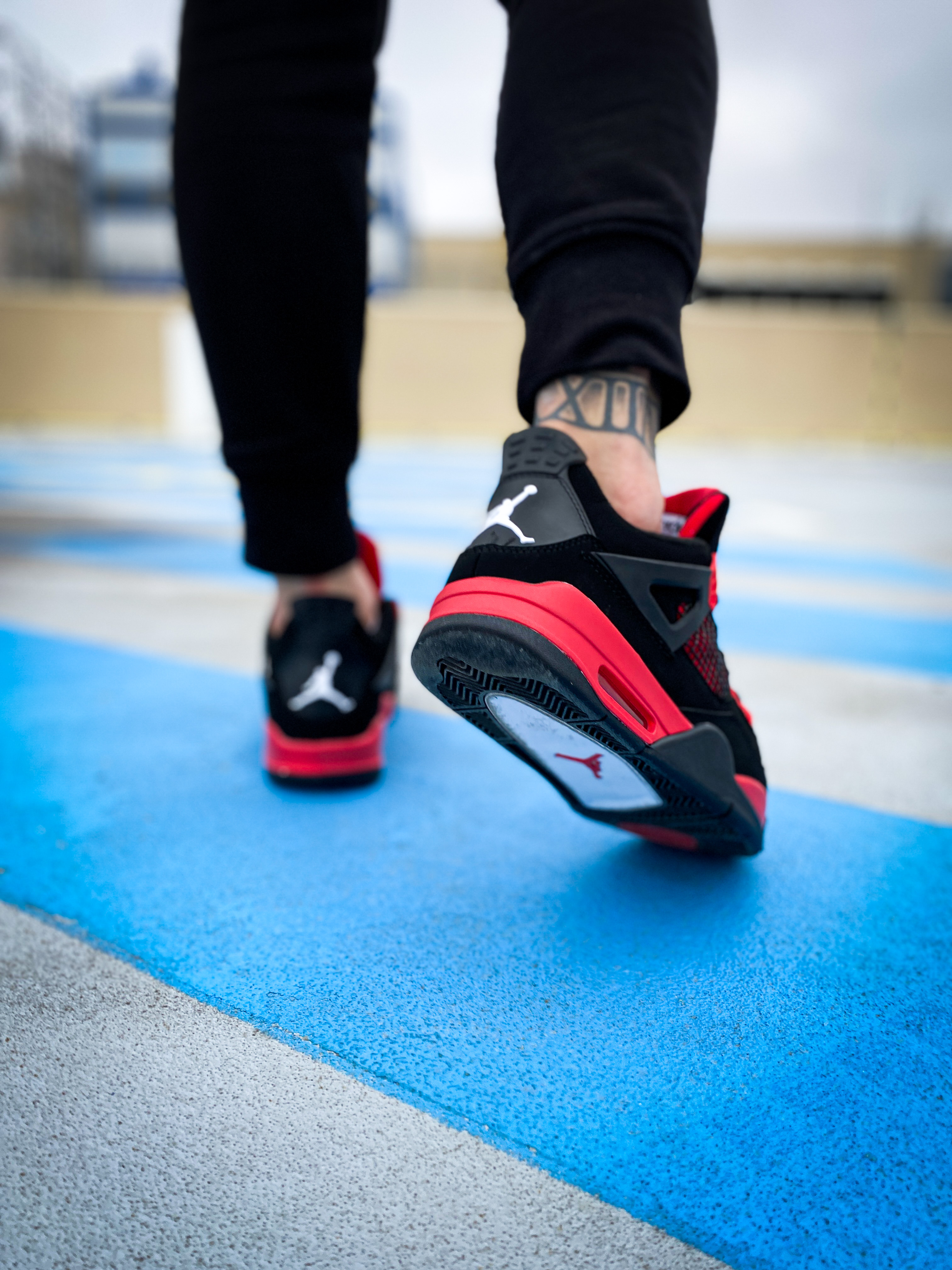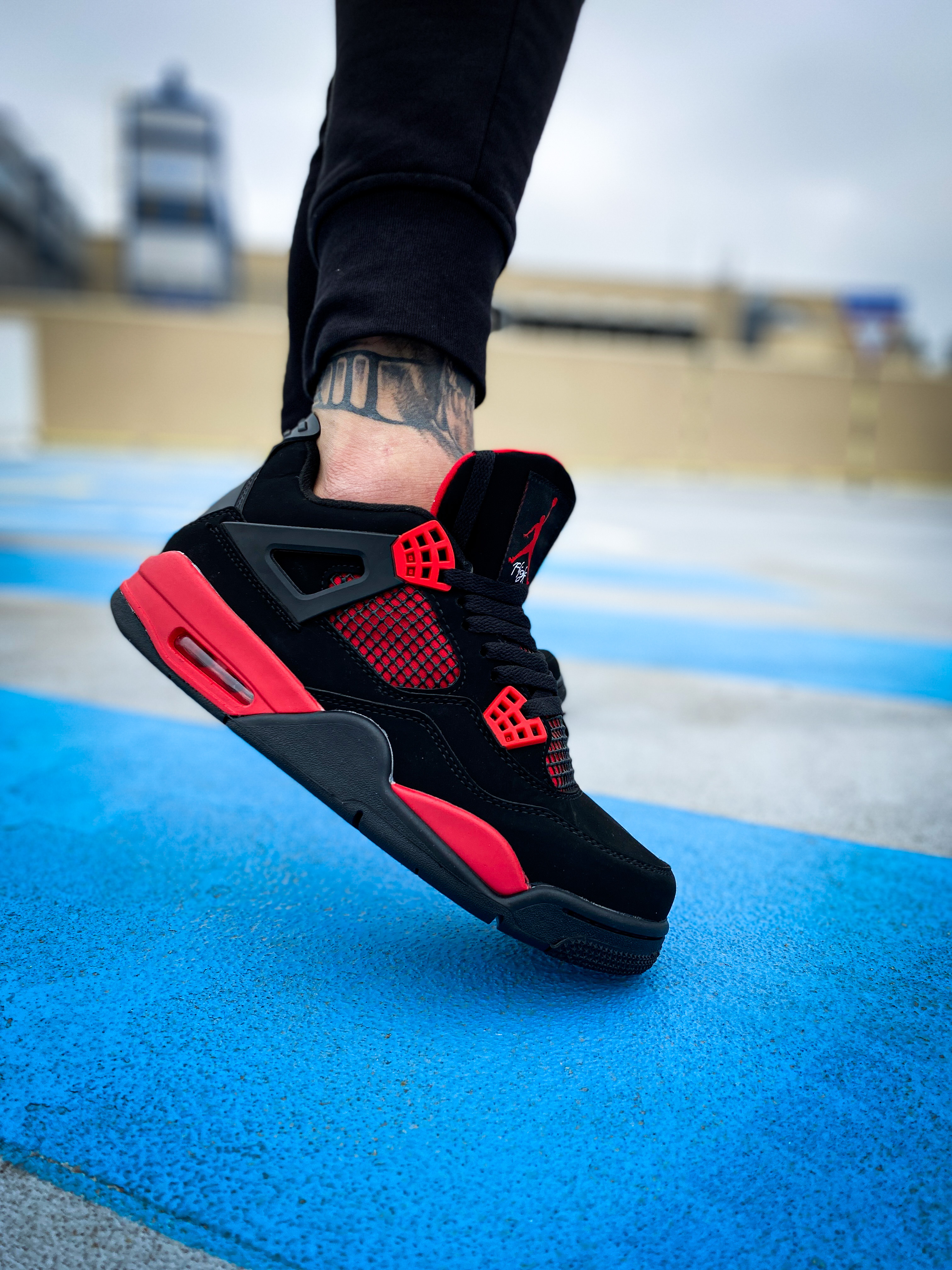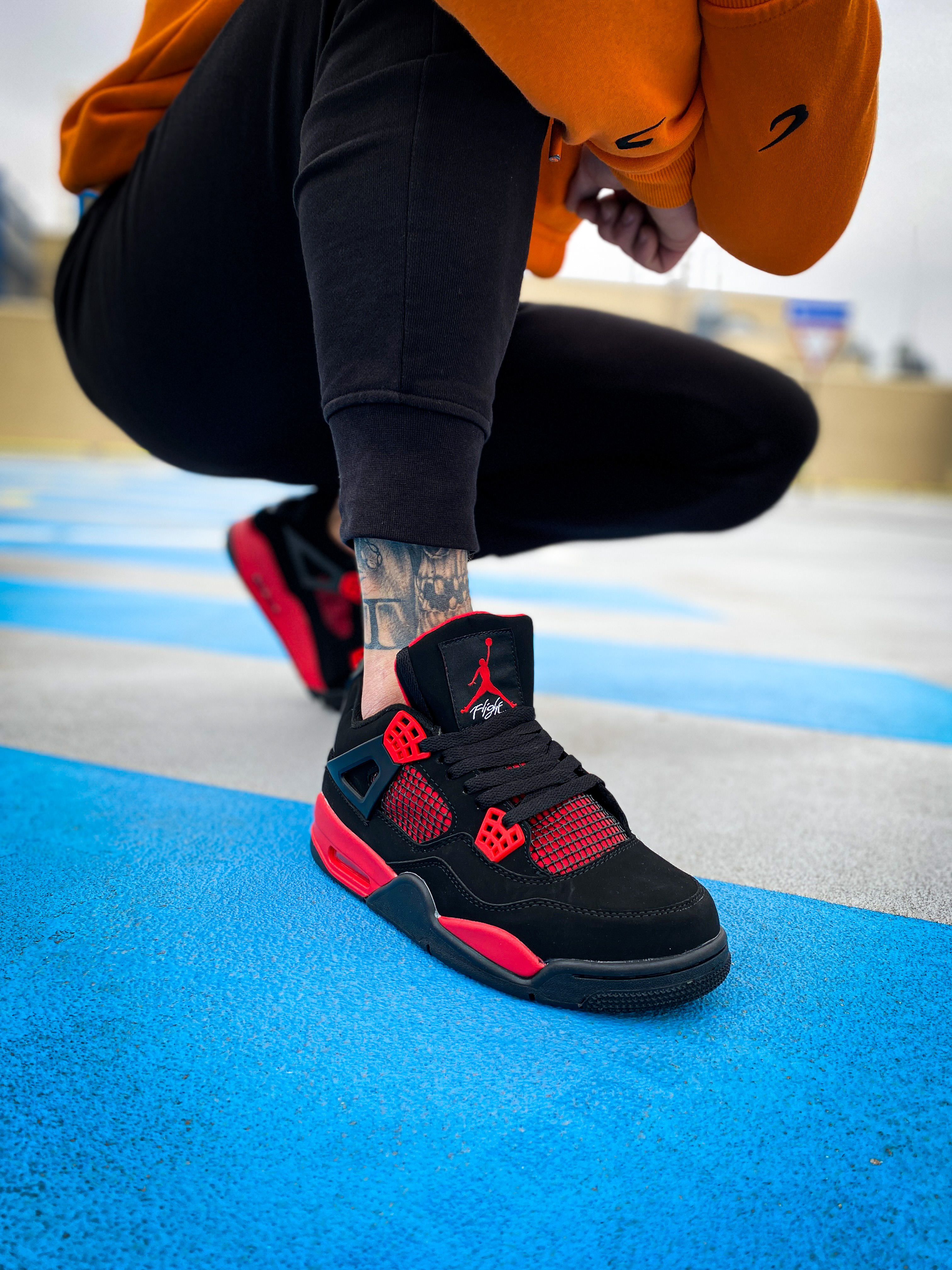 Nike Air Jordan 4 Crimson "Red Thunder" — яскраво-червоні кросівки з класичним дизайном AJ4, поєднуючи легендарний стиль і комфорт.