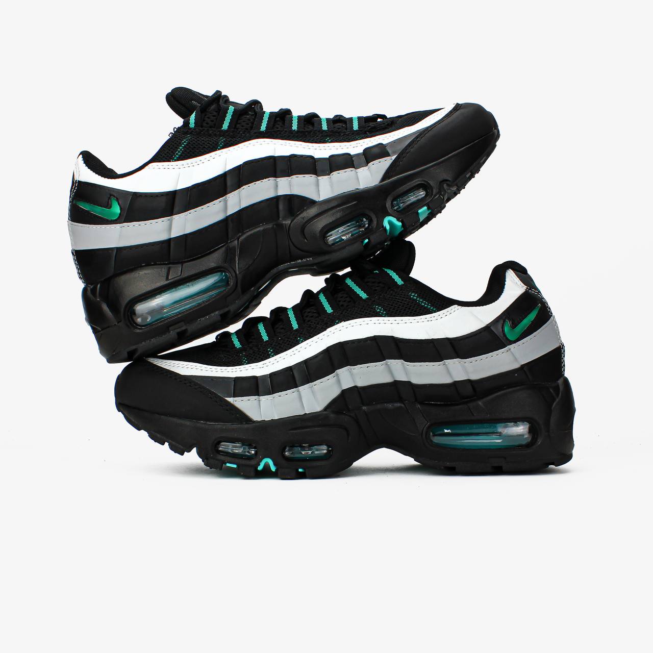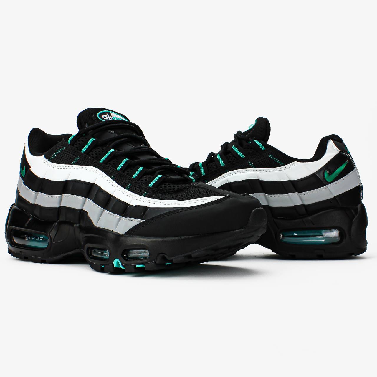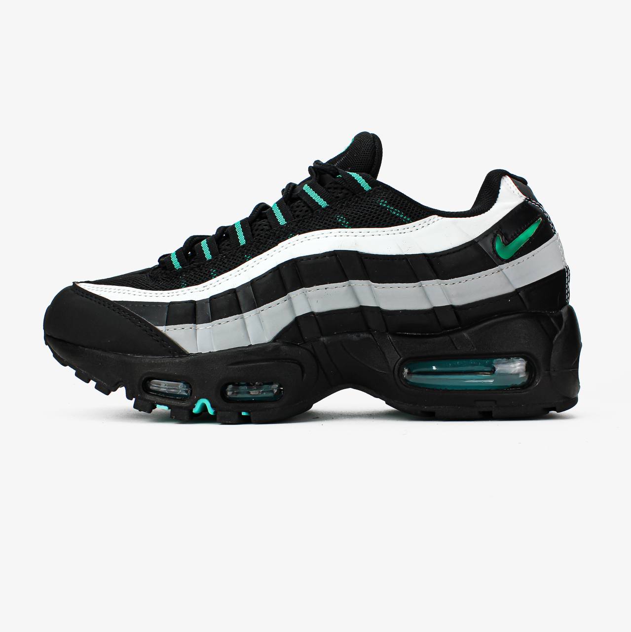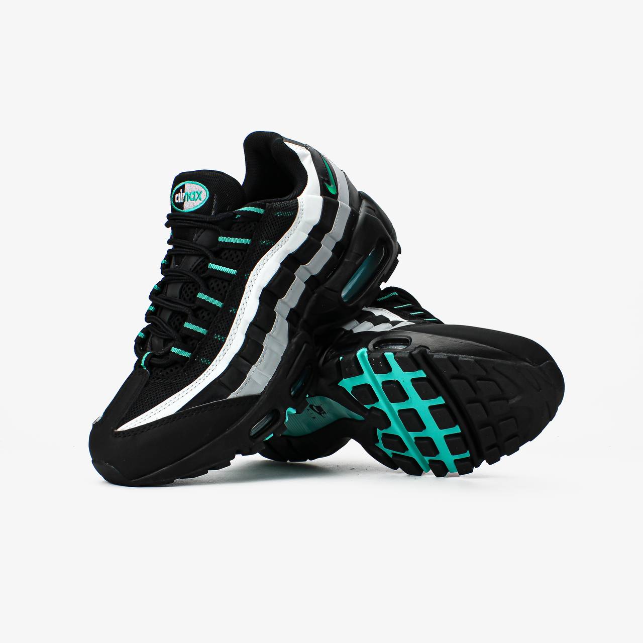 Nike Air Max 95 Black Aurora Green – це стильні кросівки з чорним верхом та яскравими акцентами Aurora Green для сучасного спортивного образу.