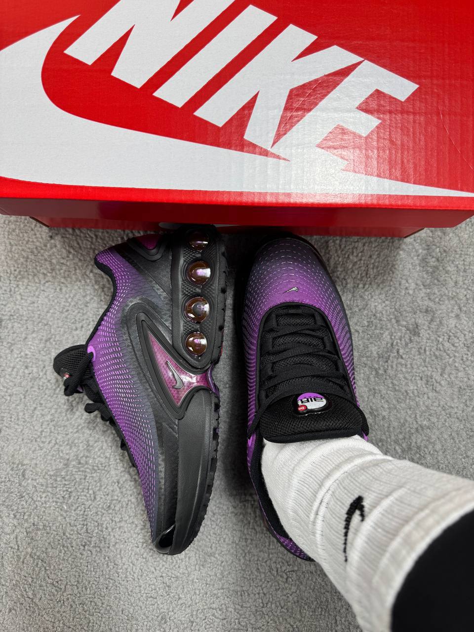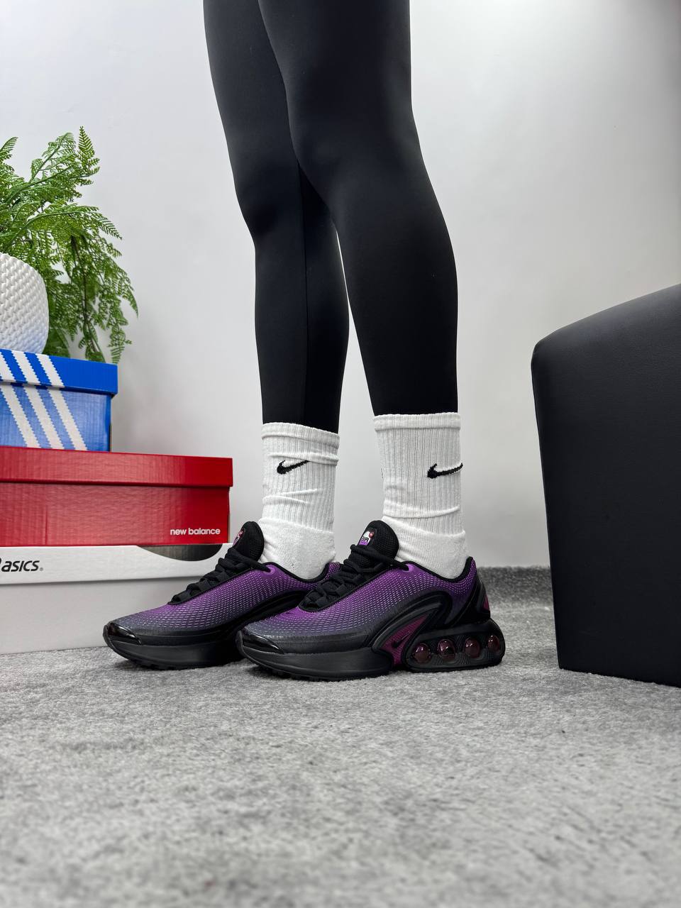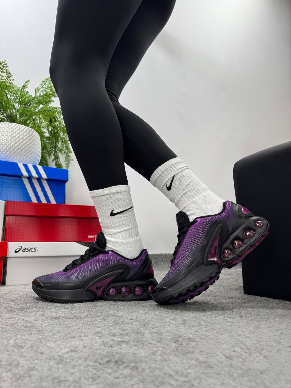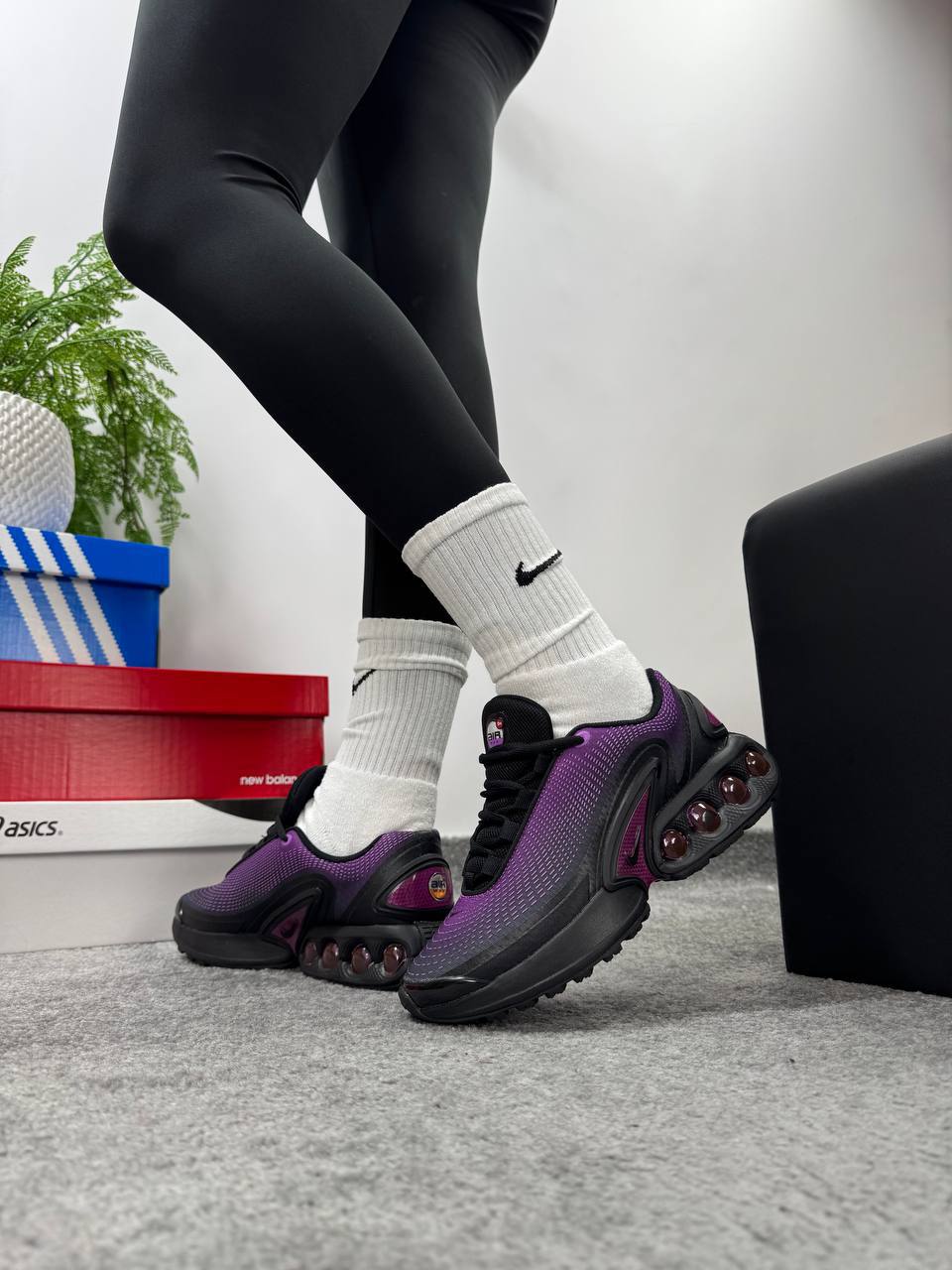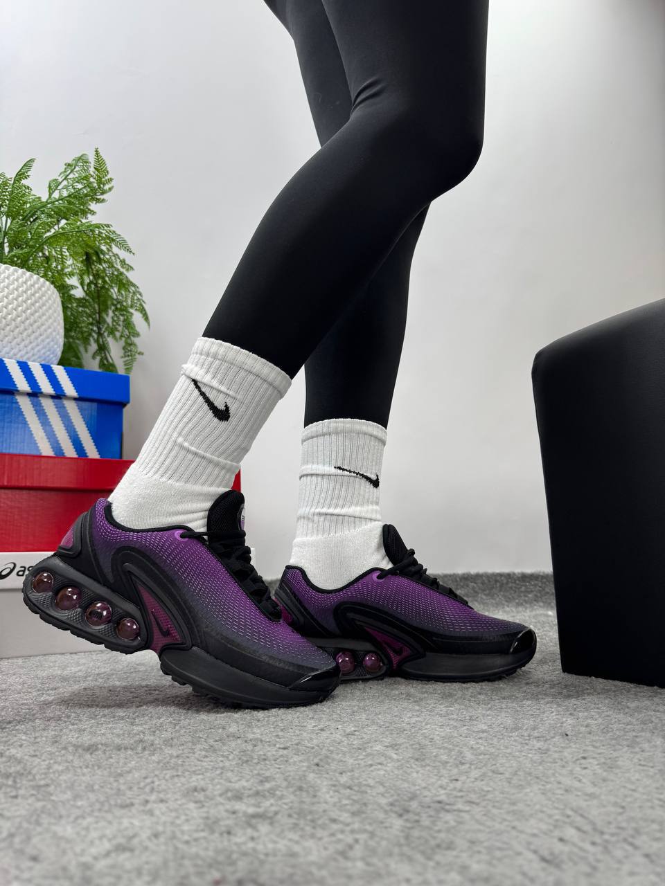 Nike Air Max Dn Black Violet — стильні чорні кросівки з фіолетовими акцентами та амортизацією Dynamic Air для комфорту щодня.