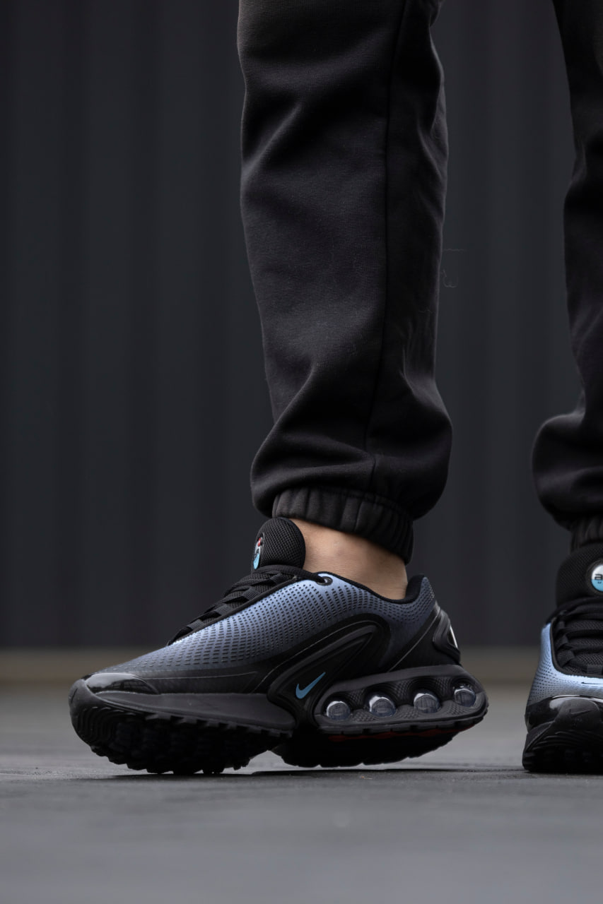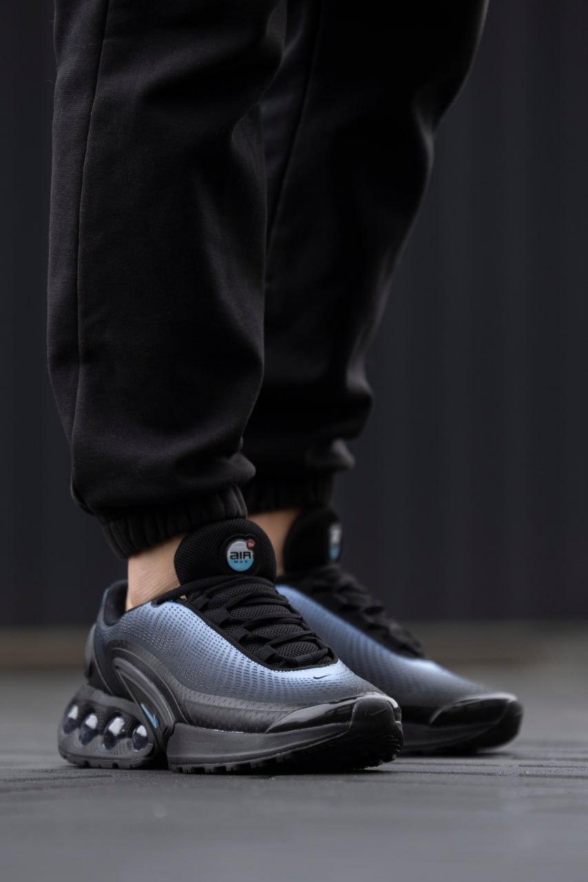 Nike Air Max DN Blue Black — стильні кросівки у синьо-чорній гамі з амортизуючою підошвою Air для комфорту та сучасного міського вигляду.