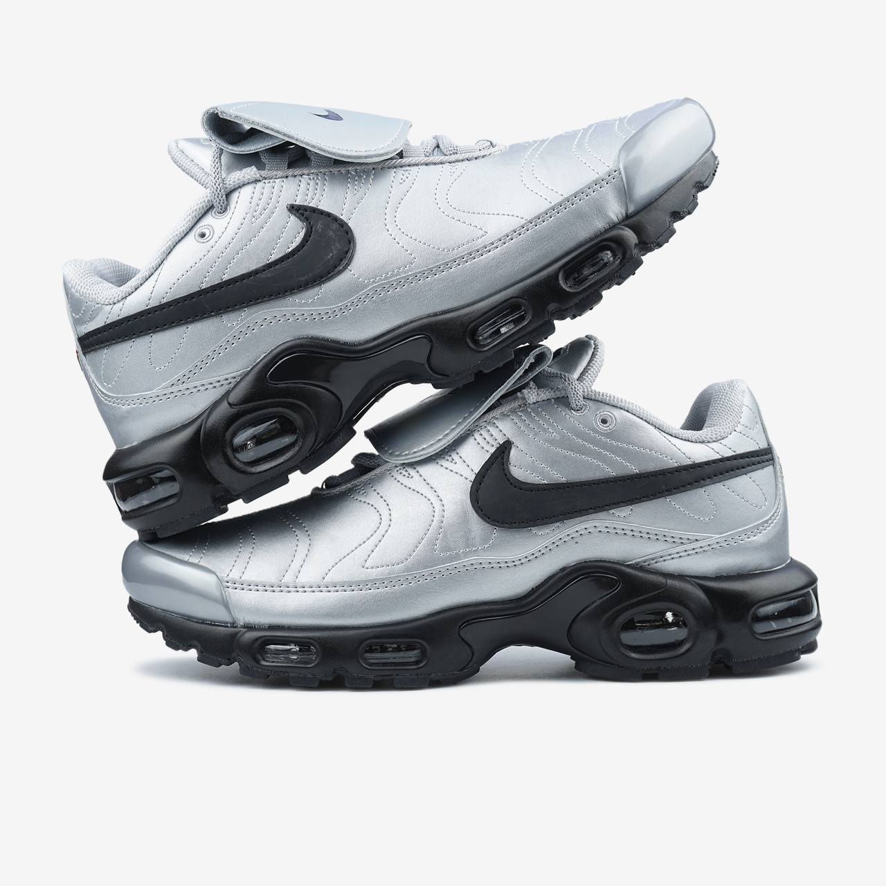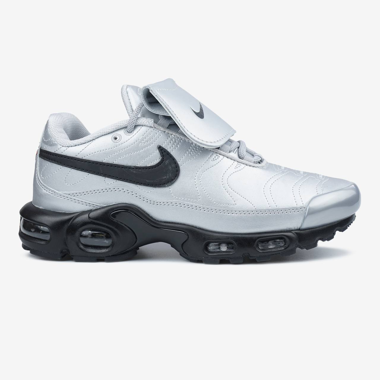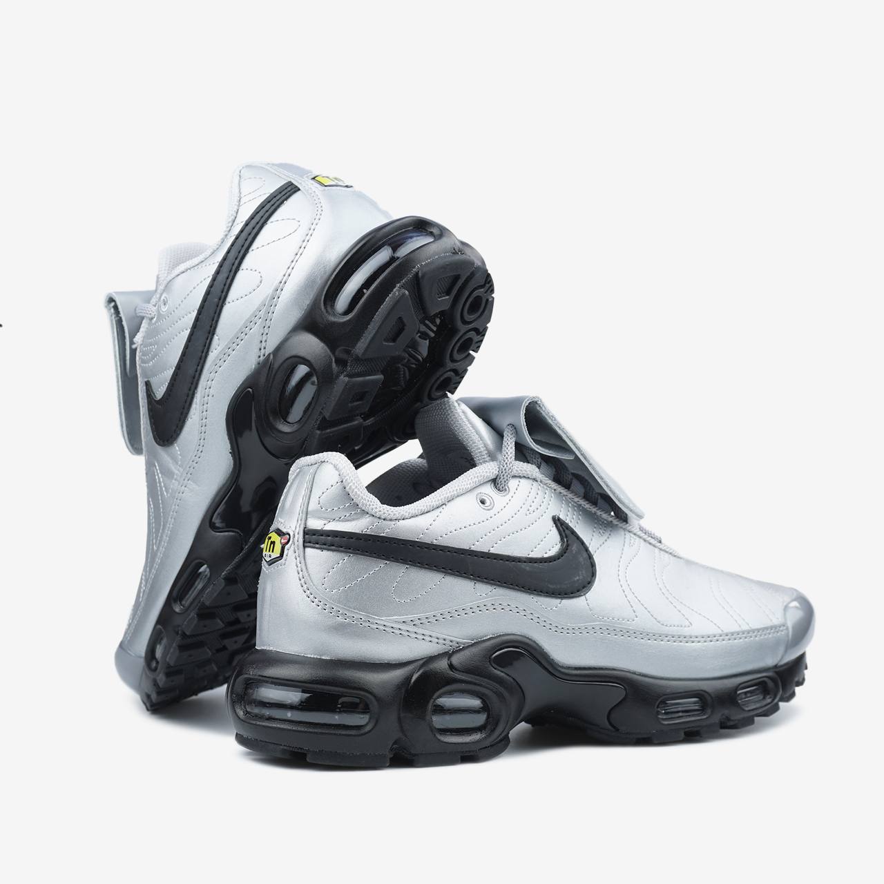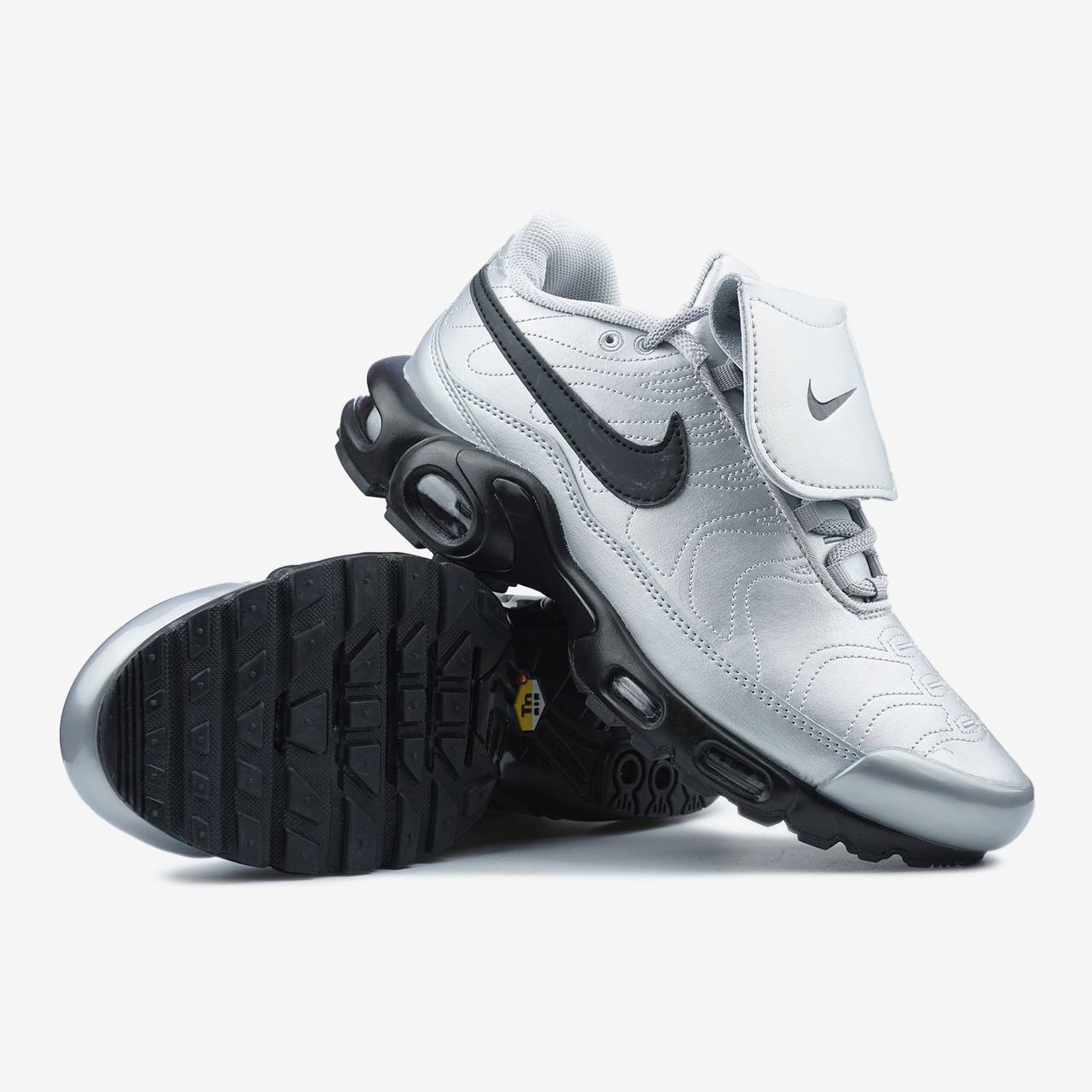 Nike Air Max Plus Tiempo Wolf Grey Black - це кросівки, що поєднують динамічний дизайн із футбольними елементами.
