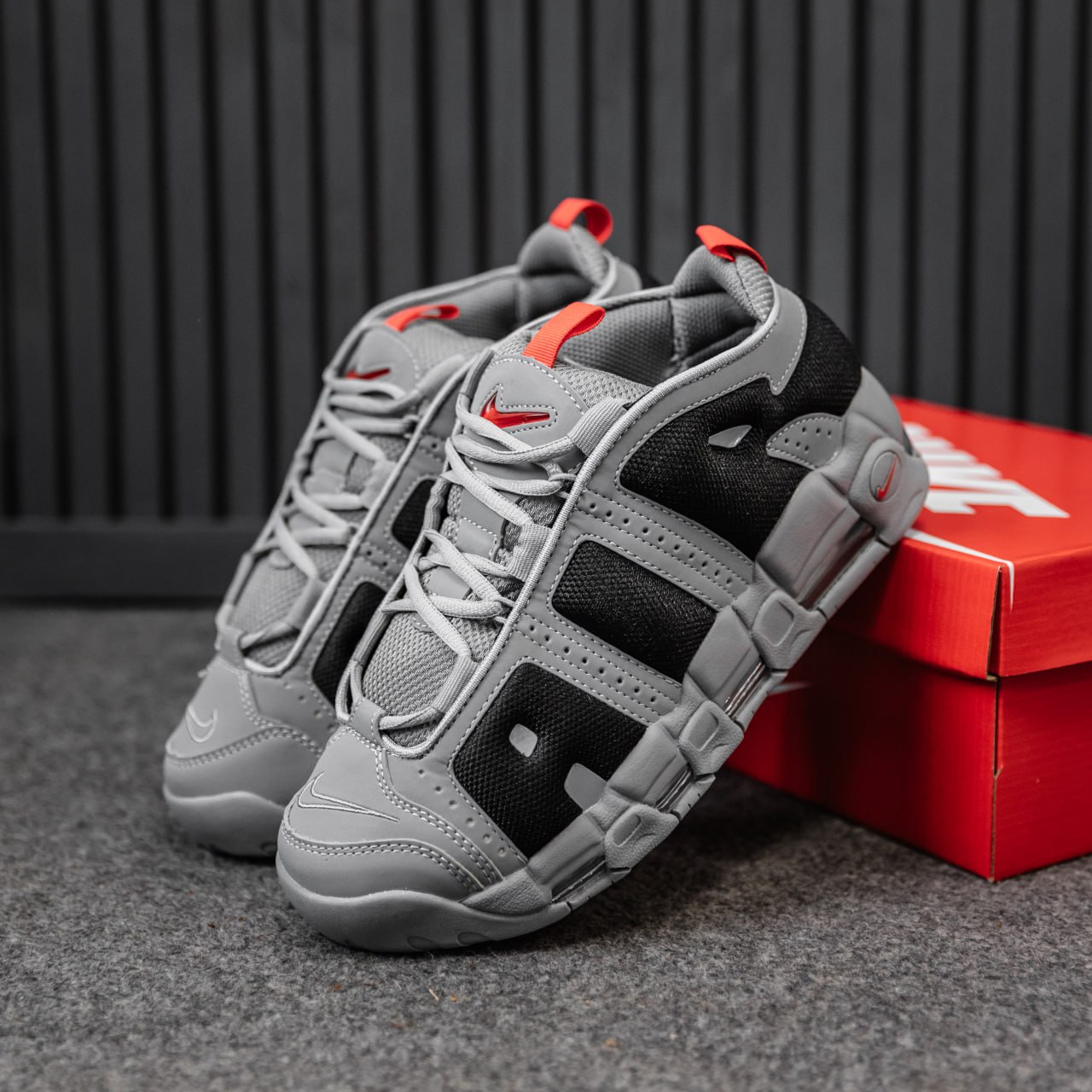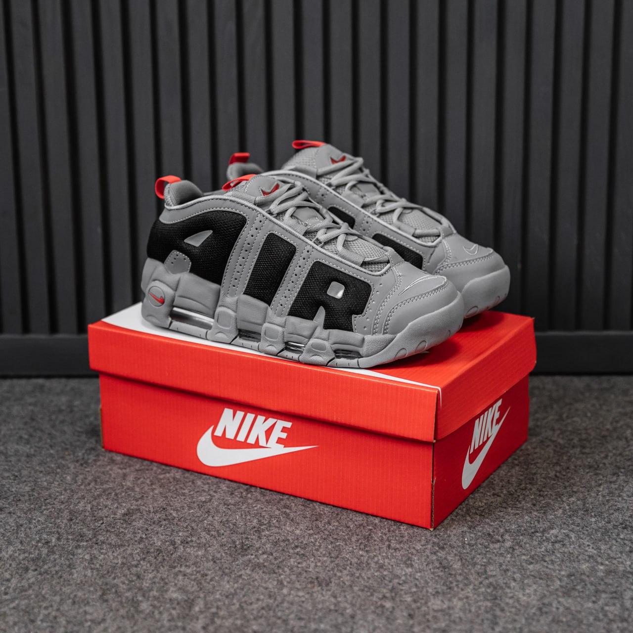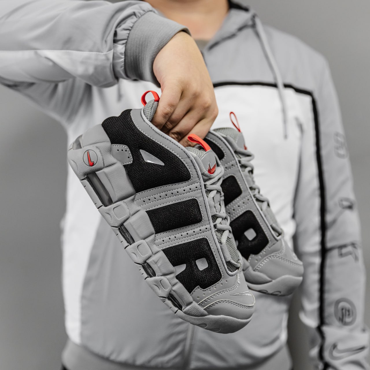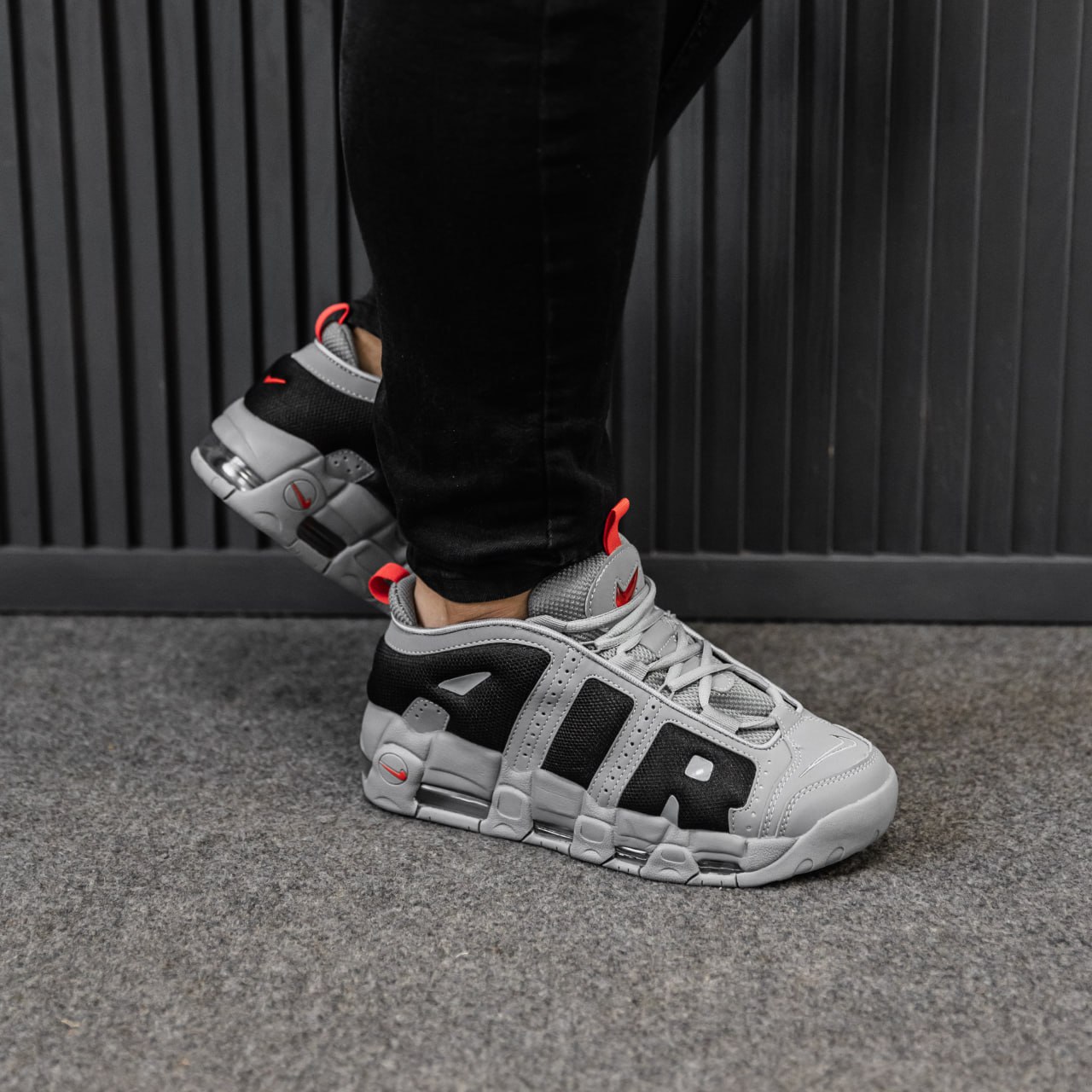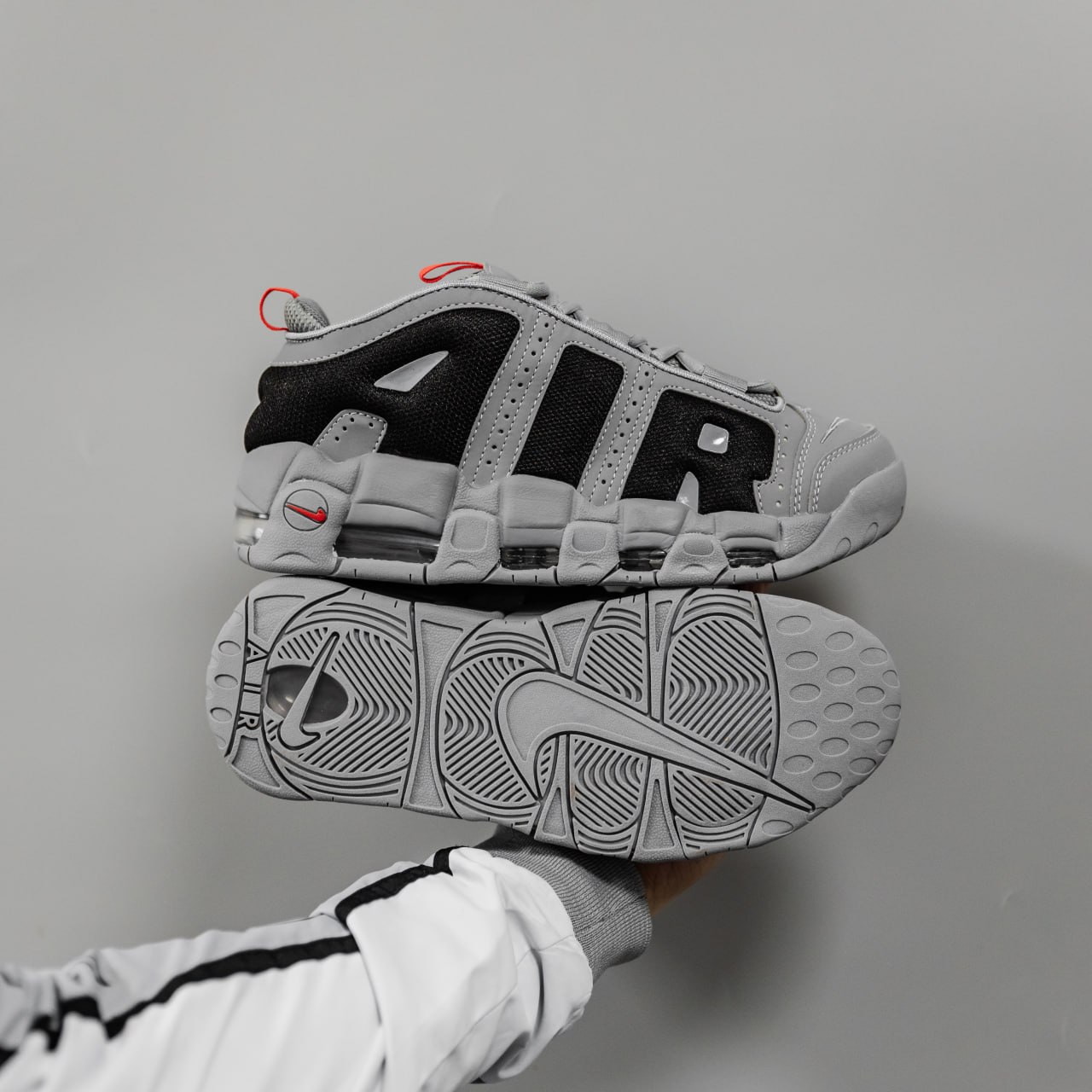 Nike Air More Uptempo Gray Low — масивні кросівки з культовим написом “AIR”, виконані у стриманих сірих відтінках для поєднання стилю та комфорту на щодень.